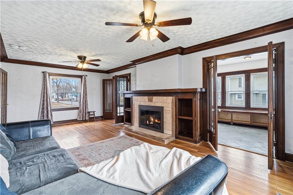 From Highway 71, East on E Linwood Blvd to Benton Blvd, South on Benton Blvd to home on Northwest corner of 34th and Benton. Use GPS for best results.