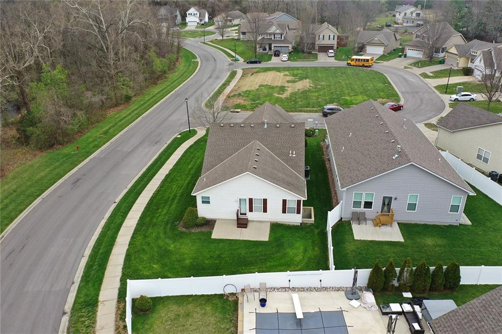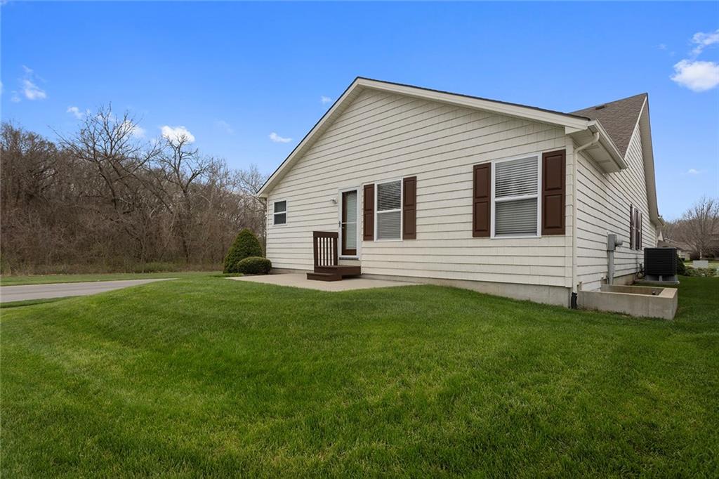 BEAUTIFUL! Such a lovely home! Cute corner lot on a cul-de-sac speaks of charm and meticulous care. Front steps lead up to a covered entry. The entry has a convenient coat closet. Straight ahead, the Great Room features a ceiling fan, stylish fireplace with circulating fan, lots of windows offering natural light, and modern light fixtures. To the left of the Great Room are two bedrooms: one with ceiling fan (the other is wired for one) and nice closets in both. Also, a full bathroom with tub/shower combo, and a linen closet. Stepping further in, past the dining space, is an awesome kitchen! Contrasting black appliances with white cabinetry, this space is well done. Island with storage, tons of cabinet space, and a well-laid-out pantry. Head out the back door from the kitchen to the stairs leading down to a lovely patio area, green space, and partial fencing. To the left of the kitchen is the master bedroom, spacious, with a ceiling fan and an en suite bathroom featuring a shower, and a large walk-in closet (6 ½ x 8) with a built-in safe for storing valuables. That’s the main floor! Head down the carpeted stairs to a grand, unfinished space just waiting to be created and used! Rough-in for a bathroom, a possible bedroom, and a bonus room. So many features here: reinforced joists, egress window, sump pump and backup sump pump, surplus emergency drinking water tank, tornado shelter, an April Air humidifier, an almost new high-end Goodman furnace, and almost new high-quality water heater. If that’s not enough, check out the garage! Here you will find an 8-foot door, high ceiling, hot-water sink, bright fluorescent lights, and a coated flaked epoxy floor that looks brand new. The garage door opener has recently been inspected and many parts updated/repaired. Outside, there is a programmable irrigation system to follow your schedule. HOA covers snow removal and common space maintenance. A REAL STUNNER! Come see it soon!