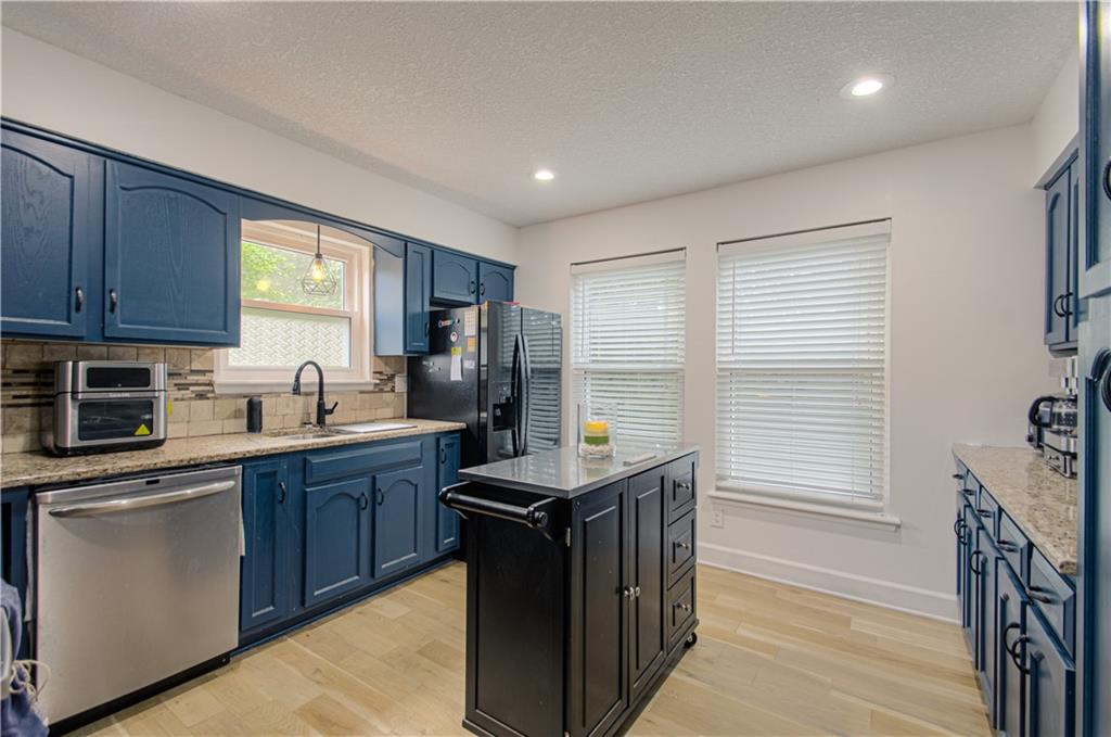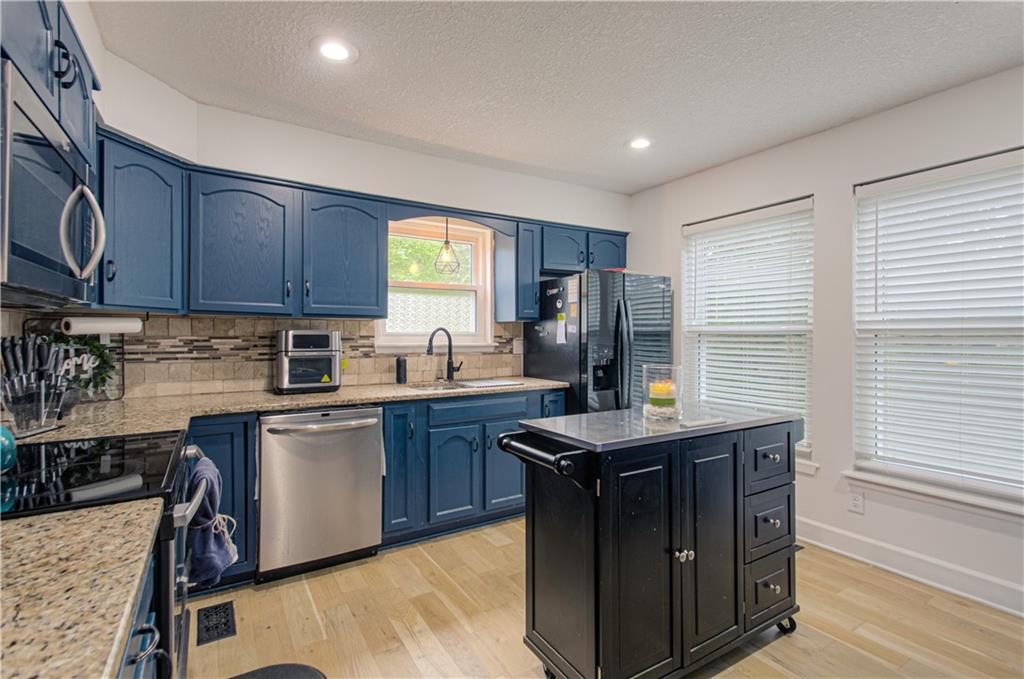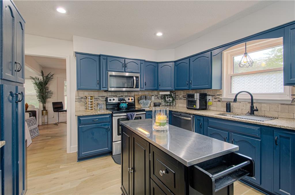 Beautifully Updated Home nestled in the desirable Castle Woods neighborhood! Welcome to this spacious and move-in ready home offering over 2,800 sq ft of living space in the heart of Bonner Springs. This 4-bedroom, 3-bathroom gem blends modern updates with classic comfort. Enter into a vaulted great room featuring refinished hardwood floors and a gas-start fireplace. The formal dining room connects to the kitchen for seamless entertaining. Kitchen: Granite countertops, painted cabinetry, built-in electric oven, stainless appliances, and a cozy hearth/breakfast nook beside it for casual meals or morning coffee. Primary Suite: A tucked-away private bedroom with double closets and a full en-suite bath. Two additional upper-level bedrooms share a full hall bath. Convenient main-floor laundry hookups, offering easy access without descending to the basement. Full walk-out basement expands usable space: a generous family room ready for media, games, or guest lounging. A comfortable 4th bedroom serves well for guests, a home office, or teen retreat, with its own full bath nearby. Looking for that perfect family home. Come make this one yours!
