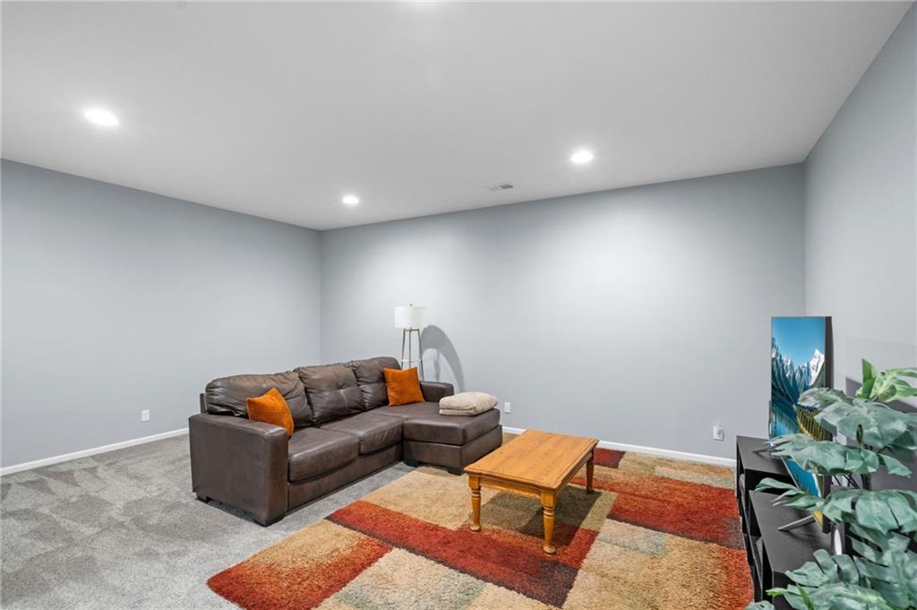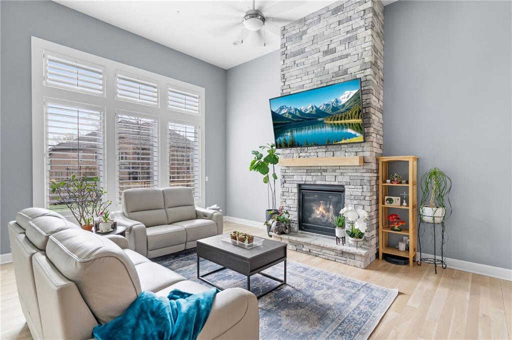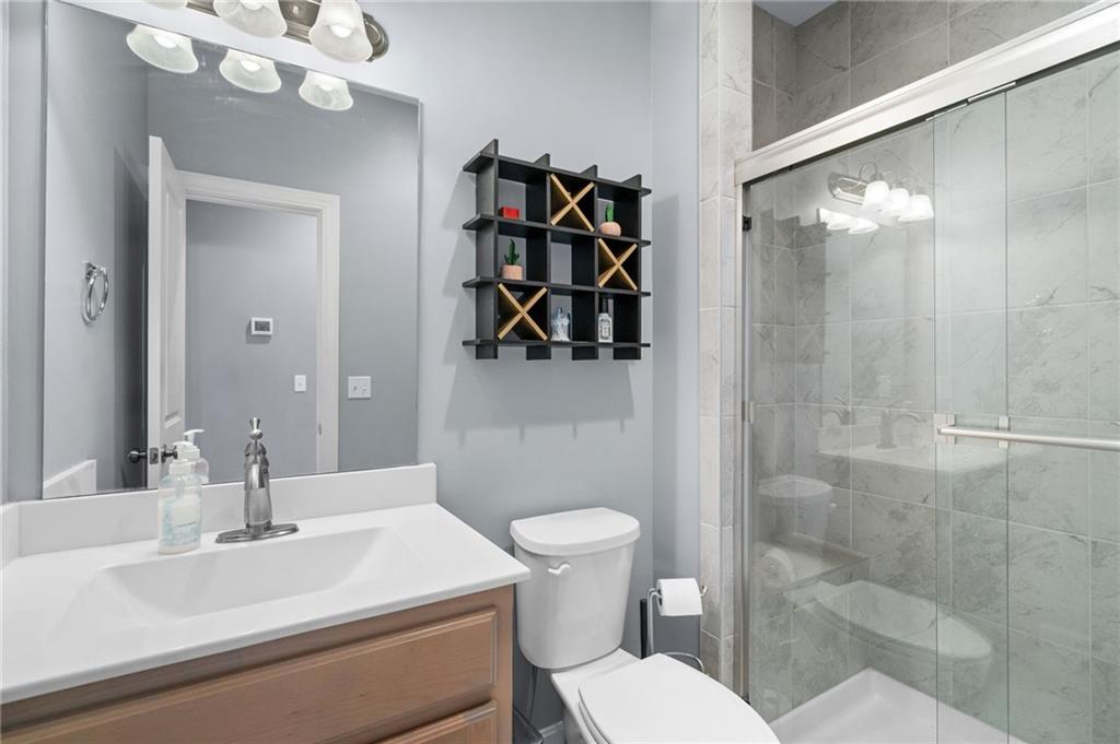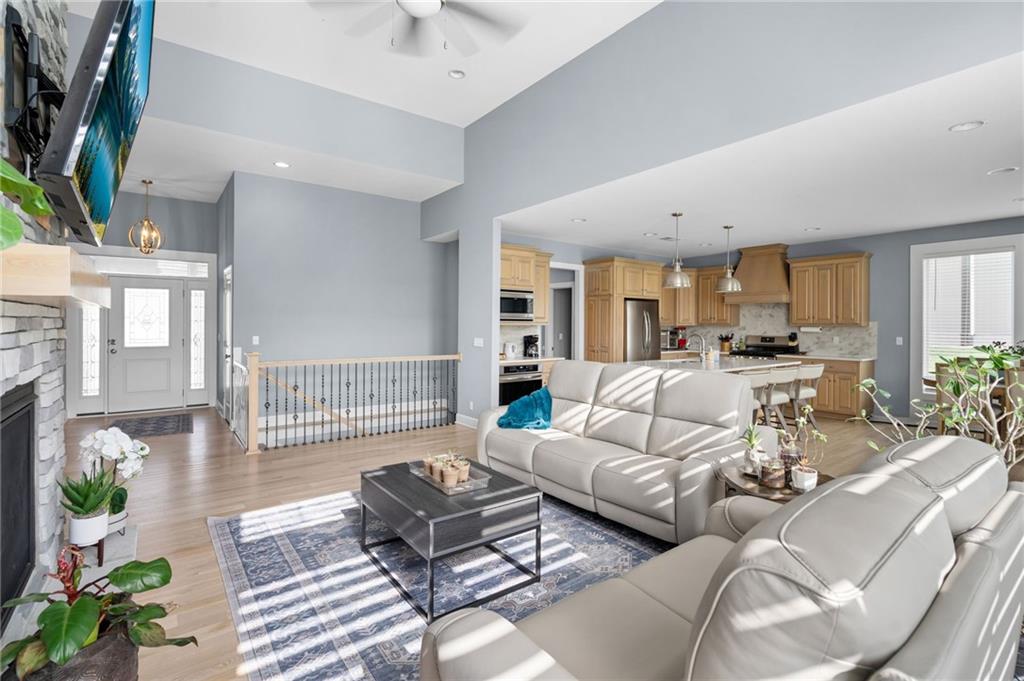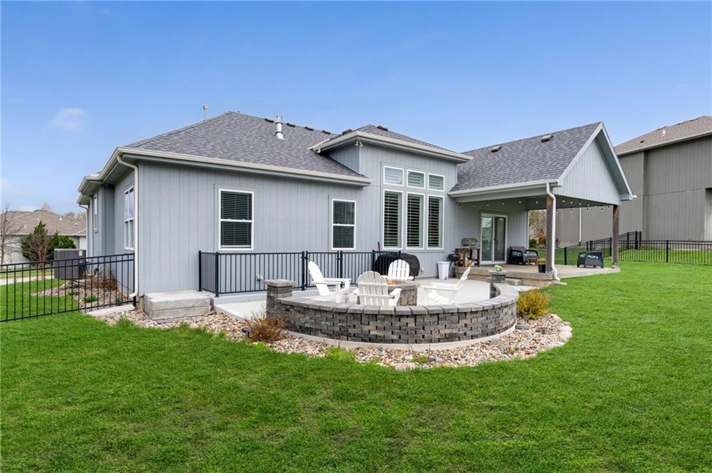 Stunning Ranch/Reverse home that features beautiful wood floors on the main level, open floor plan and kitchen with granite countertops, kitchen island, stainless appliances including a gas cook top that all remain with the home, white cabinets and pantry. Spacious primary suite that provides a wonderful walk in closet with lots of space, adjoining bathroom that features a double vanity, multi-headed shower and tiled floors. Finished basement with large rec room with wet bar and two additional bedrooms. Enjoy your fenced in backyard with a large patio space that is great for entertaining and includes a fire pit. Hurry this one will not last long!!!