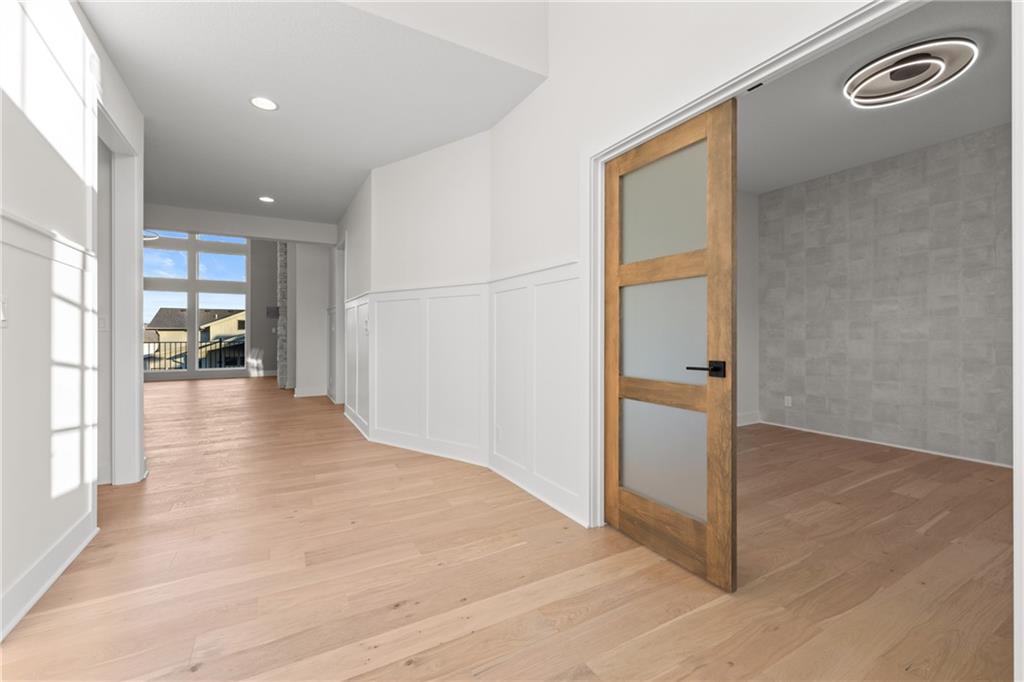 The Rosedale 1.5 Story plan with tandem 4 car garage, by SAB Homes is underway for a Sept. MOVE IN on lot #208 with large back yard trees. Beautiful modern farmhouse interior selection with light wood, white walls, mossy green accents, black and gold hardware and wood accent. Upgrades include celling beams, hallway wainscoting, white quartz and freestanding tub, front double doors with glass windows, large 14' patio along the back side of the house connecting the dining room to the primary suite, plus a covered patio. Pocket laundry in the primary closet and a full 2nd laundry upstairs by the bedrooms. This home has it all with a grand two story great room, main floor primary bedroom, office or formal dining room space, 3 bedrooms upstairs and a 2nd laundry. Striking curb appeal with stucco exterior, wood shutters, warm wood accents and real stone trim. Optional finished basement with 1164 additional square feet can be added with a 5th bedroom/ fitness room/ hobby space or extra office. There is still time to make your custom design selections. *This home is currently UNDER CONSTRUCTION and photos are from a previous home* Century Farms has a spectacular clubhouse with a fitness center, resort style swimming pool with a slide. There are plenty of neighborhood activities with a fire-pit, two pickle-ball courts and a basketball, kids play area, wildflower walkways and community garden. Century Farms is conveniently located near the brand new Bluhawk shopping center, Heritage Park, the Johnson County Trail system and the Overland Park Arboretum. Come join the fun in Century Farms, a unique one of a kind upscale new home community in Overland Park. BLUE VALLEY SCHOOLS