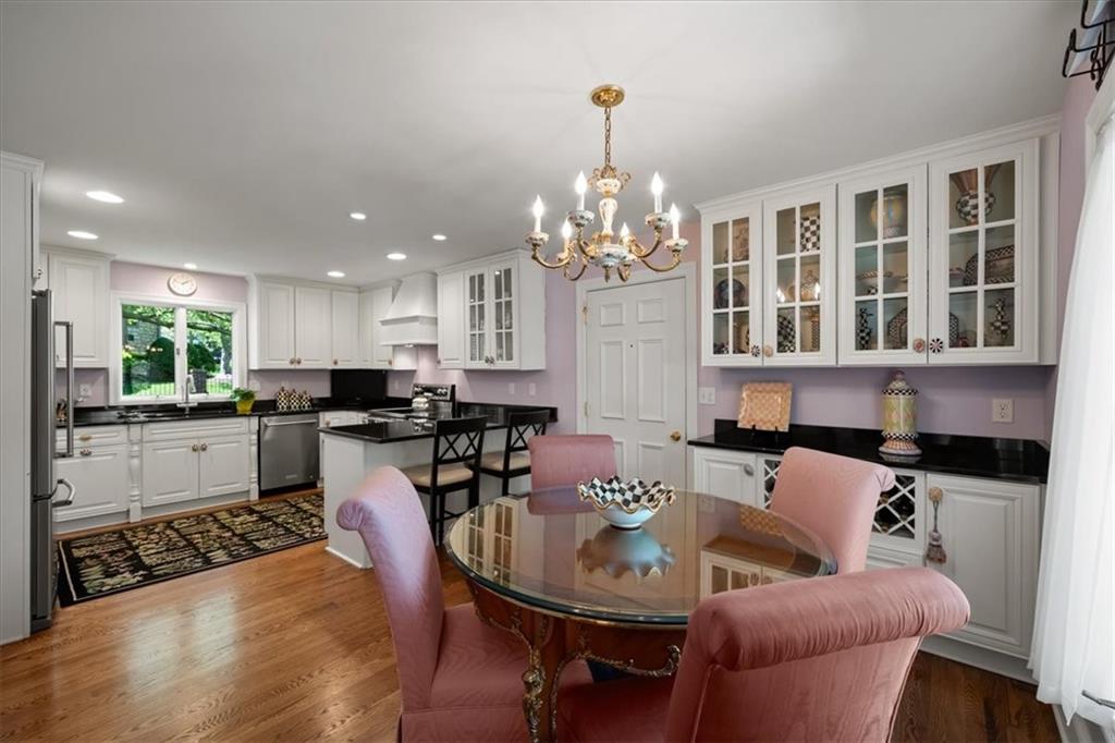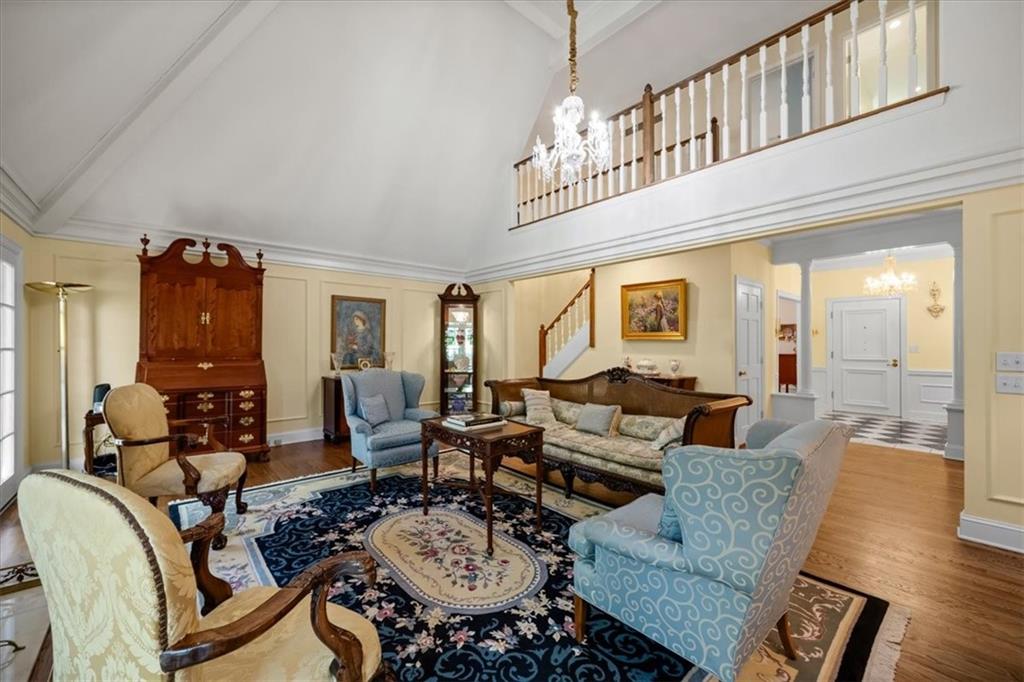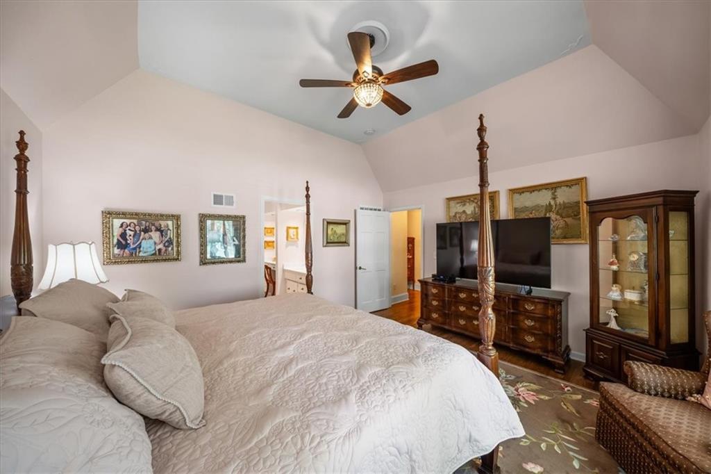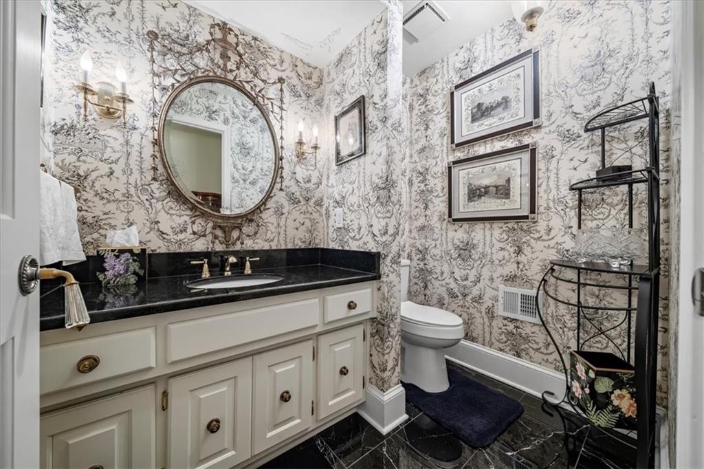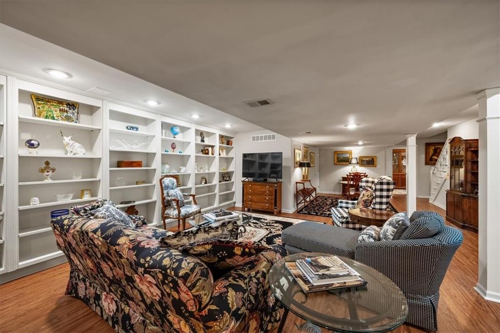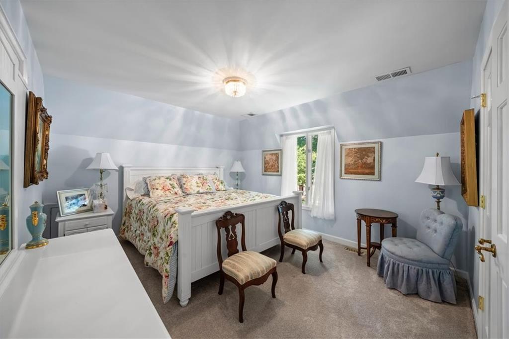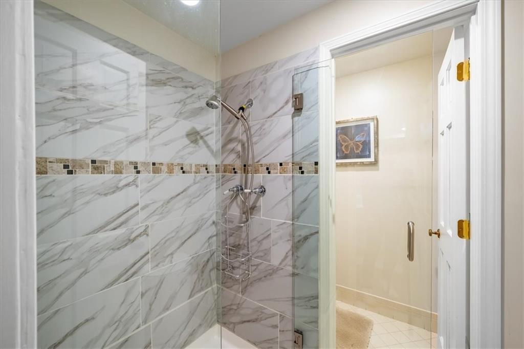 Experience maintenance-provided luxury in this fabulous 1.5-story home located in Corinth Downs. Boasting over 3,200 sqft of refined living space, a brand-new DaVinci roof, and zoned heating and cooling, this 3-bedroom, 3.5-bath home perfectly balances traditional elegance with a spacious, airy floor plan. The main level greets you with a grand foyer and a formal dining room featuring a tray ceiling and classic wainscoting. The soaring, vaulted living room, anchored by a stately fireplace and wet bar, is bathed in natural light, offering a seamless flow for entertaining. The kitchen is a chef's delight, featuring crisp white cabinetry, sleek black granite countertops, new stainless steel appliances, and a charming breakfast nook. Retreat to the main-floor primary suite, complete with a generous walk-in closet and a spa-like ensuite bath finished in exquisite floor-to-ceiling marble, featuring a glass-enclosed shower and a deep soaking tub. Main floor laundry is also available for your convenience. The upper level offers two additional bedrooms and a full bath, perfect for guests, a playroom, or a quiet home office. The expansive lower level significantly increases the home's footprint, offering a large recreation room with a second wet bar and dedicated dining area, an office, and a fourth non-conforming bedroom with a full bath. You will also find a secondary kitchen with an additional laundry room, offering unmatched storage and utility space. Step outside to a private, lushly landscaped brick enclosed patio, ideal for alfresco dining under the shade of mature trees. This home offers the perfect "lock-and-leave" lifestyle without sacrificing the scale and comfort of a traditional home.