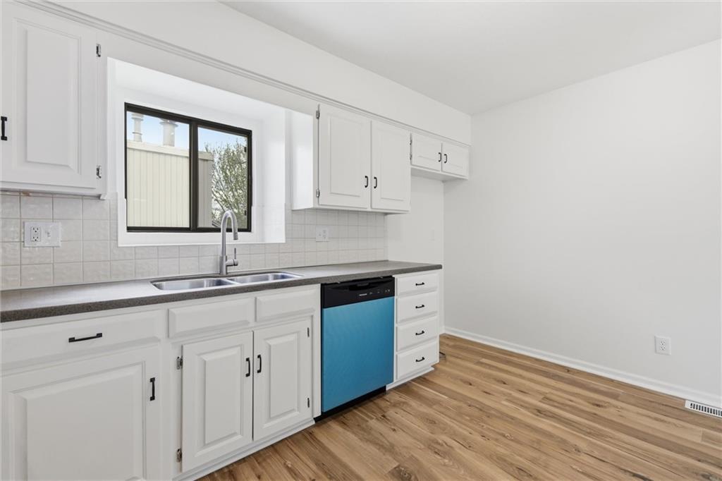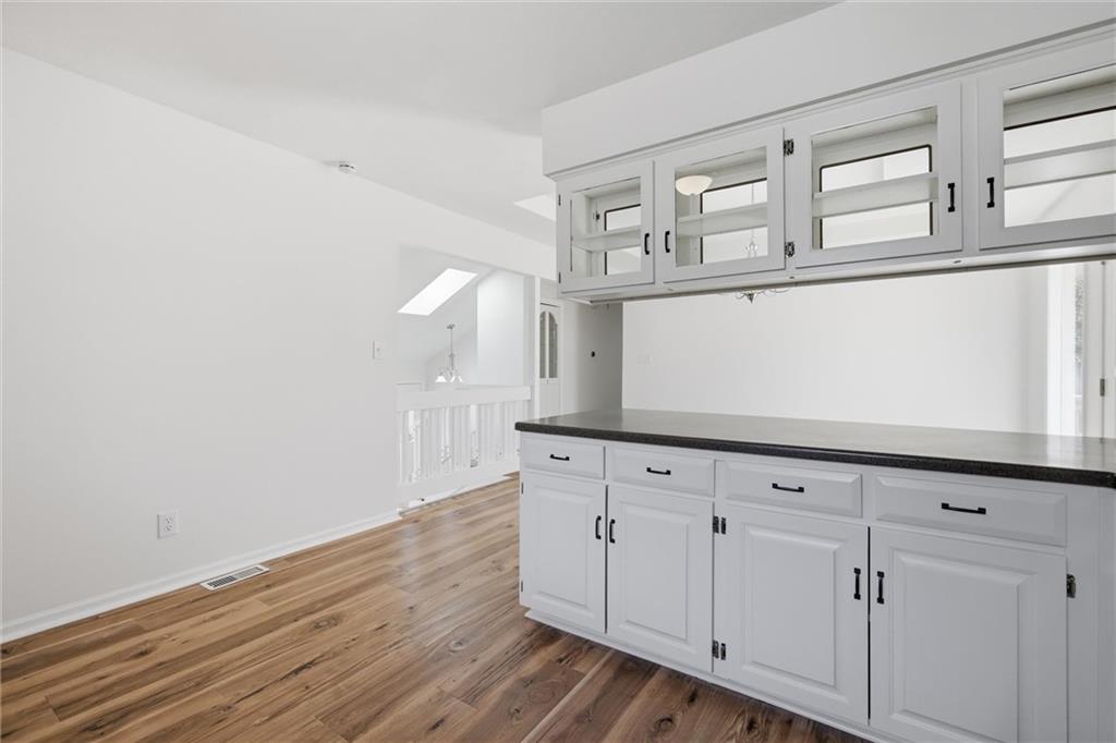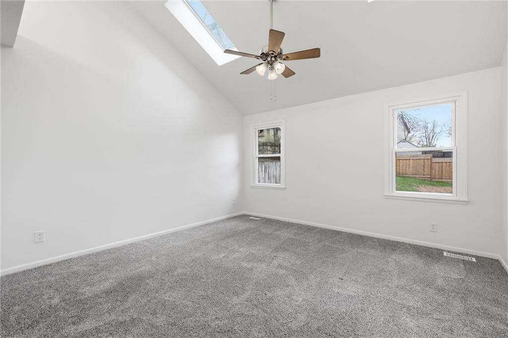 Welcome to 4109 NW 65th Street, nestled in the highly sought-after Seven Hills neighborhood within the Park Hill School District. This beautifully maintained split-level home offers 4 bedrooms, 3 full bathrooms, and nearly 2,000 square feet of finished living space — move-in ready from top to bottom. Curb appeal sets the tone from the moment you arrive, with warm wood-tone siding, a 2-car garage, and a welcoming front entry framed by a classic wood staircase. Step inside to an open dining and kitchen area featuring brand new flooring throughout, white cabinetry with glass-front uppers, tile backsplash, generous counter space, and a gas range — all flowing seamlessly to the brand new deck through a sliding glass door, perfect for indoor-outdoor entertaining. The primary suite impresses with soaring vaulted ceilings, a skylight, ceiling fan, walk-in closet, and a private en-suite bath. Additional bedrooms are spacious and bright, each with fresh new flooring and served by two full bathrooms with clean, updated finishes. A standout feature on the lower level is the charming barn door entry leading into the recreation room — an ideal flex space for a home office, playroom, or guest suite. The sub-basement provides ample unfinished storage housing all recently updated mechanicals. Out back, enjoy a brand new fence enclosing a generous yard paired with a freshly built deck — perfect for summer entertaining. Major systems updated include roof (2020), AC and HVAC (2022), and water heater (2023). Just 12–15 minutes from downtown Kansas City with easy access to I-29, this home delivers suburban comfort without sacrificing convenience. Don't miss it — homes in Seven Hills move fast!