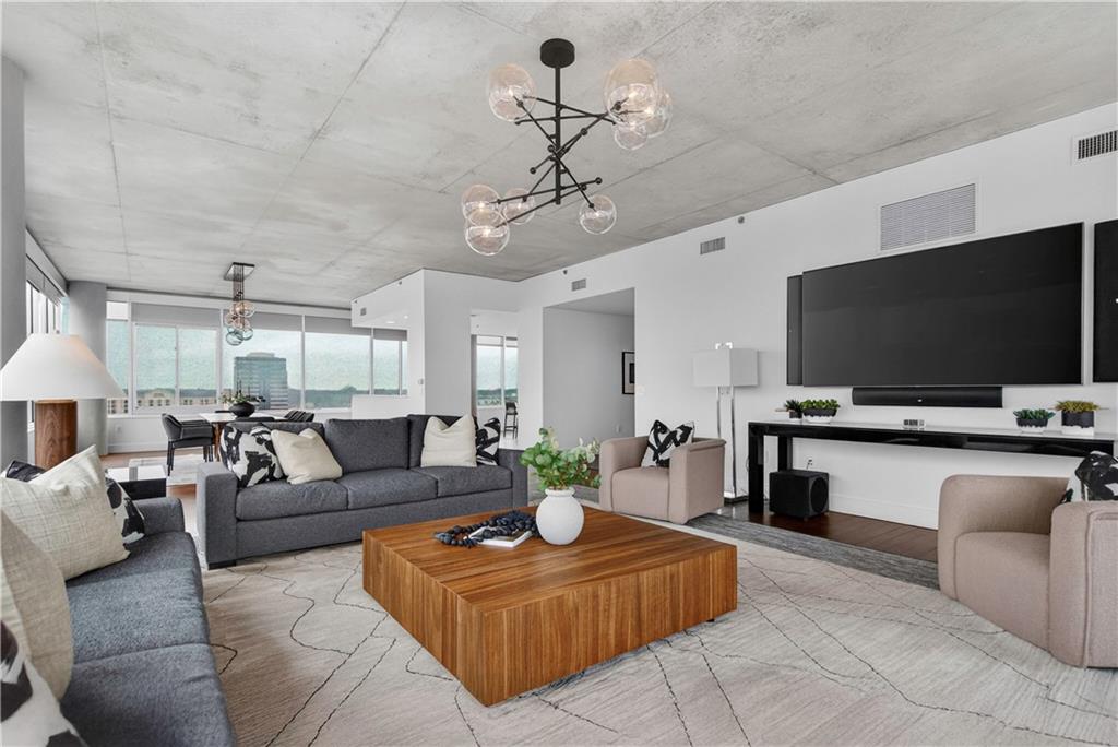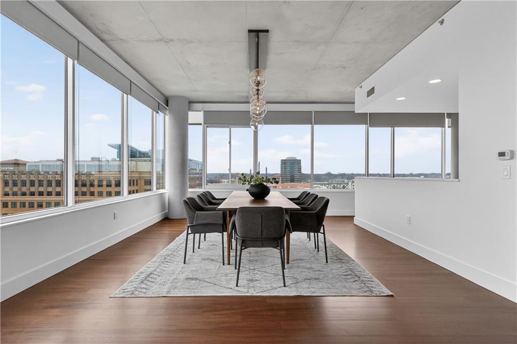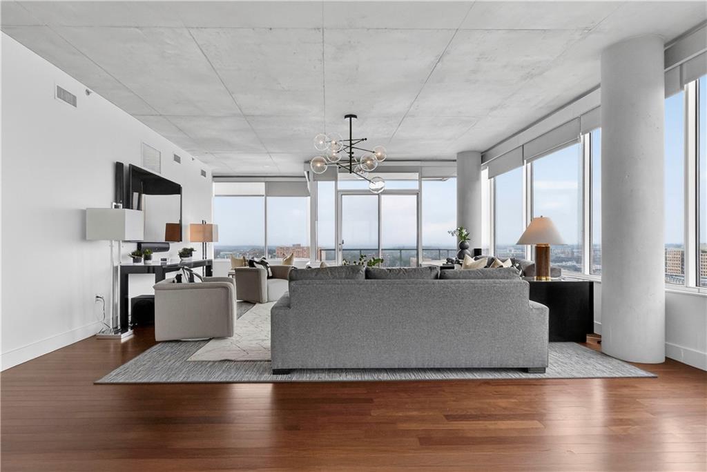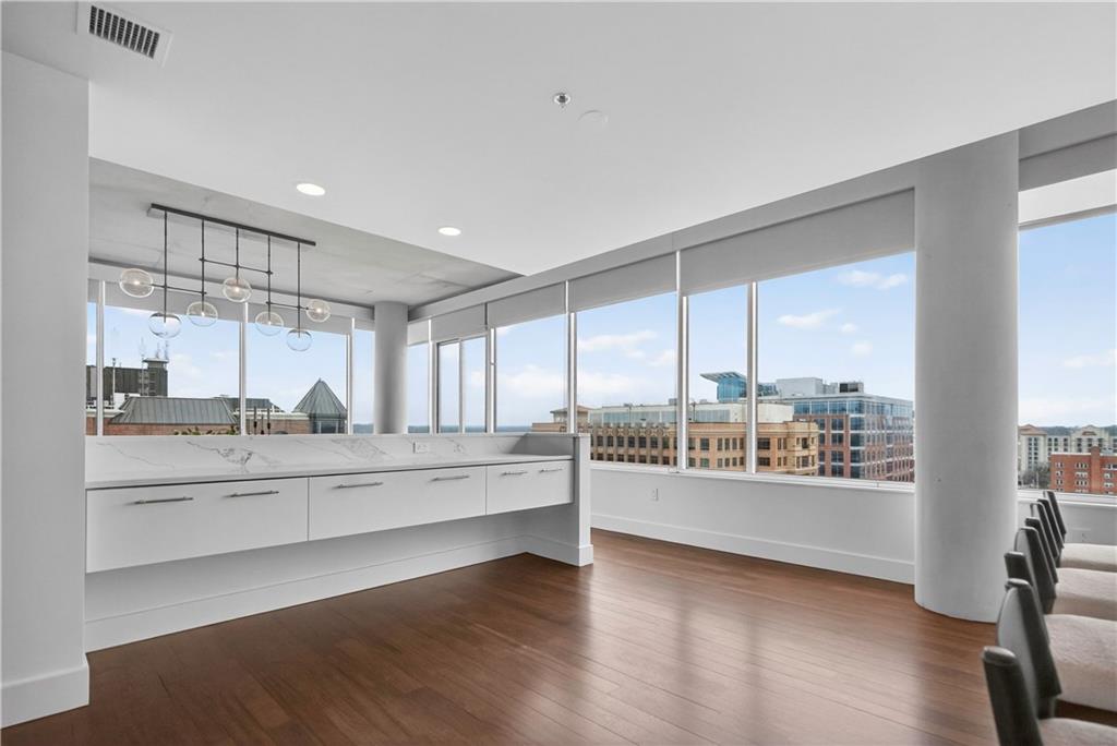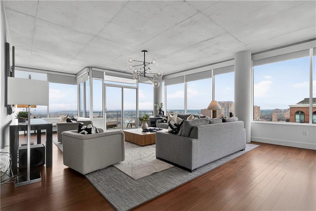 Experience refined penthouse living in one of the Plaza’s most sought-after modern buildings. This exceptional true three-bedroom residence combines expansive scale with sophisticated design and effortless comfort. Soaring 10-foot ceilings and walls of windows frame breathtaking panoramic views of the Plaza and city skyline, filling the home with natural light. A grand entry gallery creates an impressive first impression and offers the perfect backdrop for showcasing art. The stunning great room features rich Brazilian wood floors and flows seamlessly into a beautifully updated chef’s kitchen. Designed for both everyday living and entertaining, the kitchen is appointed with custom Pedini cabinetry, premium Wolf appliances, an Asko dishwasher, Monogram wine cooler, wet bar, soft-close drawers, and an oversized island. A bright breakfast area provides a serene start to the day, while the open formal dining space is ideal for hosting. The spacious primary suite is a private retreat, complete with a sitting area, an expansive 14' x 17' walk-in closet, and a newly renovated spa-like marble bath featuring a double walk-in steam shower. Enjoy outdoor living from a private patio, perfect for relaxing or entertaining against a stunning skyline backdrop. With its remarkable layout, elevated finishes, and unforgettable views, this penthouse offers a rare opportunity to experience luxury living at its finest.