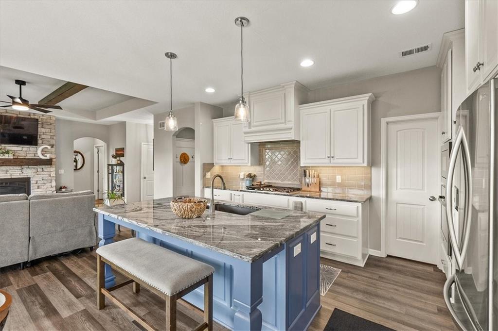 This house is better than new!! Over $40k in upgrades! Seabrook II plan, builder is Gianni Homes. Kitchen has granite counters, custom cabinets, & walk-in pantry. Stainless Steel Appliance, 5 Burner Gas Stove, convection oven with bluetooth! Gorgeous LVP Flooring that's scratch resistant. Great room is so bright and open with floor to ceiling fireplace & wood beams added to the ceiling. Custom blinds in upstairs rooms, Laundry in off the primary bedroom that walks through to the custom-built closet. The primary bathroom has a zero-entry huge shower with granite countertops. Lower level feels even more spacious with it's HIGH Ceilings, a wet bar, a 2nd family room, 2 more bedrooms, and a 3rd FULL bath! There are 2 large storage areas as well, perfect for a craft room or a home gym!! Fully fenced yard with a covered patio. Walking trails right behind the house, sprinkler system up front. The amenities include a community POOL, Pickleball Court, Sport Court, a Putting Green, TRAILS, a Playground, Walking Trails & more!! There is a brand new school, minutes away! This AMAZINGLY well-taken care of house is ready for you!!!! Hurry and come take a look, bc this won't last long as we priced it TO SELL!!!