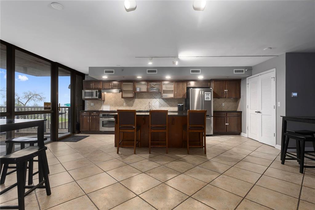 Welcome to luxury at The View in the heart of downtown Kansas City-where sophistication, space and skyline views come together in one exceptional residence with tax abatement. Perched on the 6th floor, this rare end-unit condo offers approx 1700 square feet and boasts a highly sought after THREE view floor plan, flooding the space with natural light and showcasing multiple amazing perspectives of the downtown skyline. Enjoy outdoor living like few others with TWO oversized private balconies, perfect for morning coffee or evening sunsets. Inside, the layout features newly re-done wood flooring and new carpet throughout. 2 bedrooms, 2 bath and a rare half bath off the kitchen, a unique upgrade not commonly found in the building. The open concept kitchen is appointed with granite, stainless, a center island, newly painted cabinets and a pantry, seamlessly connecting to the main living space. A large flex nook provides perfect space for a home office, library or creative studio. The primary suite offers a spa like retreat with updated bathroom featuring an enhanced pull out storage solution for maximum functionality. Floor to ceiling windows-paired with electronic shades on one side-complete the elevated living experience. Additional highlights include in unit washer/dryer and TWO parking spaces, offering convenience and value. Residents of The View enjoy Fitness Center, Pool, Sauna, Tennis, Basketball/Pickleball Courts, Putting Greens, Pet Play Area, Clubhouse with party room, executive kitchen and private theatre room. On Site management, secured entry with doorman and concierge. Extra storage lockers on 2nd floor and bicycle storage. Located just minutes from River Market, Berkley Riverfront and Columbus Park, this home places you in the center of Kansas City's vibrant dining, entertainment and waterfront lifestyle. Tax abatement in place. Grab your opportunity to own of the most desirable floor plans in this building.