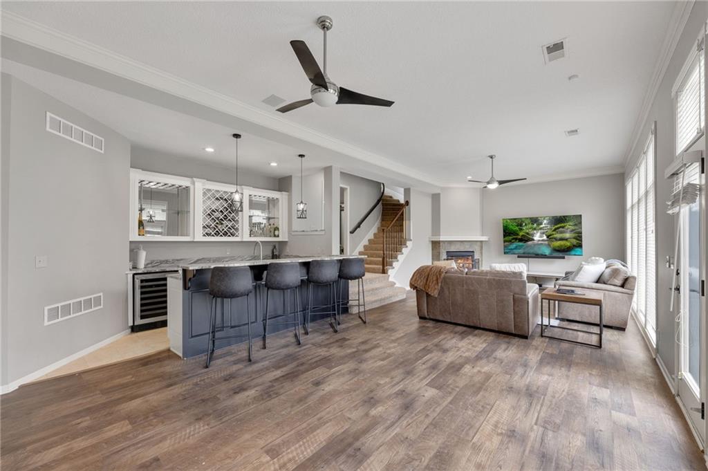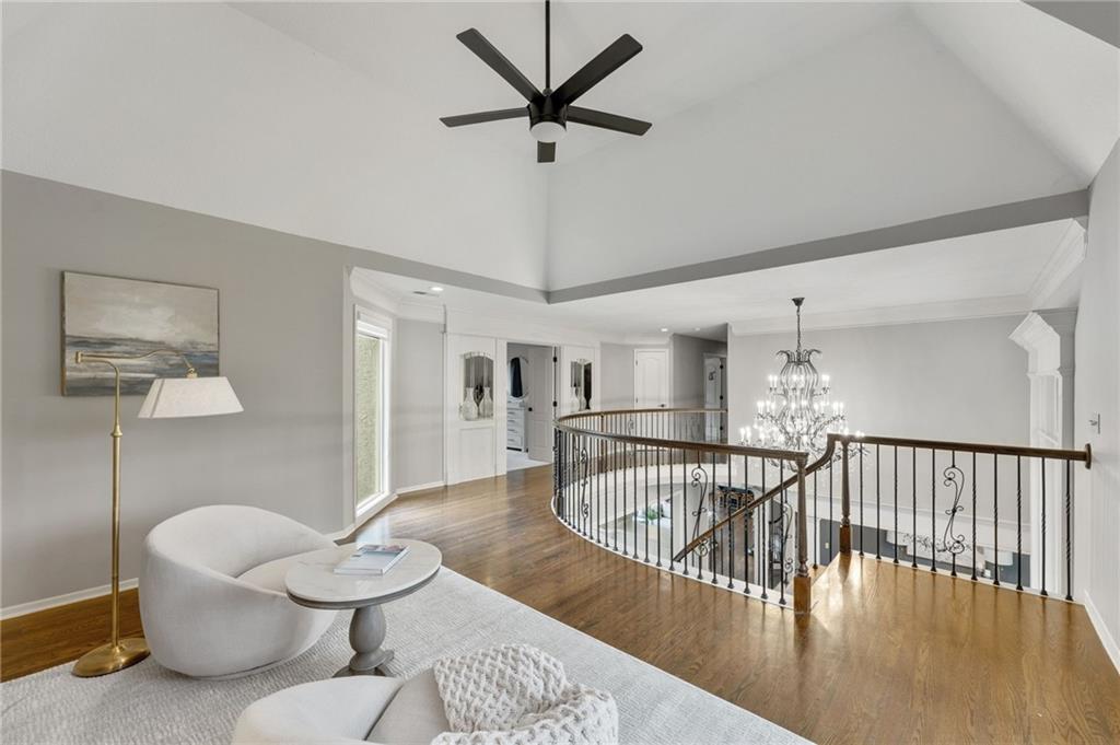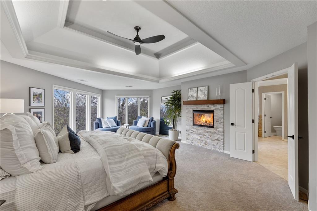 BACK ON MARKET...NO FAULT OF SELLER!!! Tucked at the end of a quiet cul-de-sac in the coveted Pavilions neighborhood, this stunning 5-bedroom home delivers the lifestyle buyers dream about. Double doors and a beautiful curved walkway sets the tone before you even step inside — and from there, every detail delivers. The soaring kitchen and oversized island are made for gathering, while the custom designed office, mudroom and walk in pantry are an organizers dream. Upstairs, the loft offers flexible space for work or play, and the primary suite is nothing short of a retreat — featuring a spa-worthy soaker tub, a cozy fireplace, and a closet that rivals most bedrooms. Whether sipping your morning coffee and watching the sunrise above the trees or enjoying a cozy fireside conversation, you won’t want to leave. The finished lower level goes above and beyond with a custom bar, full bedroom with ensuite, dedicated theater, exercise room, and play room. Step outside and breathe — private, treed views from every rear window and a gorgeous deck make you forget the world exists. Community pool, cul-de-sac privacy, and all the space you’ve been waiting for. Welcome home!