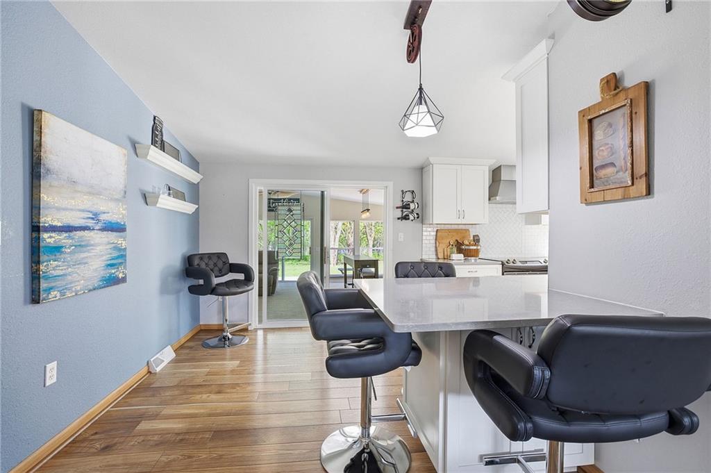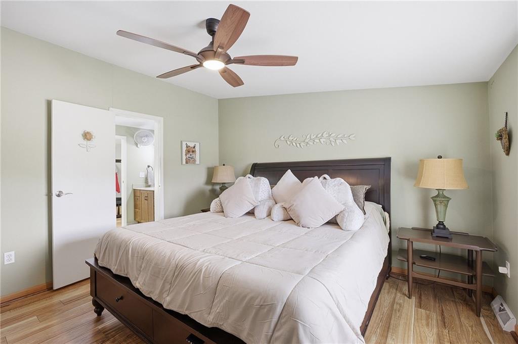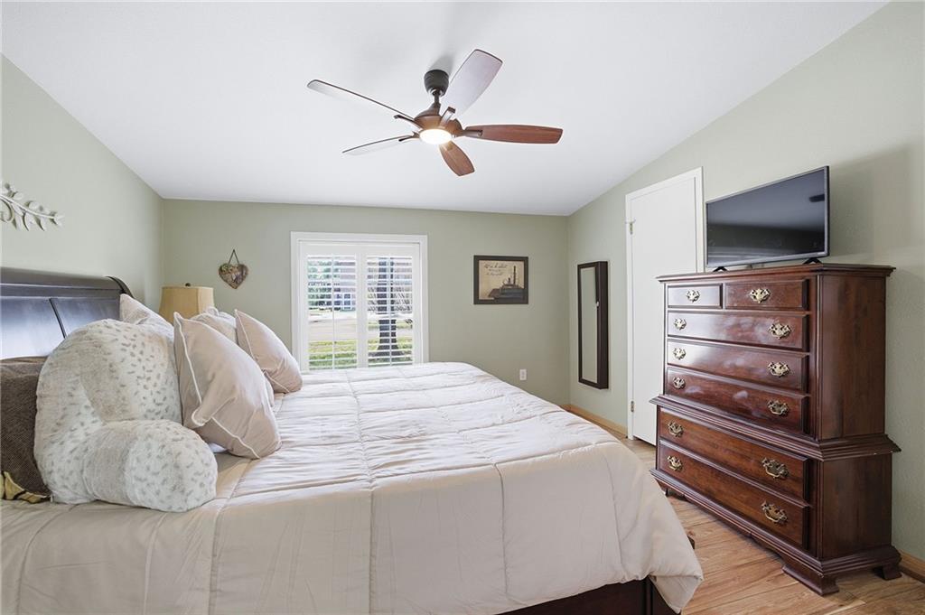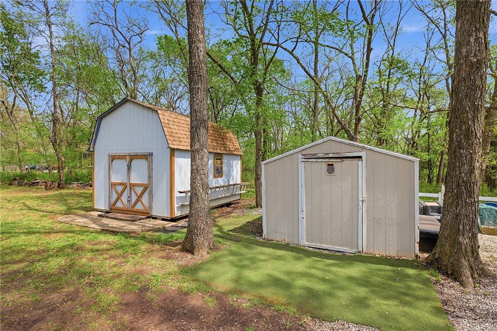 Beautifully updated ranch home, a rare find that offers exceptional privacy and space spread across four combined lots in the gated Linn Valley Lakes community. The interior boasts a spacious open layout with soaring vaulted ceilings, refreshed with bright paint colors and a whitewashed stone fireplace, stylish luxury vinyl plank flooring, and elegant plantation shutters throughout. At the heart of the home is a large kitchen featuring sleek quartz countertops, a walk-in pantry, and plenty of space for gatherings, making it an entertainer's dream. The home also features a large primary suite and an impressive sunroom that provides significantly more square footage to the living space while flooding the home with natural light. Oversized 26x30 garage. Practicality meets the lake lifestyle with two outbuildings on-site, perfect for storing all your lake toys, tools, and gear. Major updates provide peace of mind, including a one-year-new roof, and while the home currently utilizes a cistern, the ability to connect to city water is currently being installed across the street for easy future access. Outside, the level, treed grounds feature a huge patio, private fire pit, hot tub and paved drive all while granting you access to premier resort amenities like the 18-hole golf course, private lakes, and community pools. Welcome home to Linn Valley Lakes! HOA fees for this property include the lot the house sits on and an additional 3 adjacent lot. Each lot has an HOA fee for the cumulative monthly HOA fee that is listed. Taxes and SqFt per county record. Room sizes approx. No preferences or limitations or discrimination because of any of the protected classes under Fair Housing.