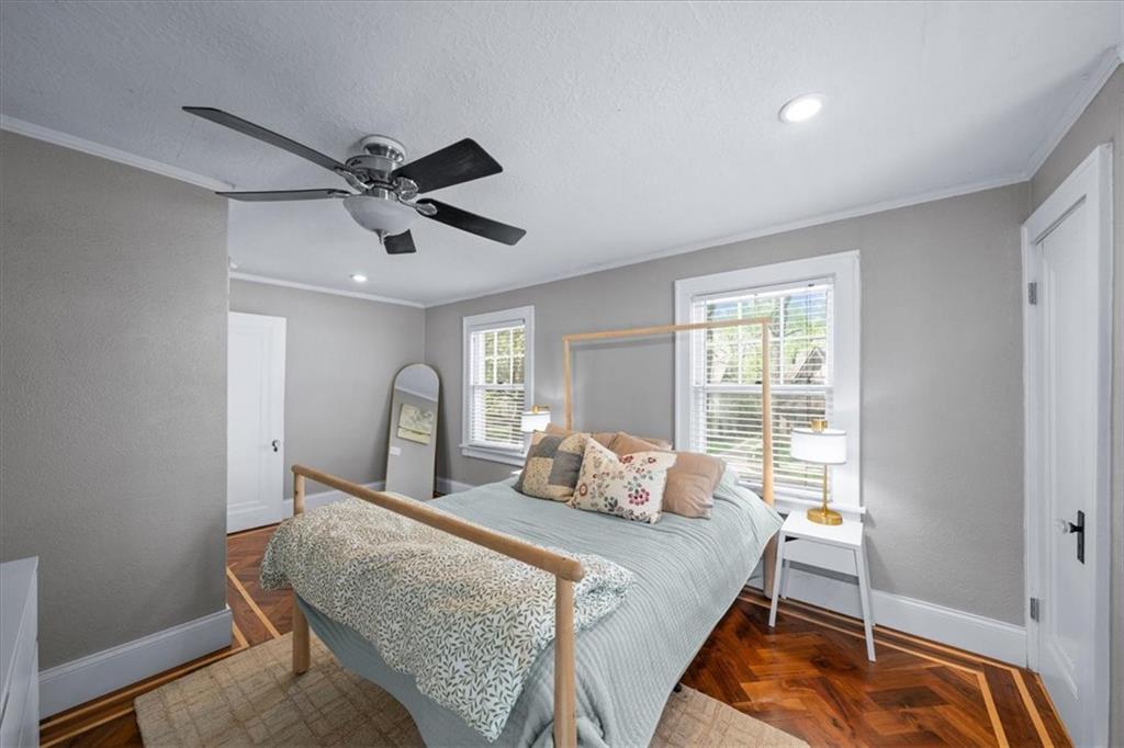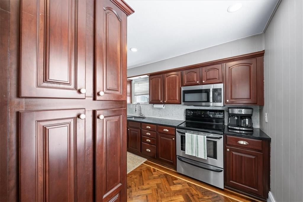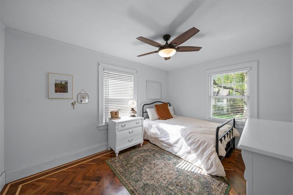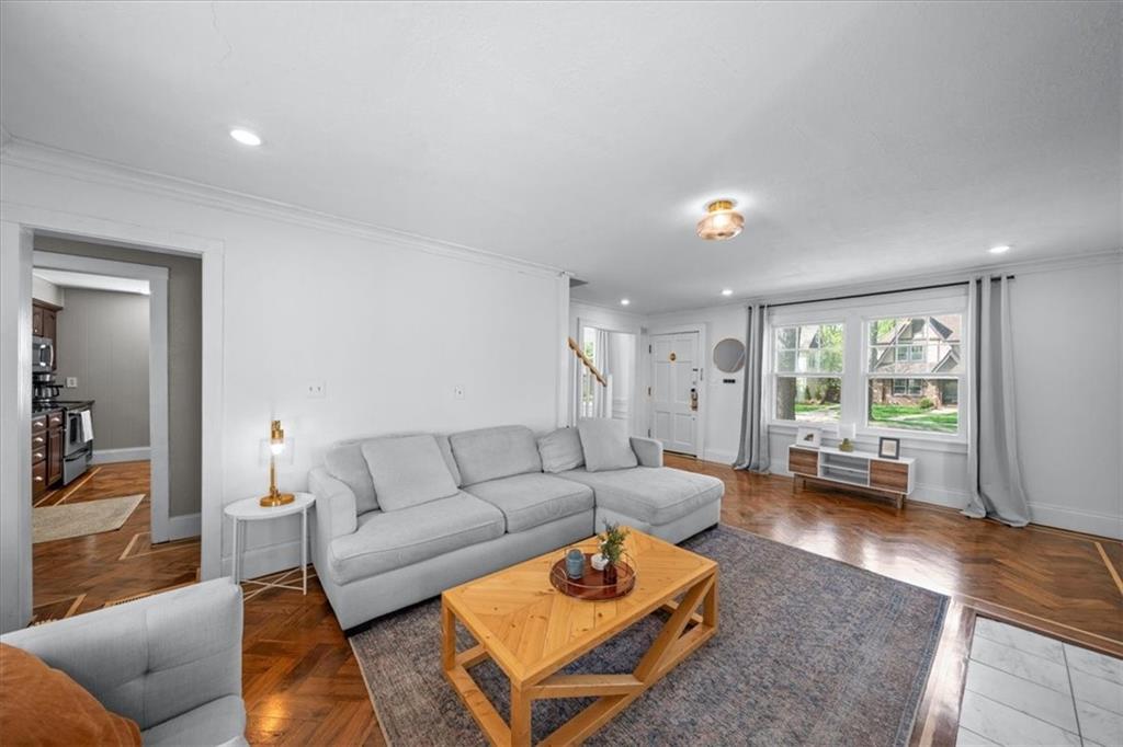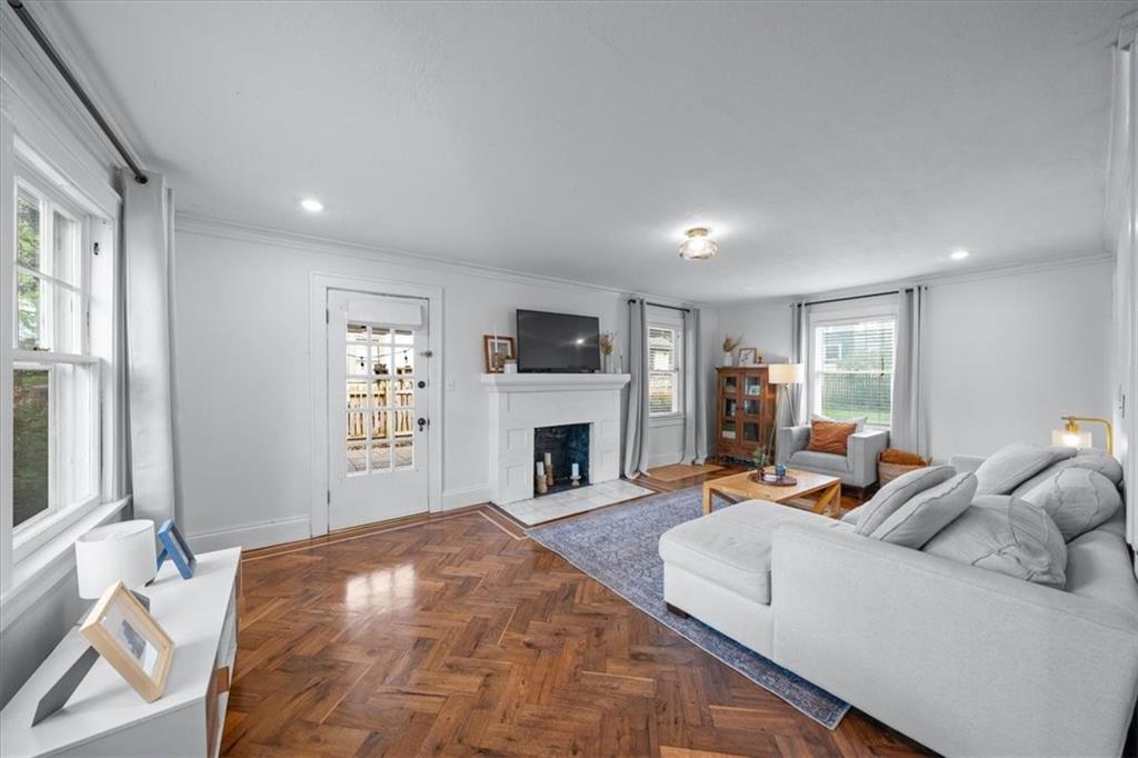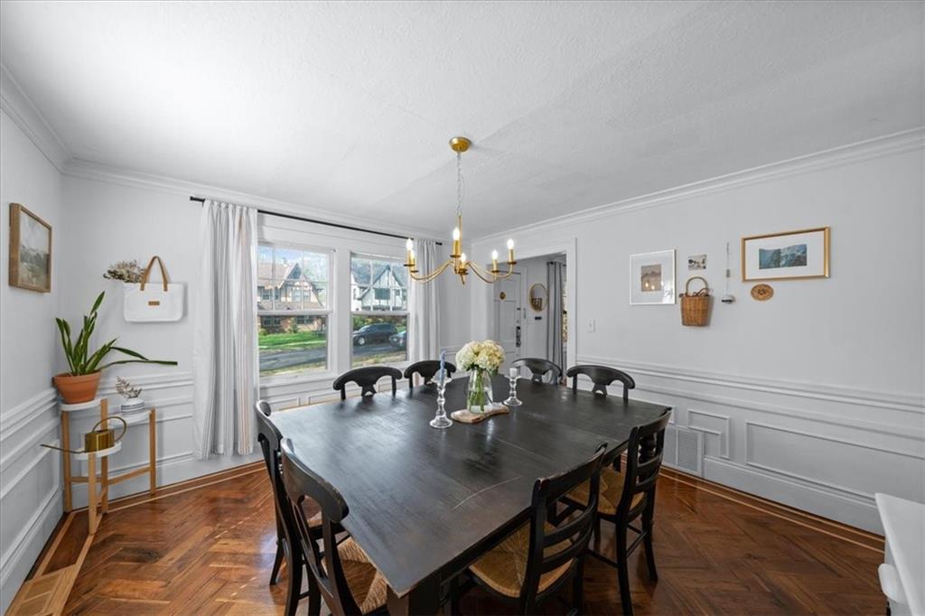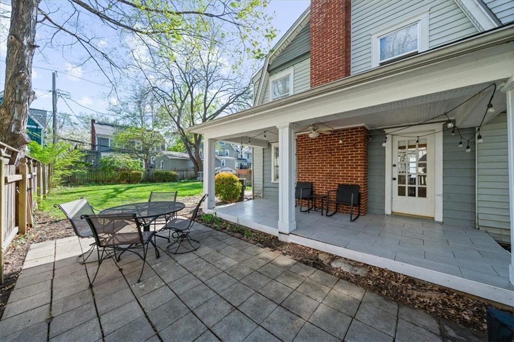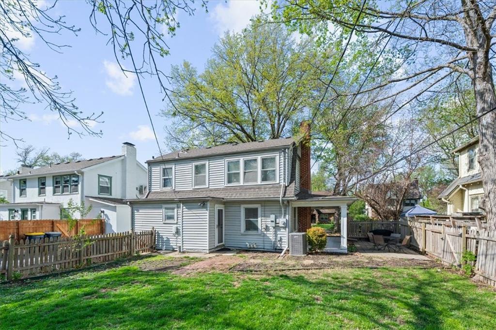 This charming 3-bedroom, 1.5-bath Colonial is full of character and thoughtful updates throughout. Stunning herringbone walnut wood floors with a maple border make a true statement—one of a kind! The main level features a formal living room, formal dining room, convenient half bath, and an updated kitchen with stylish cabinetry, granite countertops, marble tile backsplash, and stainless steel appliances. All three bedrooms are located on the second level, along with a full bathroom. Generously sized bedrooms include a primary suite with dual closets and a second bedroom featuring a custom double-wide closet system. Enjoy the covered porch just off the living room and the adjacent paver patio—perfect for relaxing or entertaining. The spacious backyard offers plenty of room to play or garden. Unbeatable location just minutes from shops and restaurants along Gregory and 63rd Street!