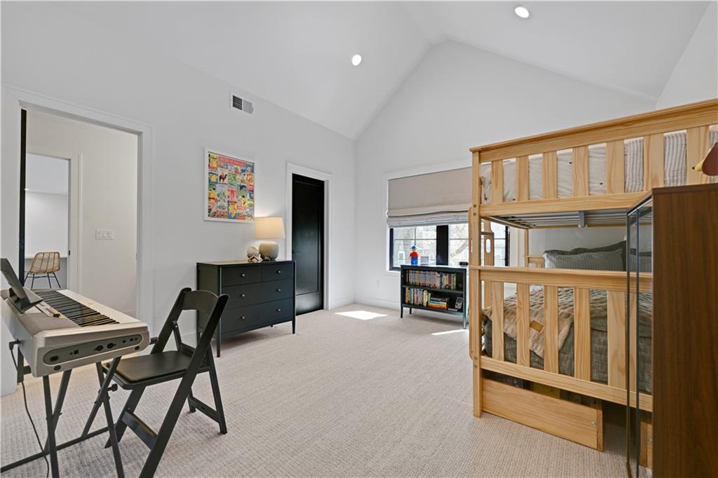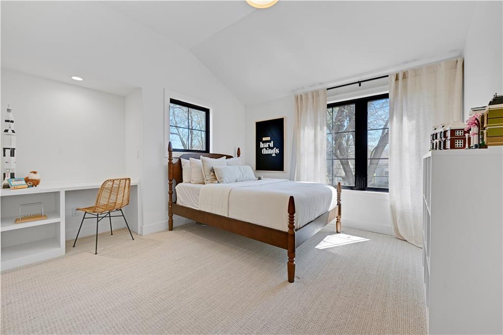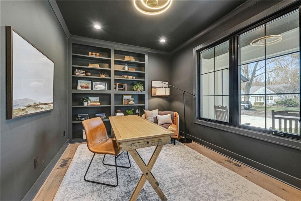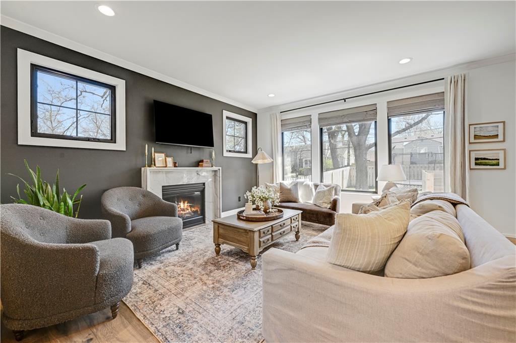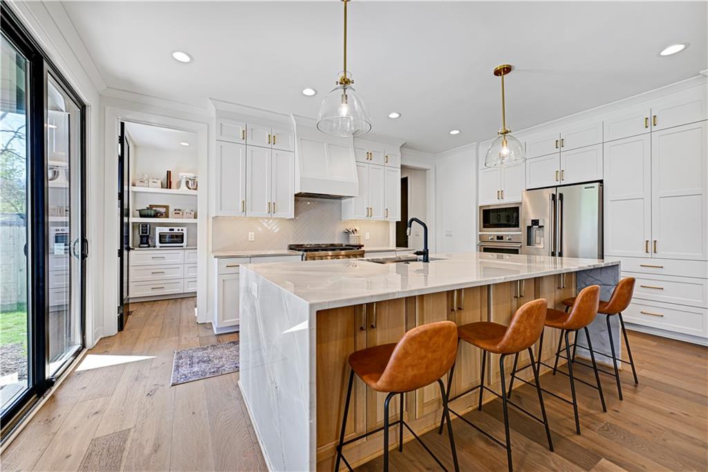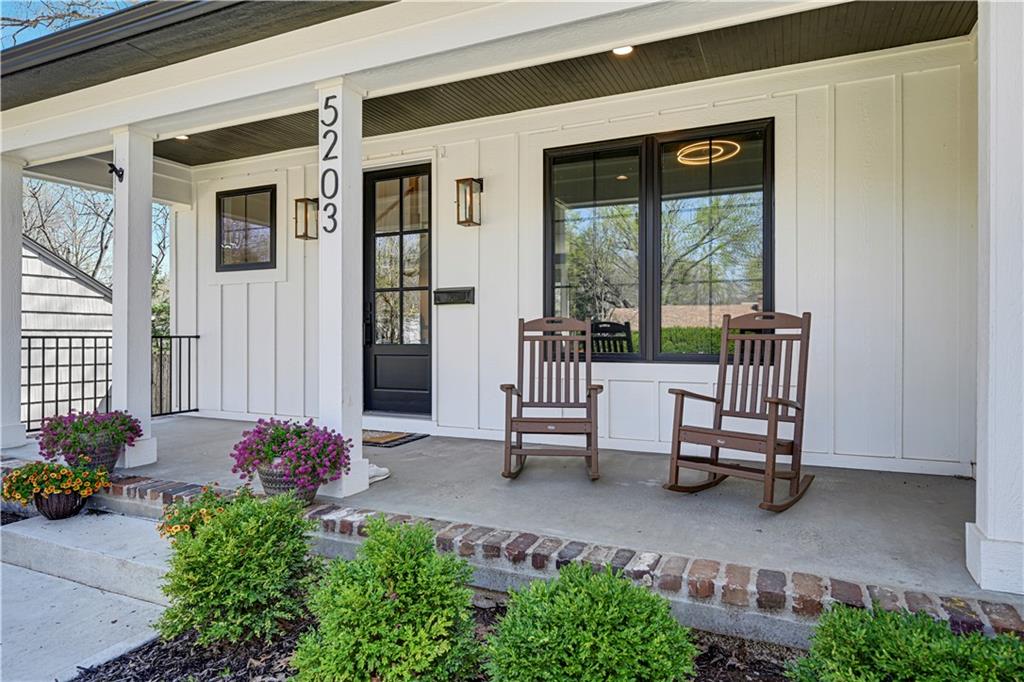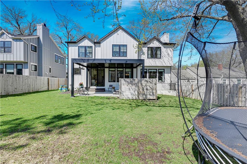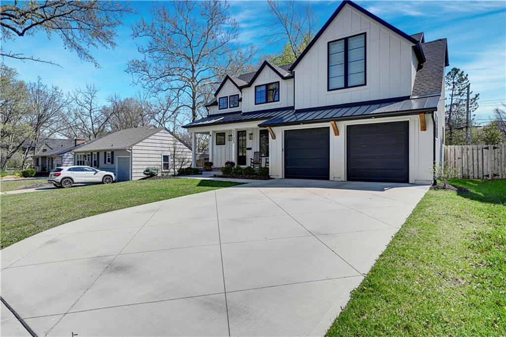 Welcome to this stunning, nearly new 2.5 year old modern farmhouse in the heart of Prairie Village. This beautifully crafted 2 story home by MOJO Built offers 5 bedrooms, 4.1 baths, and is thoughtfully designed for both everyday living and entertaining. The main level features a private front office, spacious living area, and generous dining space. The open concept kitchen is a showstopper with expansive cabinetry, a large quartz island with storage on both sides, a dedicated coffee/drink bar, and a walk in pantry. All appliances remain with the home. Upstairs, you will find 4 bedrooms and a conveniently located laundry room. Three secondary bedrooms include a jack and jill bath plus an additional private ensuite. The owners suite is a true retreat, featuring a vaulted ceiling with beams, a spa like bathroom with soaking tub and walk in shower, abundant counter space with under cabinet lighting, and an oversized walk in closet. Enjoy outdoor living with a recently added adjustable pergola, hot tub, and fully fenced backyard, perfect for relaxing or entertaining. Additional highlights include Anderson windows, an EV outlet in the garage, an oversized 2 car garage, large storage room under the suspended garage, and a charming covered front porch. Ideally located near multiple parks and just minutes from Prairie Village shops, this is one you will not want to miss!