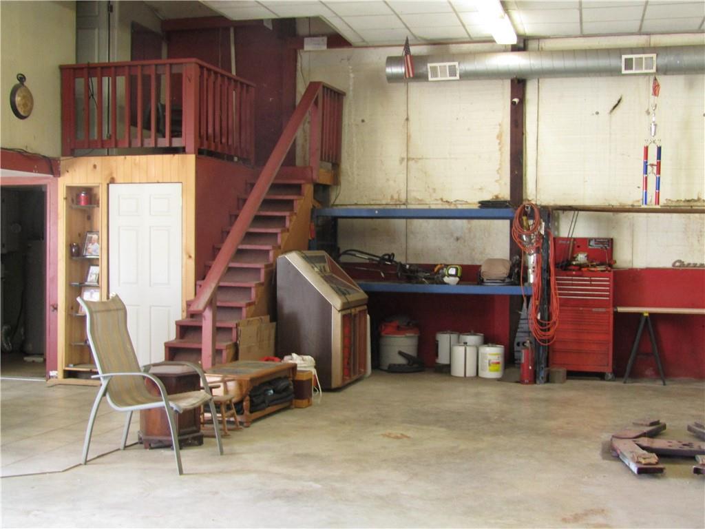 Gardner Lake living with first tier, lakefront home and large garage/outbuilding with living quarters. From the lakeside, the home has an oversized deck overlooking the entertainment area and dock. From the deck, you enter the home at the dining and kitchen area separated by a kitchen breakfast bar. Kitchen provides wood cabinets, stove, microwave, refrigerator and sink. Full bath with shower off the kitchen. The living room with fireplace finishes off this level. Take a flight of stairs up to the next level with the primary bedroom with builtins. The french doors open to an office area, closet and extra sleeping area. This is at street level. Exit to porch and carport. Cross the road to the outbuilding/garage with loft bedroom, kitchen, bath and laundry. The garage portion of the building has room for 4 cars and a car lift. There is a wood burning stove, a/c and furnace, industrial size air compressor and shelving. Two oversized garage doors. The building sets on a 15,399 sq ft lot per RPR.Properties are sold together with one address. Make your lake dreams come true!