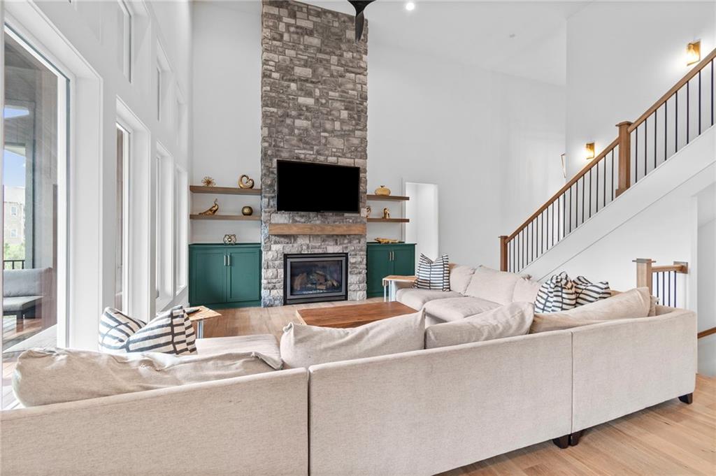 GORGEOUS custom-built home seamlessly blends modern comfort and thoughtful design in breathtaking natural surroundings! Nestled on a rare .97 acre lot, this custom home offers the peace and privacy of nature with the convenience of neighborhood living. Tucked away on a quiet cul-de-sac with only one neighboring home, the setting is exceptionally secluded and serene. Surrounded by greenspace, a tranquil pond, and mature trees, the property feels expansive and private, with deer and wildlife frequently passing through.Enjoy peaceful mornings on the screened balcony/porch where the sounds of nature set the tone for the day. Step inside to a grand, open entryway that flows seamlessly into an impressive living room. Soaring vaulted ceilings and expansive windows flood the space with natural light while showcasing breathtaking views.Upgraded stone gas fireplace anchors the room, creating a warm and inviting gathering space. Custom-designed kitchen features stylish countertops, a gas cooktop, built-in oven and microwave, and a spacious walk-in pantry conveniently located just off the oversized 3-car garage. Nearby laundry and mudroom enhance everyday organization and convenience.Main-floor primary suite offers a private retreat with a wall of windows framing peaceful views. The luxurious en-suite bath provides a spa-like experience, complete with a custom seated vanity area, a walk-in shower, a separate soaking tub, and an oversized walk-in closet.Upstairs features three generously sized bedrooms, each with its own walk-in closet and private bathroom! Offering approximately 2,700 square feet above grade plus an additional 1,800-square-foot unfinished walkout basement, this home provides endless possibilities for future expansion. Whether you envision a home gym, theater, extra bedrooms, or a recreation space, the lower level is ready for your personal touch. This is more than a home—it’s a rare opportunity to own a private, nature-filled retreat in a neighborhood setting!!