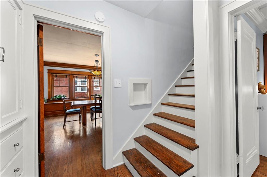 This traditional Brookside home is located on a desirable street with an inviting front porch and tons of charm! The living and dining rooms are generously sized for the area and feature original woodwork and built-ins and beautiful hardwoods throughout. Gorgeous Kitchen has been remodeled with high-end finishes, stainless appliances and features a breakfast room. New roof, newer HVAC, and Renewal by Andersen windows throughout. Large expandable unfinished attic offers significant opportunity to add square footage, including potential for a primary suite (stubbed for plumbing). Unfinished basement is super clean with high ceilings and egress windows. Private drive and one-car garage provide off-street parking. Convenient location with walkability to UMKC and Rockhurst, local restaurants (Earls' Premier is 1 block away), Crestwood and Brookside shops, and the Trolley trail.