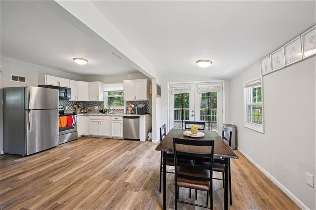 Now vacant, this 3 bedroom 2 bath home has original hardwood floors in the living room and 2 bedrooms and new carpet in the back bedroom. Spacious kitchen has stainless steel appliances that stay and an eat-in dining room with french doors that go out to the back deck. Lots of recent updates to include new privacy fence in the back with sliding drive through gate, newer paint inside and out and newer HVAC. Second full bathroom and laundry room are in the basement as well as the attached garage. Large fenced yard. Great starter home or investment property. Easy access to Fort Leavenworth.