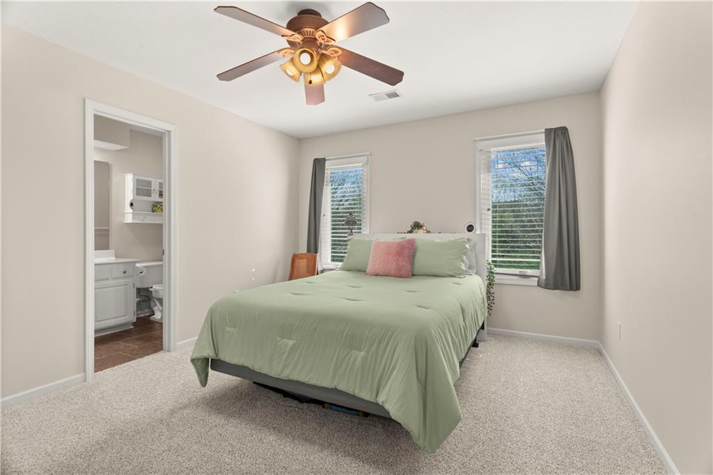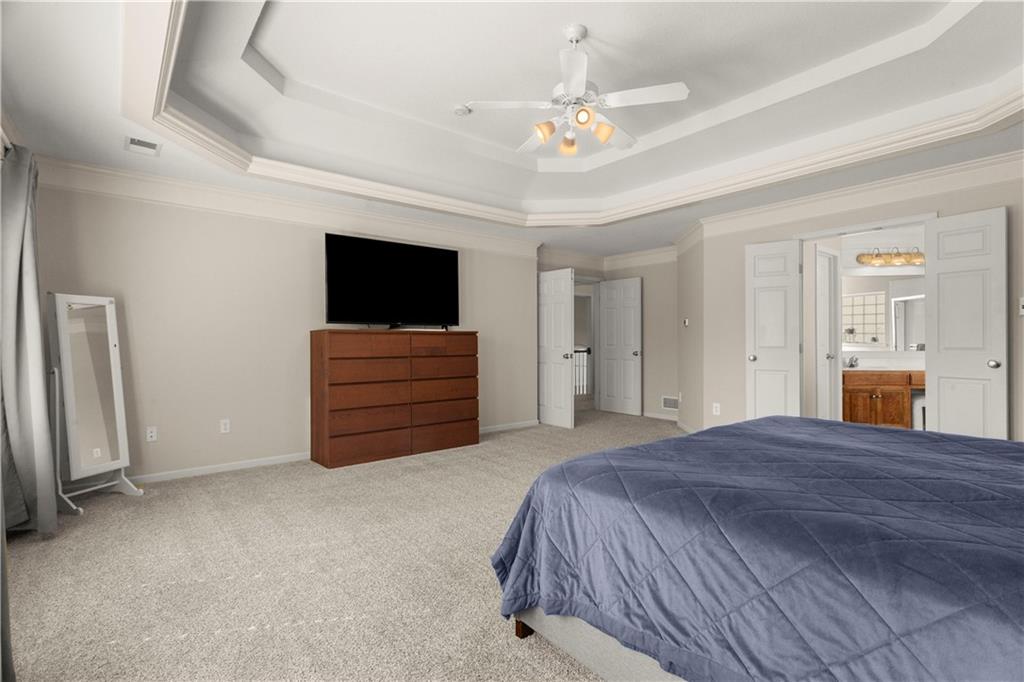 This is a true stunner in the coveted Paddock neighborhood, where pride of ownership shines throughout. You’ll immediately notice the abundance of natural light pouring in through oversized, newer (all replaced 2-3 years ago) windows. A spacious entry welcomes you and flows seamlessly into the main living areas. The well-appointed kitchen offers ample cabinet and counter space, a large island, walk-in pantry, and casual dining area. It opens to a cozy hearth room with a see-through gas fireplace shared with the adjoining family room—generously sized and highlighted by a bow window that maximizes natural light. The kitchen and family room overlook a gorgeous, fully fenced backyard—perfect for entertaining—with a 17x14 deck and matching sized patio pre-wired for a hot tub. A formal dining room with elegant trim adds versatility, while a half bath and spacious laundry room with built-in sink complete the main level. Upstairs, accessible by two staircases, you’ll find an inviting primary suite with a spacious bedroom and a well-appointed ensuite featuring double vanities, a whirlpool tub, and a truly impressive walk-in closet. Three additional bedrooms all include walk-in closets—one with a private bath, the others connected by a Jack-and-Jill. A bright loft with vaulted ceiling and skylight offers the perfect reading nook or flex space. The finished daylight basement includes a 5th non-conforming bedroom or office, along with high-quality finishes ideal for a theater or workout area. An attached bar space, plus room for a game table, a 4th full bath, and generous unfinished storage complete the lower level. Zoned HVAC adds efficiency, and the oversized 3-car garage easily accommodates a full-size truck. The carpets in the home were replaced about 2-3 years ago. There is also a battery back-up system on the sump pump.