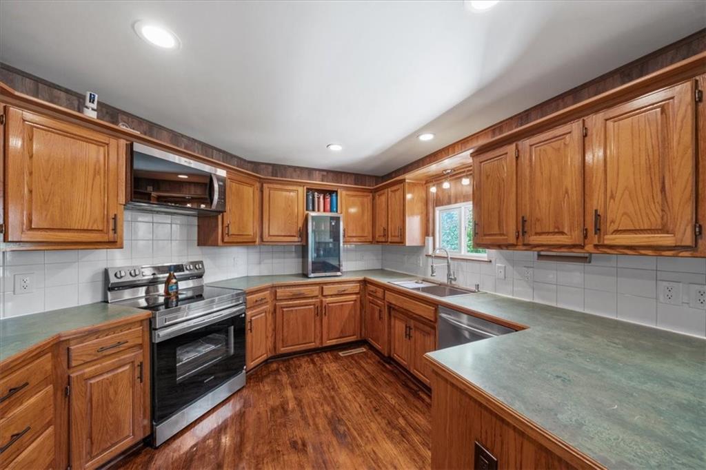 Meticulously maintained and quietly upgraded throughout, this Waterfield North home offers peace of mind from day one. Major improvements are already complete, including brand new stainless steel appliances, refinished woodwork, and new carpet in key areas. You can feel the care the moment you walk in. The main level is designed for real life, featuring a spacious primary suite, comfortable living areas, and a great room that naturally becomes the heart of the home. It’s a layout that works just as well for everyday routines as it does for gathering with the people who matter most. Downstairs, the walkout basement offers a completely different experience. A custom-built bar with reclaimed wood creates a warm, inviting space perfect for entertaining or a game night in. In addition to the three true bedrooms, the home offers a large bonus space ideal for a home office, guest area, gym, or flexible fourth sleeping space depending on your needs. One of the standout features is the side entry garage, tucked privately along the home, offering a versatile setup for hobbies, storage, or a true car enthusiast space. A hidden attic accessed through a bedroom closet adds character and storage you rarely find. Out back, a newer deck overlooks the tree-lined fence and a tucked-away nook, giving you a quiet place to unwind or gather with friends and family. With the major updates already complete, this home offers a rare balance of move-in readiness and long-term flexibility in a highly desirable neighborhood.