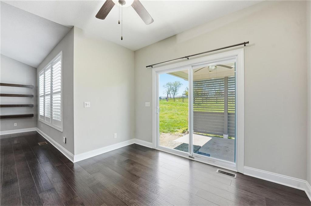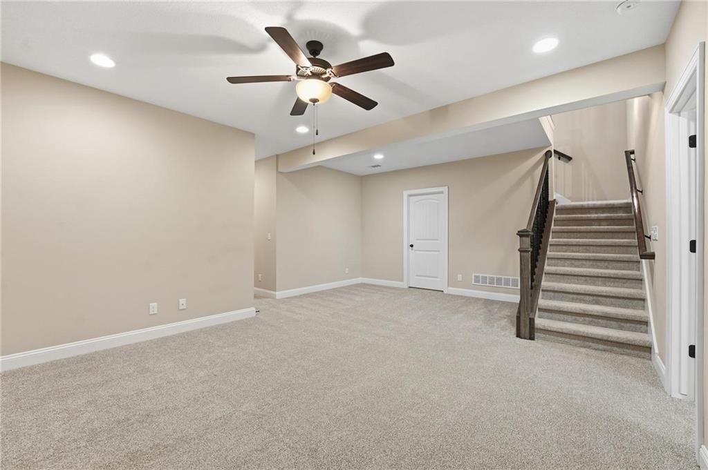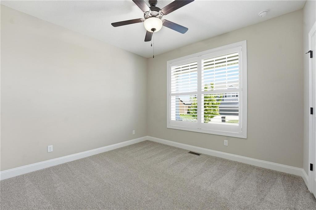 Beautifully upgraded home on a large, professionally landscaped lot in Lee’s Summit offering a rare combination of custom features, comfort, and efficiency. From the moment you step inside, you’ll notice the vaulted and tray ceilings, highlighted by a custom wood-look beam in the living room that adds warmth and architectural character. The kitchen is well-appointed with granite countertops, GE Profile appliances, and custom pantry shelving, making it both functional and stylish. Throughout the home you’ll find thoughtful upgrades including nine ceiling fans, remote-controlled lighting and fan switches, decorative vent covers, and custom shelving in the living room and basement. The home is equipped with whole-house comfort systems including a central humidifier, dehumidifier, and air scrubber, along with a smart thermostat. Energy efficiency is enhanced with upgraded attic insulation (R45 over the garage and R60 over living areas), plus a radon mitigation system and sump pump with battery backup. The primary suite and upper-level living areas feature plantation shutters, while lower-level bedrooms include blinds. Additional custom touches include weathered barnwood-look tile accents in select spaces and a second stair railing for added safety. Exterior features include a larger patio, four-foot fenced yard, rocked flower beds, and extensive landscaping with a variety of mature and ornamental plantings. A smart sprinkler system and French drain add convenience and functionality. The exterior is further enhanced with painted foundation walls to match the Hardie Board siding, custom decorative shutters, and lockable window well covers. Additional highlights include a natural gas line for a gas or electric dryer and custom laundry shelving. This home offers a unique blend of upgrades, space, and thoughtful design in a desirable Lee’s Summit location.