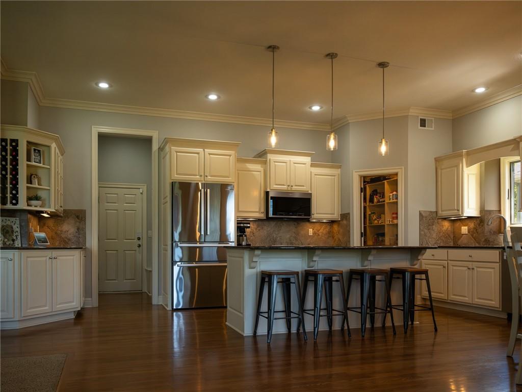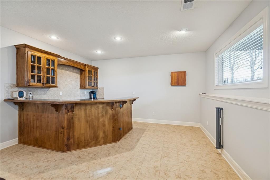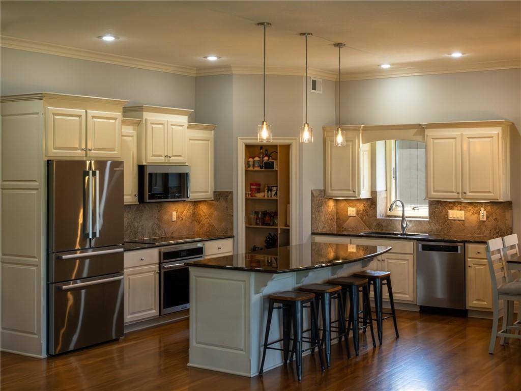 Dreaming of affordable, luxurious living on a private Johnson County golf course? Located in the Estates of Prairie Highlands, this home sits on a premium, fenced golf lot offering the most incredible 11th Fairway and sunset views found within the entire community. This reverse 1 ½ story home offers an open floor plan with spacious rooms throughout. Hardwood flooring in the foyer opens to the large great room appointed with gas fireplace & plantation shutters. The hardwoods continue past the dining room/flex space and into the incredible kitchen with tons of cabinet & counter space plus large (full use) island, and an enormous custom walk-in pantry! The back hall contains a convenient coat closet and laundry room with sink and cabinetry. Off the kitchen's spacious breakfast room is your comfortable screened-in porch overlooking the course and the level, newly fenced backyard--a wonderful spot for a future pool! The primary suite includes a fully tiled walk-in shower, separate jetted tub, double vanities and large walk-in closet. Bedroom #2 and 2nd full bath complete the main level. The lower-level family room offers plenty of space for your Chiefs game day parties featuring a beautiful 2023 Brunswick pool table plus a full walk-behind wet bar and walk-out access to the backyard patio. Two more bedrooms, each with walk-in closets, are connected by a large Jack & Jill bath with dual vanity areas. Recent updates include roof & interior paint (2020), new dishwasher (2022), new toilets (2023), all new primary bath tile (2023), new oven & cooktop (2024), new deck stairs (2025), Kitchen cabinets refinished & freshly painted (2026), New kitchen lighting (2026), Screened porch freshly painted & re-screened (2026), New Exterior Paint coming soon! Epoxy flooring in garage! Open-to-the-Public "Crush Restaurant & Bar" is located in the subdivision clubhouse. Enjoy Golf privileges with membership to club. Prairie Highlands-A Great Value compared to other JOCO golf communities!