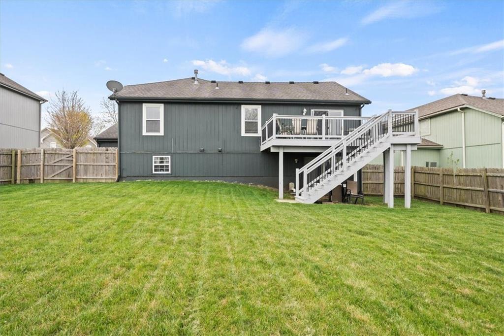 Fantastic location in Lee's Summit with no backyard neighbors?! Yes, please! This beautiful California Split home boasts tons of room to enjoy with two living rooms, a basement bedroom and bathroom, and of course, the primary suite perched up on its own floor. The en suite bathroom is massive and the vaulted ceilings just soar in the bedroom! The laundry is conveniently located on the main level by the 2nd and 3rd bedrooms. Plus Happy Tails dog park is just around the corner so this one is furry friend approved as well! Hurry out and take a look so you can move in just in time to enjoy Summer in your new home!
