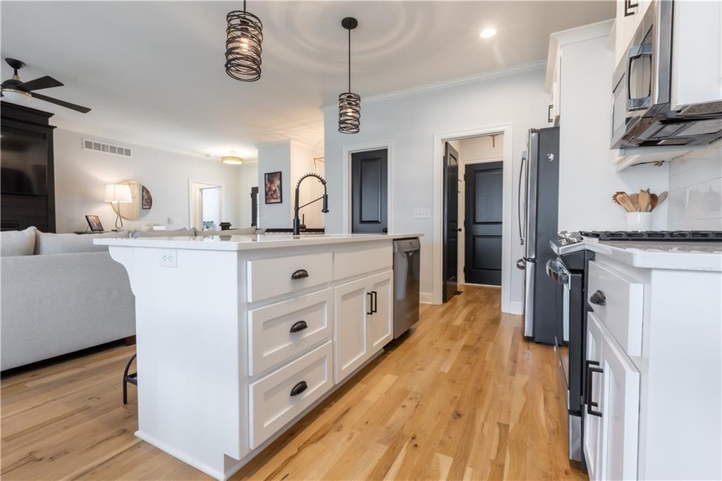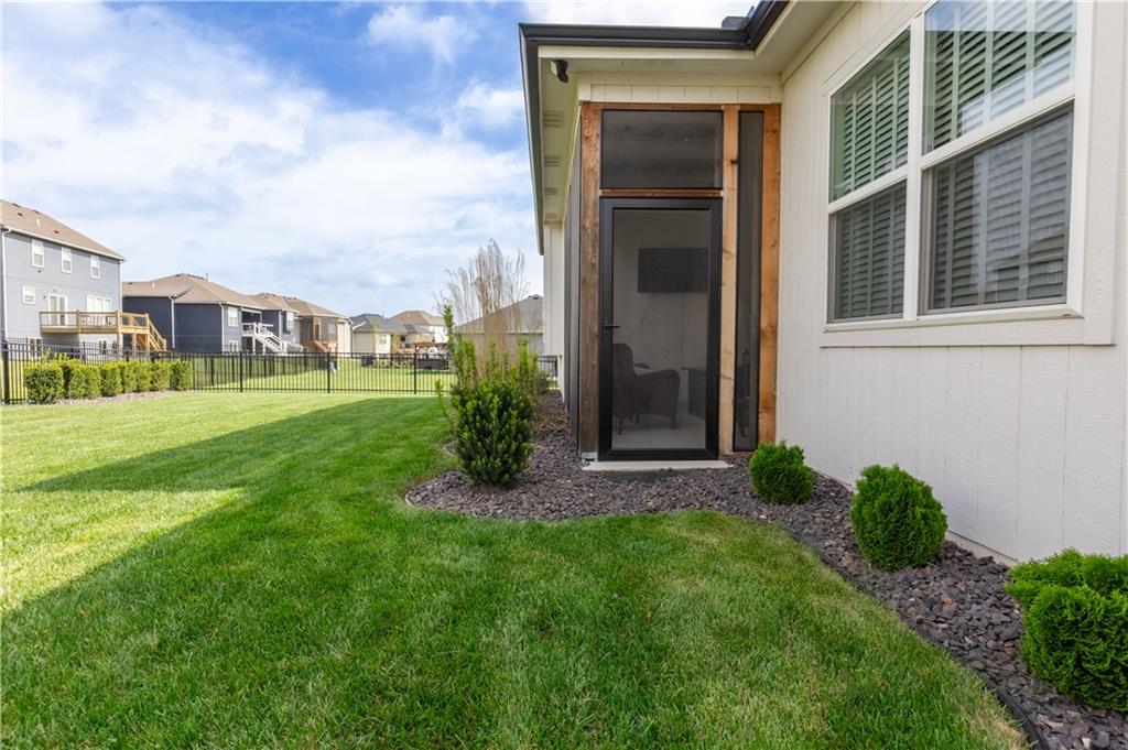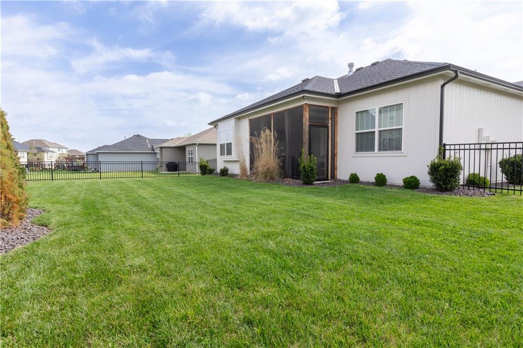 Live where it feels like a getaway every day. Just 5 minutes from Lake Olathe Park, this beautifully maintained 4-bedroom, 3-bath home delivers the perfect balance of outdoor lifestyle, modern comfort, and everyday convenience. Why wait on new construction when this home is already better than new—complete with upgrades, finished spaces, and outdoor living features you won’t get starting from scratch? Located in a community where current phases are sold out, this is a rare opportunity to own now without the wait, with future expansion in the area—including planned golf course lots—adding long-term appeal and desirability to the location. Even better, this is a fully detached home with no shared walls—offering true privacy, space, and the comfort of standalone living. A 3-car garage provides excellent storage and flexibility for vehicles, hobbies, or recreational gear, while the home’s exterior showcases a level of care and intention rarely found in new builds. Thoughtfully designed raised landscape beds and long-term ground cover create a mature, finished look that continues to improve over time. The fully fenced backyard enhances both privacy and usability, while the overall landscaping delivers a clean, cohesive aesthetic that feels both established and low-maintenance. Outdoor living is elevated further with a screened-in covered patio, creating a true extension of the home—perfect for year-round enjoyment, morning coffee, relaxing evenings, and effortless entertaining. Inside, the home continues to impress, but the standout feature is the finished basement, designed with a level of detail and customization that sets it apart. Featuring a custom trim package, butcher block countertops, tile accents, and unique transom detailing, the space feels warm, intentional, and highly functional.