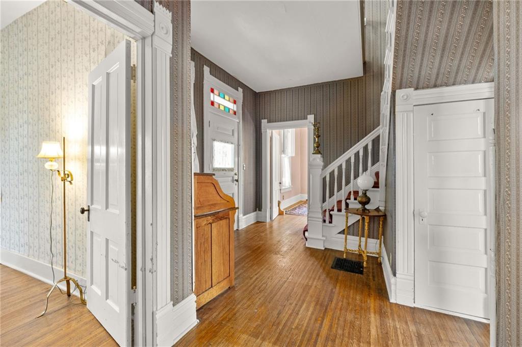 Step into timeless elegance with this beautifully preserved historic home, where character and craftsmanship shine at every turn. From the moment you arrive, the inviting large front porch welcomes you—perfect for relaxing mornings or evening gatherings. Inside, you’ll find soaring tall ceilings, expansive windows that flood the home with natural light, and stunning original woodworking throughout. Rich details like stained glass windows, transom windows, and original built-ins highlight the home’s authentic charm, while classic fixtures add to its warm, nostalgic feel. This spacious home features four bedrooms and one and a half baths, including a charming clawfoot tub that adds a touch of vintage luxury. A large sunroom at the back of the home offers the perfect space to unwind year-round. Situated on a desirable corner lot, the property boasts a generous backyard filled with character—featuring original brick from Pine Street, five varieties of rose bushes, beautiful hydrangeas, mature fruit trees, and stately pine trees. A detached rear garage provides additional convenience and storage. Ideally located near the University of Central Missouri and Whiteman Air Force Base, this home offers both historic charm and modern-day accessibility. With its abundance of original features and unique details, this one-of-a-kind property is truly a rare find.