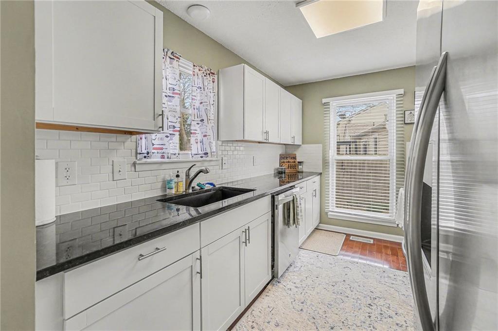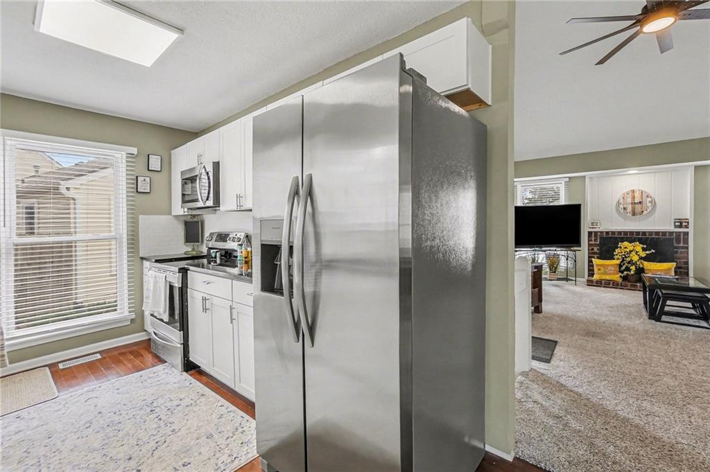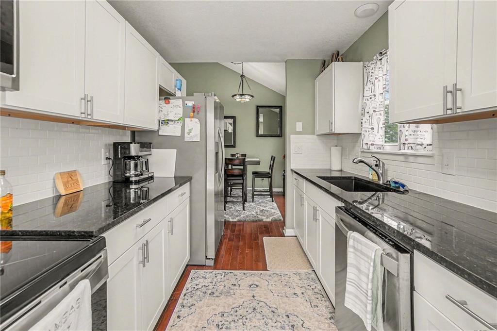 Welcome home to this beautifully updated townhome in Barrybrooke! Soaring vaulted ceilings with exposed beam detail and a stunning brick fireplace set the tone for this warm, inviting space. The renovated kitchen (2022) shines with white shaker cabinets, dark countertops, subway tile backsplash, and stainless steel appliances — all appliances convey, washer & dryer included, and seller is open to leaving the property fully furnished! The primary bath was also refreshed in 2022, and three spacious bedrooms round out the upper level. Outside, a private backyard retreat awaits with a new wood privacy fence, concrete patio, and beautifully landscaped garden beds. The full unfinished basement offers endless potential — radon mitigation system already in place. Detached 2-car garage adds generous extra storage. The HOA maintains the exterior structure and roof, keeping homeowner's insurance costs low — and no snow shoveling or lawn mowing required. Low-maintenance living in the Park Hill School District!