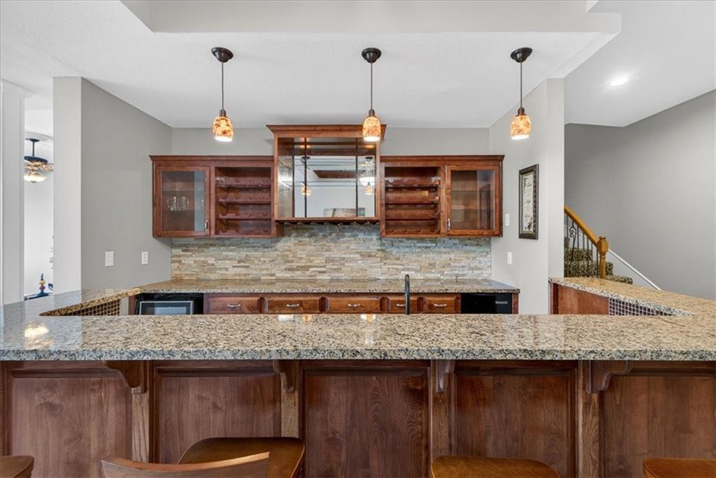 Ideally positioned on a quiet cul-de-sac, this exceptional 2-story home backs to a treed backyard & overlooks the fairway of award-winning Shadow Glen Golf Course, offering a setting that feels both private and picturesque. Located at 26418 W 109th Terrace in Olathe, this 5-bedroom, 4.5-bath residence blends timeless design, generous living spaces, & scenic golf course views in one of the area’s most sought-after communities. Beautifully finished hardwood floors flow throughout the home, while a dramatic curved staircase w/iron spindles adds elegance & character. The main level offers a private office, spacious gathering areas, & a hearth room centered on a floor-to-ceiling stone fireplace that adds warmth & visual impact. The recently remodeled kitchen (2024) is designed for both daily living & entertaining, complete w/quartz countertops, stainless steel appliances, a large center island, and seamless flow into the surrounding living spaces. Upstairs, the expansive primary suite is a true retreat, thoughtfully positioned to overlook the treed backyard and scenic views of Hole #12. The spa-like primary bath enhances the sense of comfort and luxury, while the secondary bedrooms are generously sized & offer plenty of space to spread out. A second-level laundry room adds everyday convenience, making the upper level as functional as it is inviting. The walkout lower level is filled w/natural light from floor-to-ceiling windows & offers an impressive extension of the home’s living space, including a large rec room, full bar, private 5th bedroom, & full bath, perfect for guests & entertaining. Outdoor living is equally captivating, w/two decks positioned to take in the peaceful treed backdrop & sweeping fairway views. As part of the highly desirable Cedar Creek community, residents enjoy access to exceptional amenities, including swimming pools, lighted tennis courts, walking trails, a clubhouse, & an indoor gymnasium. This is a rare opportunity to own a golf course home