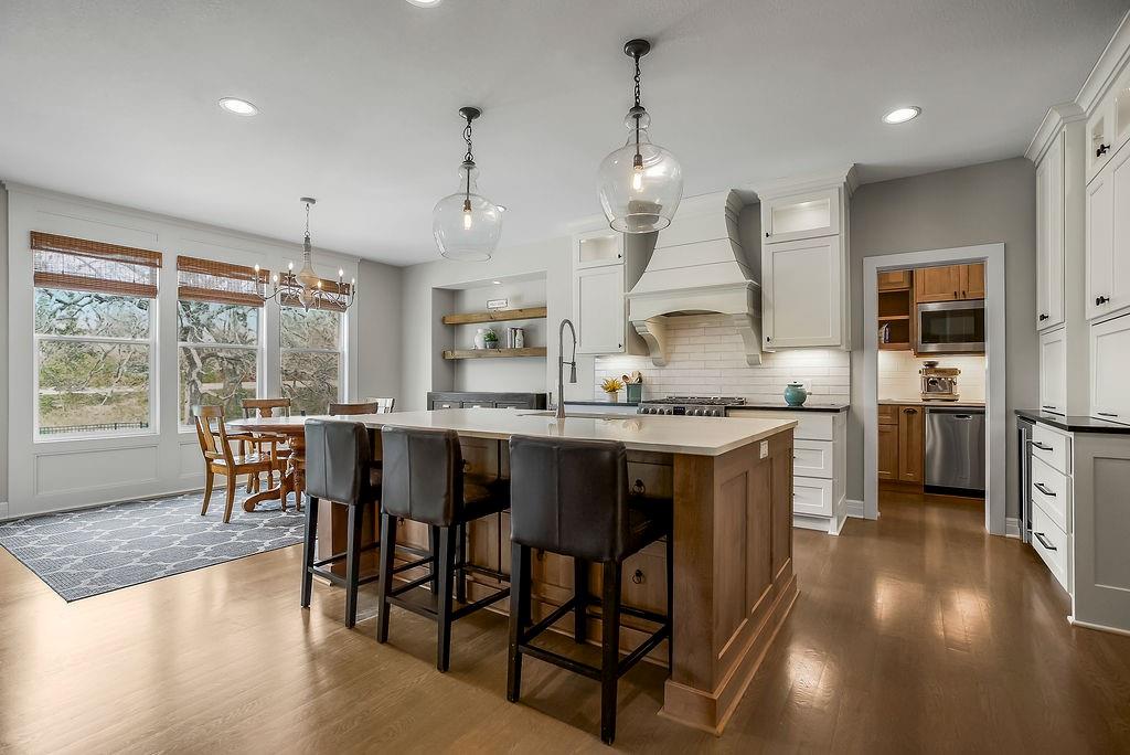 Tucked away at the end of a quiet cul-de-sac, this beautifully maintained home sits on approximately .75 acres and offers the perfect blend of privacy, space, and convenience. A long private driveway welcomes you in, setting the tone for this serene retreat just minutes from highways, shopping, and dining. Surrounded by mature landscaping and established trees, the property offers a peaceful, park-like setting. Enjoy catching fish in the pond, and creating a scenic backdrop for added outdoor enjoyment just steps from your home. Inside this custom built home, you’ll find thoughtfully selected, high-quality materials and modern updates throughout, giving the home a fresh yet timeless feel. The layout is both functional and inviting, ideal for everyday living and entertaining alike. At the heart of the home, the gourmet kitchen is designed to impress, featuring high-end finishes, ample workspace, and a seamless flow for both everyday living and entertaining. A spacious butler’s pantry adds an extra layer of functionality and elegance—perfect for additional prep space, storage, and effortless hosting. The finished basement is a standout feature, complete with custom built-in bunk beds—perfect for guests, kids, or creating a fun and memorable space. Step outside to your private backyard oasis featuring a pool and plenty of room to relax or entertain, all while enjoying the privacy and beauty of the expansive lot. Located in the highly sought-after, award-winning Blue Valley School District, this home truly checks every box—offering space, style, and an unbeatable setting in one exceptional property.