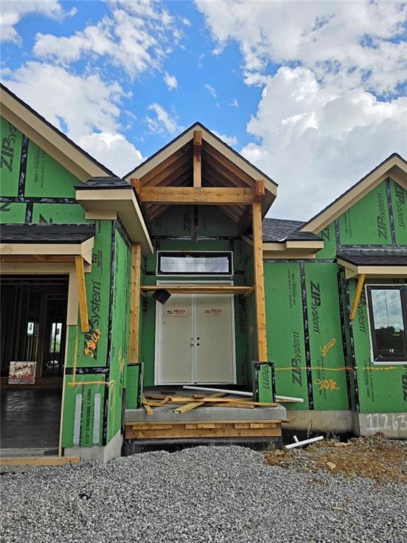 Hilmann Home Building is showcasing their exceptional Newport, reverse 1.5 story plan, in Prairie Canyon - Johnson County's newest maintenance-provided community conveniently located just west of Highway 7 off of College Blvd. Fall in love with this gorgeous home, backing east to greenspace with long valley vista views. Upon entering this home through upgraded French doors, you will find a grand entry with 12 foot ceilings and tons of natural light/walls of windows on the back of this open-concept home. Make your way into the heart of the home and find a huge family room with built in cabinets, floating shelves, and a gas fireplace. Next you will find the kitchen of your dreams - custom cabinets, large kitchen island, gas cooktop, quartz counters, enormous walk-in, butler's pantry with coffee bar and frosted glass door, gooseneck faucet, slow close drawers/doors...all the bells and whistles you have been looking for! You'll find hardwoods throughout the living room, dining room, kitchen and pantry, and 8 foot doors. Custom trim detail and design making this home feel perfectly elevated. Escape to the primary suite and find a spacious bedroom with luxurious, spa-like ensuite, attached to a huge walk-in closet with pull downs for off-season storage. You'll love the functionality of this layout as the laundry room (built-ins/tile floors) is attached to the primary closet. Another bedroom/office with full bath round out the main floor of this home. Head down to the lower level on the u-shaped staircase with designer stair carpet. Downstairs you will find a sizeable rec room with fantastic wet bar, linear electric fireplace with stone, 2 bedrooms, jack and jill bathroom and an additional half bath. Prairie Canyon is maintenance provided and allows fences! Now your time is your own! Come out and take a look at this home on this beautiful property!