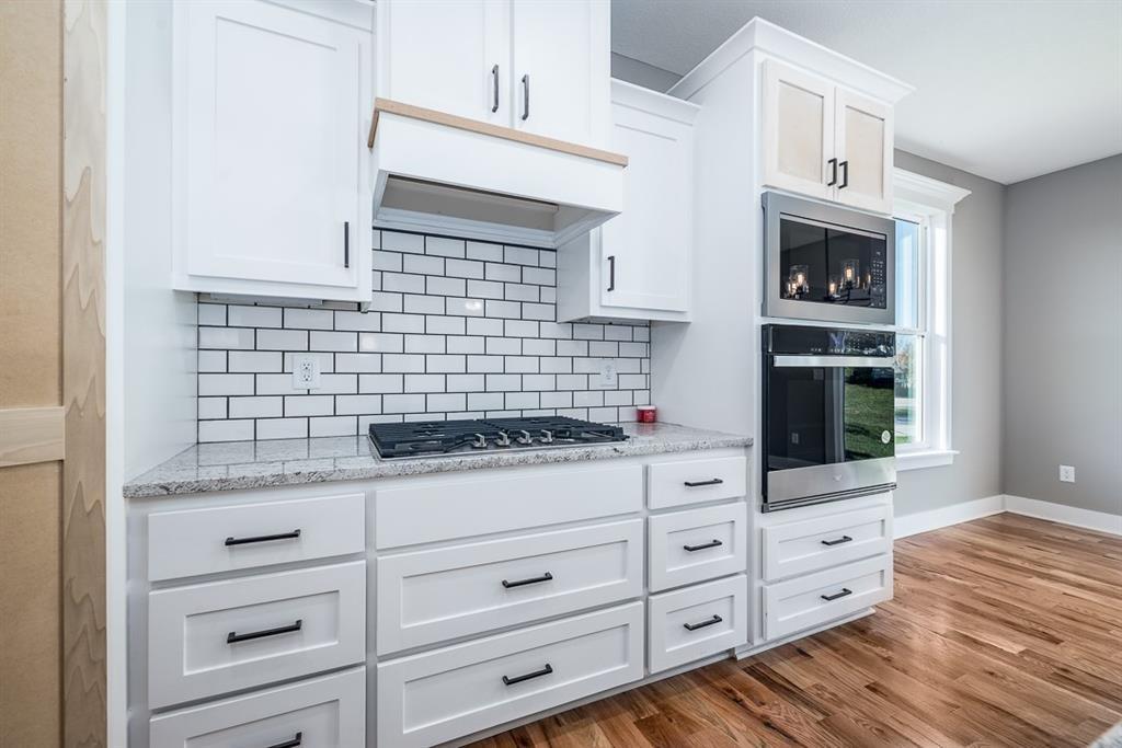 Welcome to The Cynthia, where modern design meets everyday luxury. This stunning 5-bedroom, 4.5-bath home offers a thoughtfully designed 1.5-story layout with high-end finishes throughout. The main level features an open-concept living area with soaring vaulted ceilings and a cozy fireplace—perfect for both entertaining and relaxing. The gourmet kitchen is a true centerpiece, showcasing a large island, granite countertops, gas cooktop, vented hood, built-in wall oven and microwave, dishwasher, and a spacious walk-in pantry. Retreat to the main-level primary suite with a private bath and oversized walk-in closet. A second main-floor guest suite also offers its own private bath and walk-in closet—ideal for visitors or multi-generational living. Upstairs, you’ll find three additional generously sized bedrooms and a full bath with double vanities. Unwind in the evenings on the covered patio and enjoy all the comfort and style this exceptional home has to offer. Home is currently in the permit stage with an estimated completion of November/December 2026. Photos are of a previously built home and may include upgrades, finishes will vary. Seller is a licensed agent in KS and MO.