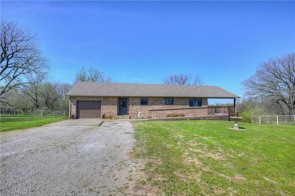 Follow paved roads to this peaceful country homestead & farm near Girard, KS. Over 13 acres with expansive out buildings/shops, piped fencing and room to spread out and enjoy the beauty of nature and abundant wildlife! The 3 bedroom/1.5 bath home boasts an open concept living/dining and kitchen area. A separate spacious family room features beautiful window light and leads to a lower level bedroom that also serves as a safe-room/storm shelter below ground level. Primary bedroom features a huge walk-in closet while bathroom provides a spacious walk-in style shower. The living and dining room areas open to a huge covered deck area that provides a scenic view to enjoy! A ramp wraps around to front of home for ease of entrance & exit to deck area. Steps from the home sits a 120 x 50 ft shop with concrete floors, heat & air, electricity, restroom and multiple overhead doors. For livestock or utility storage, there is also a 40 x 60 building and cattle shed and waterers, plus pipe-fenced pasture! This exclusive location provides privacy and practicality, and allows for profitability, as well! Set your private tour right away!