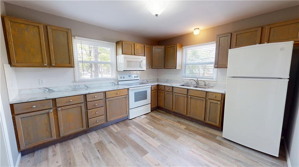 Step into this beautifully updated 2-bedroom, 1-bathroom home with the convenience of a private carport. Inside, the home shines with luxury vinyl plank flooring and sleek, fresh modern countertops that give the space a contemporary, high-end feel. The kitchen comes fully equipped with a stove, refrigerator, and microwave, ensuring a seamless move-in experience. Designed for a low-maintenance lifestyle, the rent also includes lawn care and trash service.