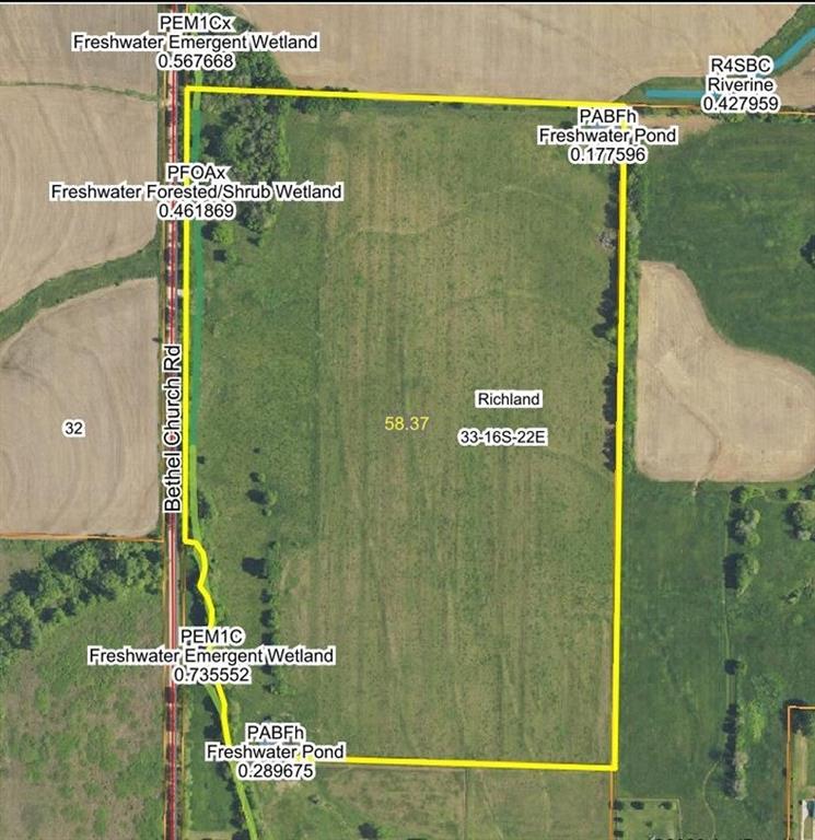 58 acre cattle pasture featuring natural beauty in an excellent location Northwest of Paola. This property is conveniently located just 1/2 of a mile South of K-68 Hwy and slightly North of the paved West 287th. Horizontal frontage situated in between both of these paved roads, and only 10 minutes from Hillsdale Lake and Kansas State Park! Enjoy the convenience of the beautiful Hillsdale fishing and wildlife area, horse trails and campgrounds, shooting range, and Jayhawk Marina. Tight, young 5-strand on perimeter, as well as cross-fenced in approximately half, for 2 pastures of roughly 29 acres each with a pond in each pasture. Steel pipe gates have been strategically placed in the center of all 4 sides of the perimeter fencing. Perfect for cattle grazing pasture land and/or a new homesite would sit well on the gentle elevation towards the West and center of the property. With Turkey Creek running along the road and the Northwestern corner of the property having just enough fresh water and cover, this property is also known for bringing in wildlife. Surrounding properties are mostly crop fields currently. You'll be proud to pull up to this extra wide entrance and open your steel pipe gate onto the property you just made yours!