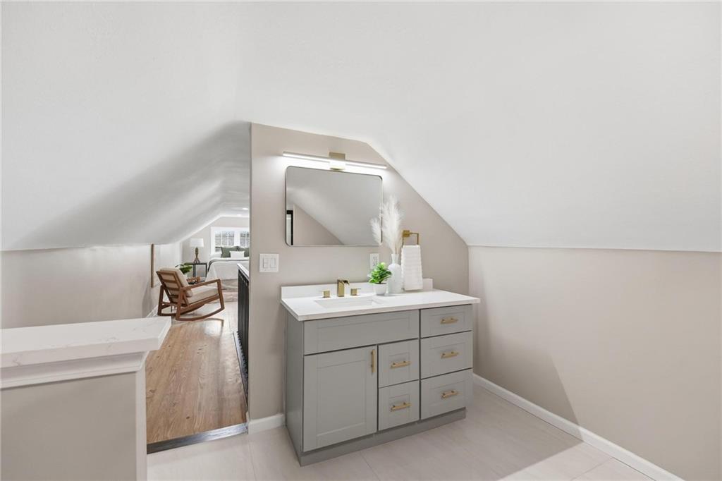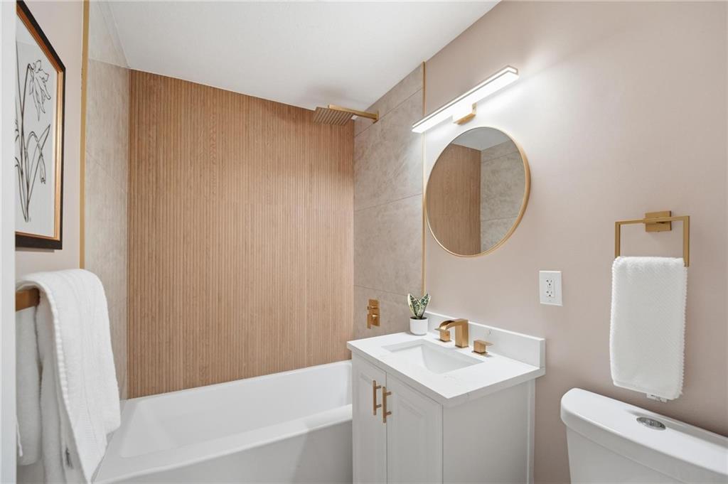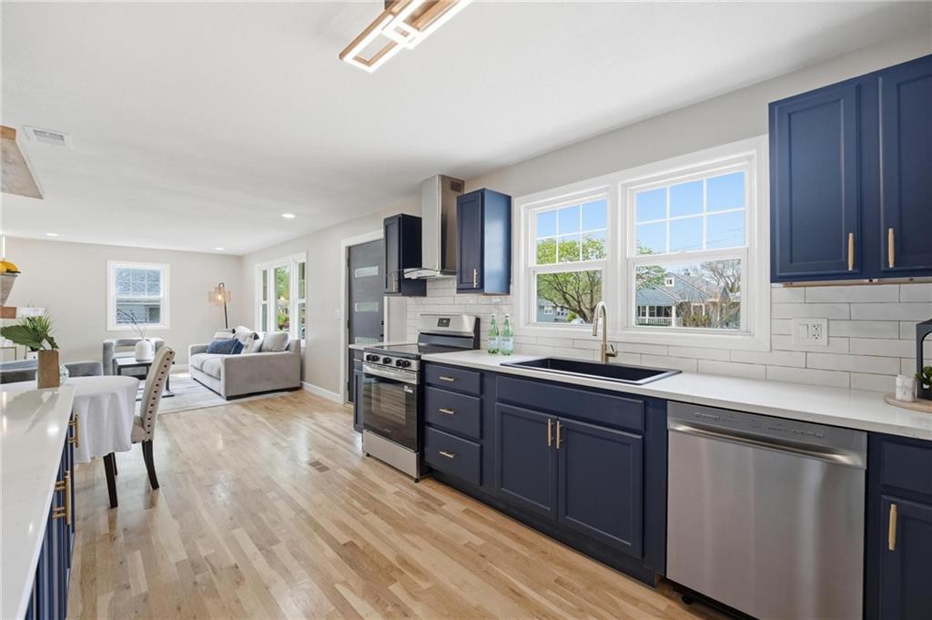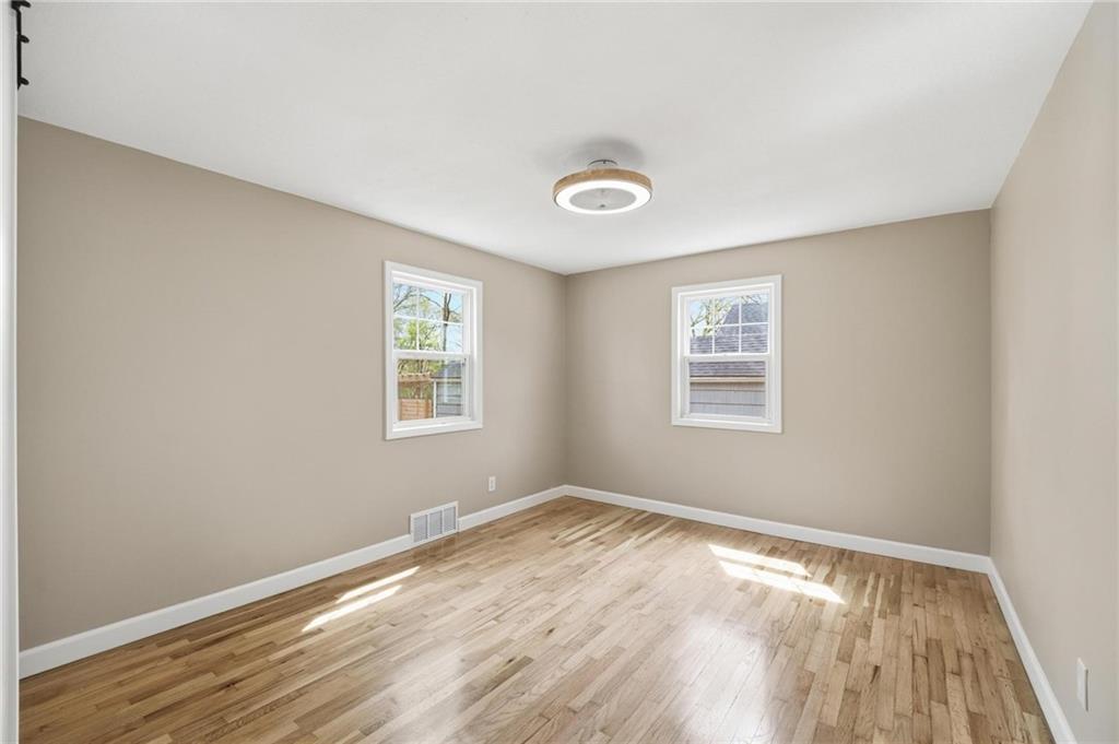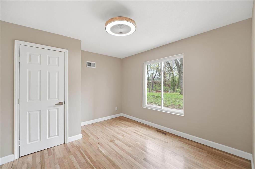 Fully renovated and move-in ready, this 3 bedroom, 2 bathroom home in Kansas City, Kansas delivers modern style and peace of mind on a spacious .30-acre lot. Step inside to an open-concept living area flooded with natural light, featuring refinished hardwood floors, fresh paint, and sleek modern lighting that creates a warm, welcoming feel. The stunning kitchen showcases navy cabinetry, quartz countertops, brushed gold hardware, floating wood shelves, stainless steel appliances, and a large single-basin sink overlooking the front yard. The private primary suite offers a beautifully updated bathroom with custom tile, contemporary fixtures, and a clean designer look. Additional updates include brand new vinyl siding, new gutters, new HVAC, and a new water heater, giving you confidence for years to come. Outside, the oversized two-car garage, expanded driveway, and deep lot provide plenty of parking, storage, and outdoor living potential. All of this is offered at just $275,000—schedule your showing and see how 2849 N 48th Terrace checks every box.