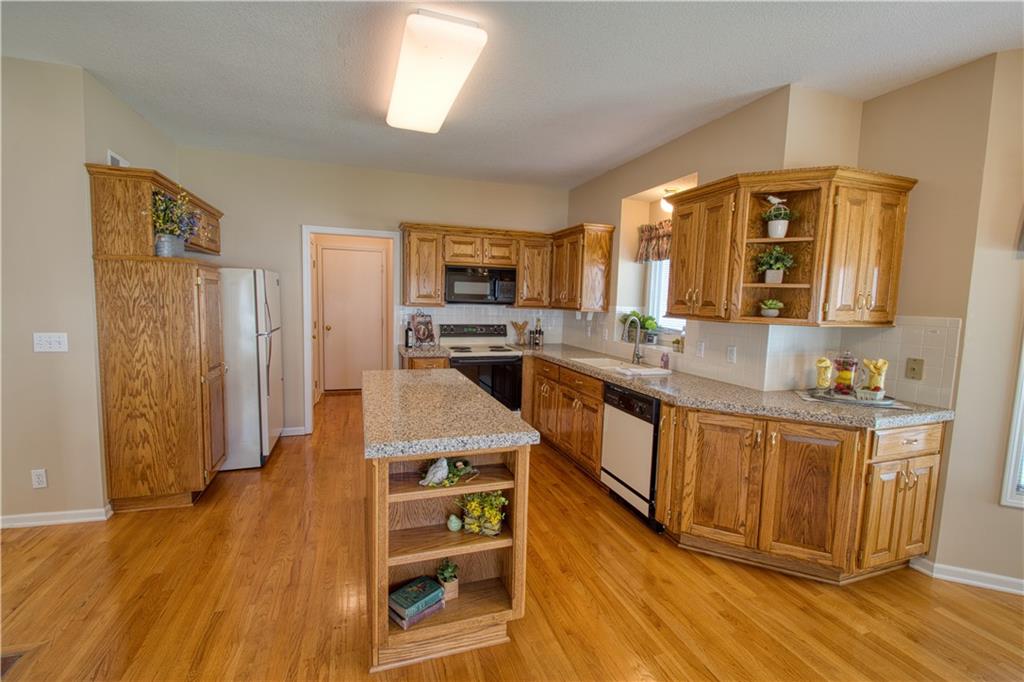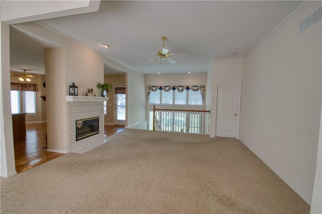 Beautiful 3-bedroom, 3.5-bath patio/villa home situated on a desirable corner lot in Leawood! This home offers an open floor plan with a main-level primary suite for convenient living, with a second bedroom on the main level. The primary suite features tile flooring in the bathroom and a relaxing soaking tub. The kitchen features hardwood floors, granite countertops, and a center island, opening seamlessly to the main living area, perfect for entertaining. A double-sided gas fireplace sits between the Hearth Room and Living Room. Step outside to a composite deck overlooking a lush yard. The finished walk-up basement includes an additional bedroom, bathroom, spacious family room, and ample storage. Two-car garage completes the home. Laundry is on the main level. This property offers incredible potential to make it your own in a highly sought-after location.