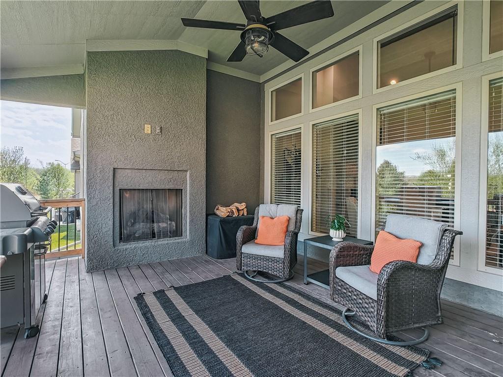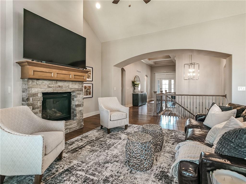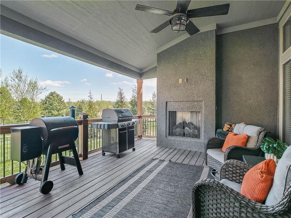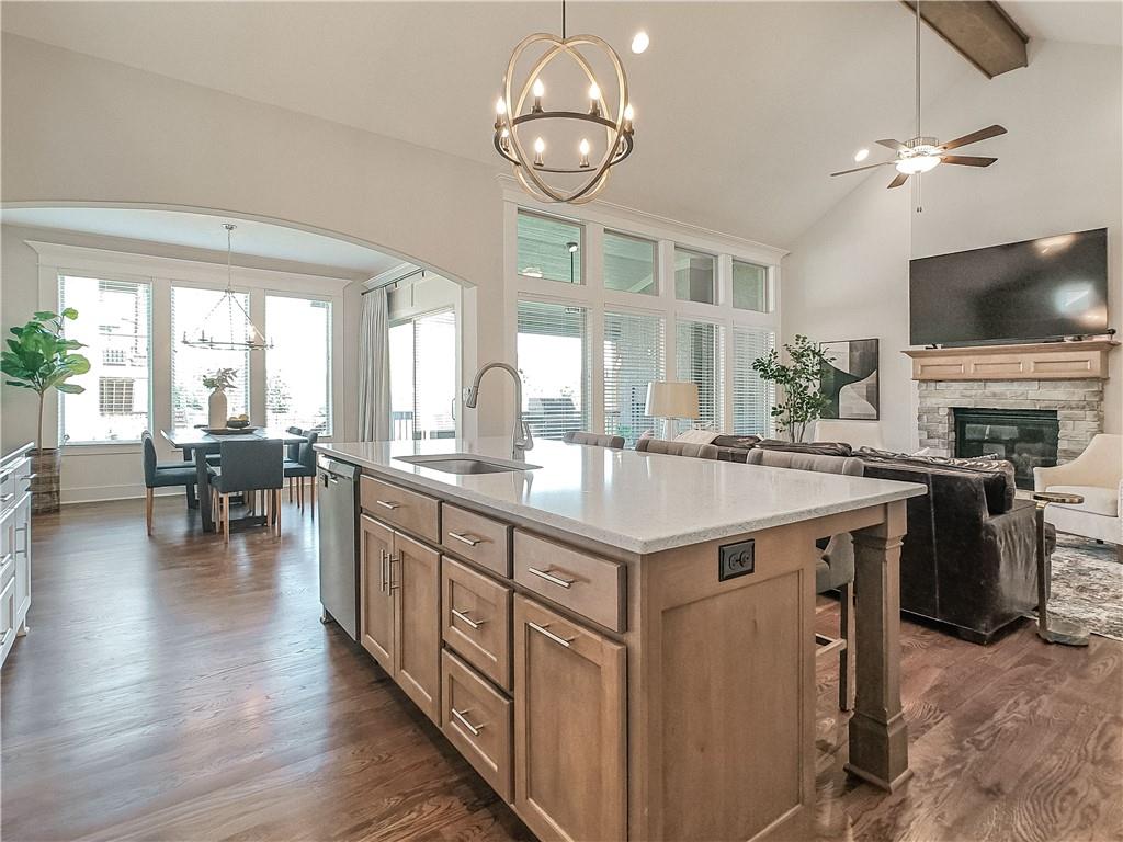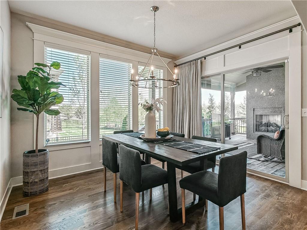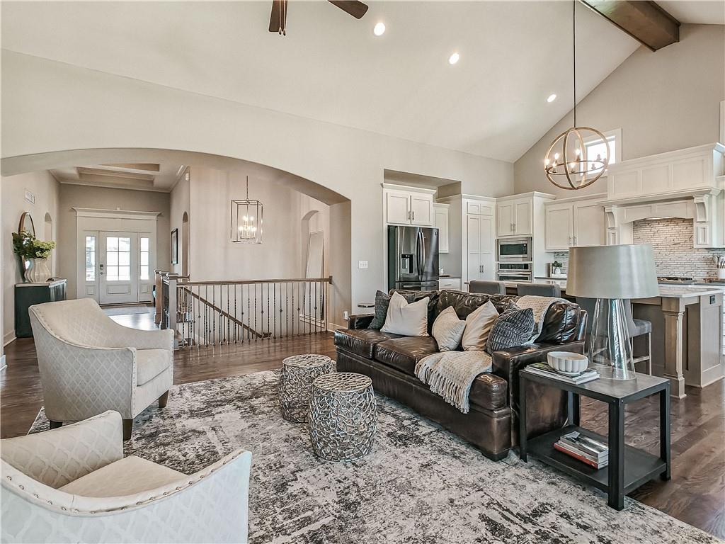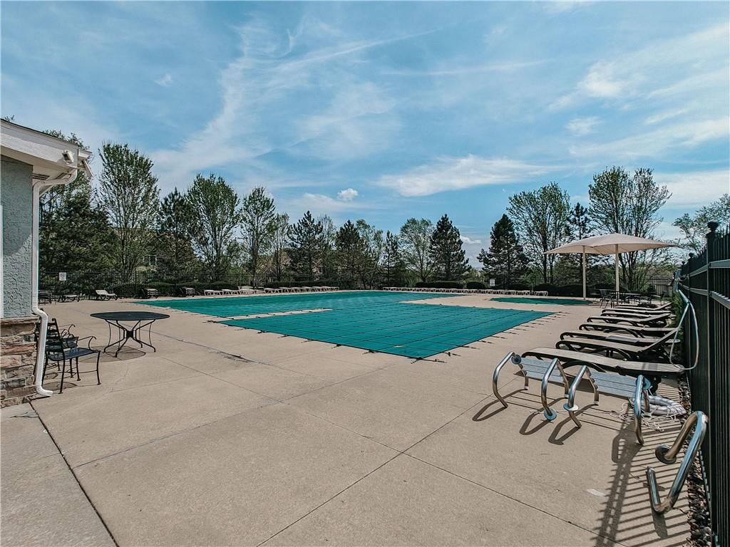 Luxury, low-maintenance villa living in the heart of Leawood, with easy access to premier shopping, dining, major highways and award-winning Blue Valley schools. Lightly lived-in and meticulously maintained, this home offers an exceptional blend of style, comfort and everyday ease. From the moment you enter, thoughtful architectural details set the tone — arched entryways, iron spindles, expansive windows, rich hardwood floors, and exposed beam ceilings in the great room and primary suite create a warm, airy feel. The main living space is both inviting and impressive, designed for effortless daily living and easy entertaining. The open-concept kitchen is as functional as it is beautiful, featuring granite countertops, a breakfast island, gas cooktop with vented hood, and a generous pantry. It flows seamlessly to the northeast-facing covered lanai with an outdoor fireplace — an ideal setting for year-round gatherings or quiet evenings at home. Granite countertops continue throughout all bathrooms. The main-level primary suite offers a peaceful retreat with backyard views, vaulted ceilings, a zero-entry shower, a spacious walk-in closet, and easy access to the laundry room. The daylight lower level expands the living space with a large recreation room, custom bar area, and fourth bedroom, offering flexibility for guests, entertaining or everyday use. Tasteful, timeless finishes include updated lighting and plumbing fixtures, granite countertops, and a neutral color palette throughout. Additional features include invisible pet fencing and a SimpliSafe security system. The HOA enhances the lifestyle even further, covering lawn maintenance, landscaping and snow removal, along with access to exceptional amenities including a swimming pool, clubhouse with exercise room, stocked pond, and sport courts for tennis and basketball. Enjoy true lock-and-leave living in one of Leawood’s most desirable communities, where elevated design meets effortless convenience.