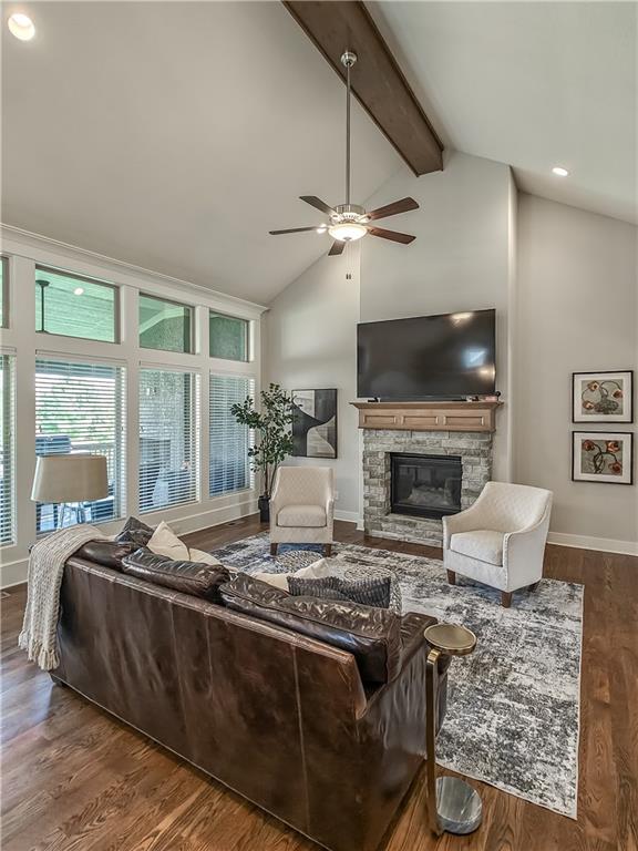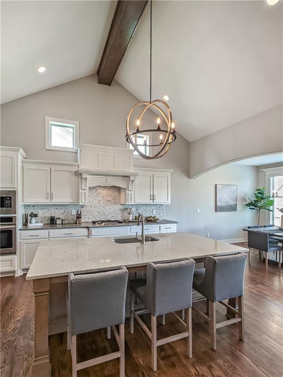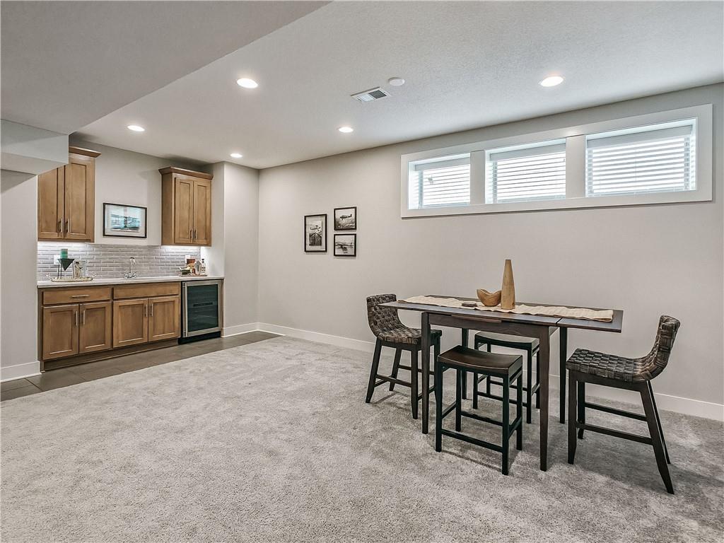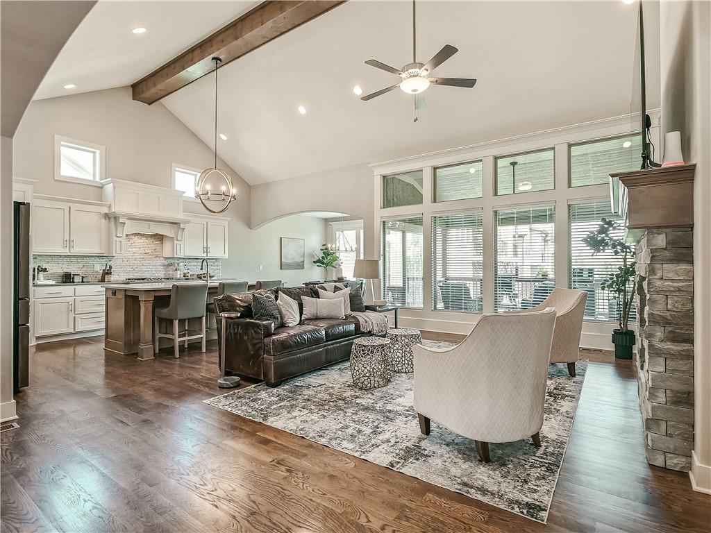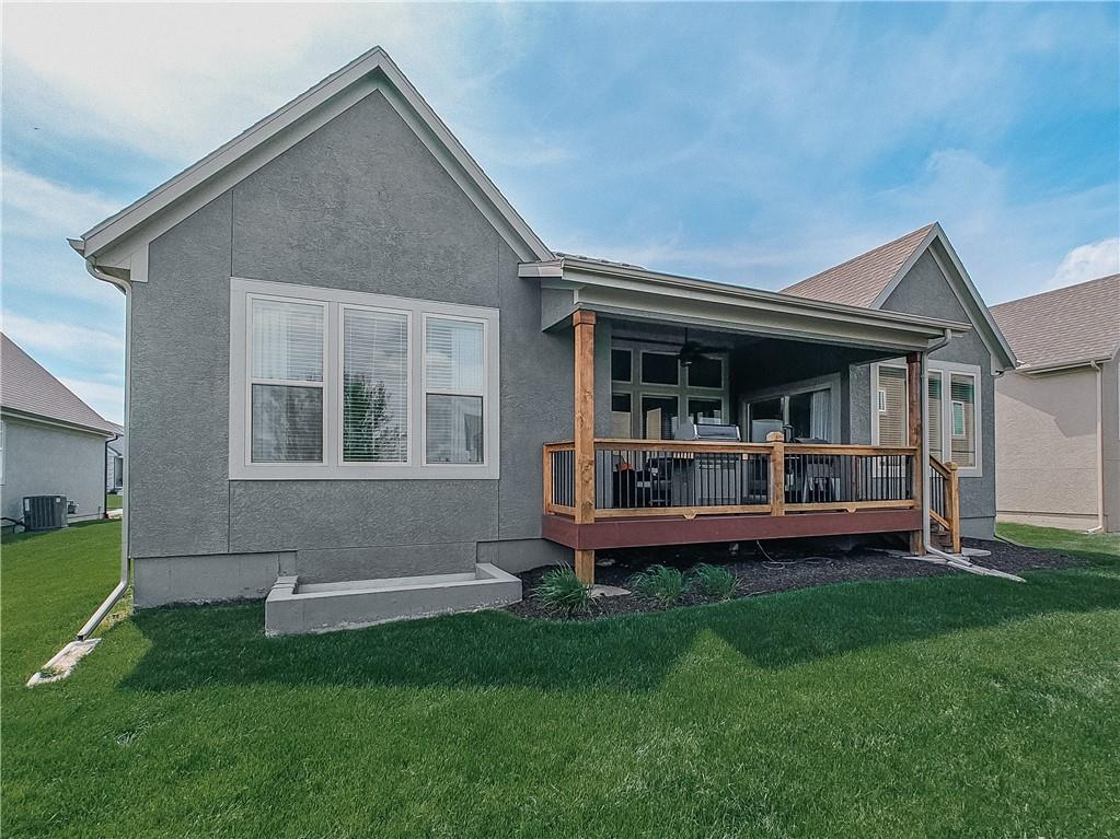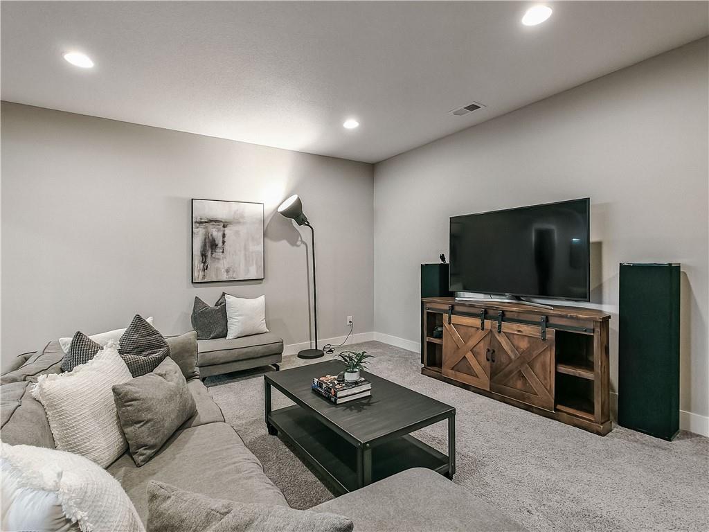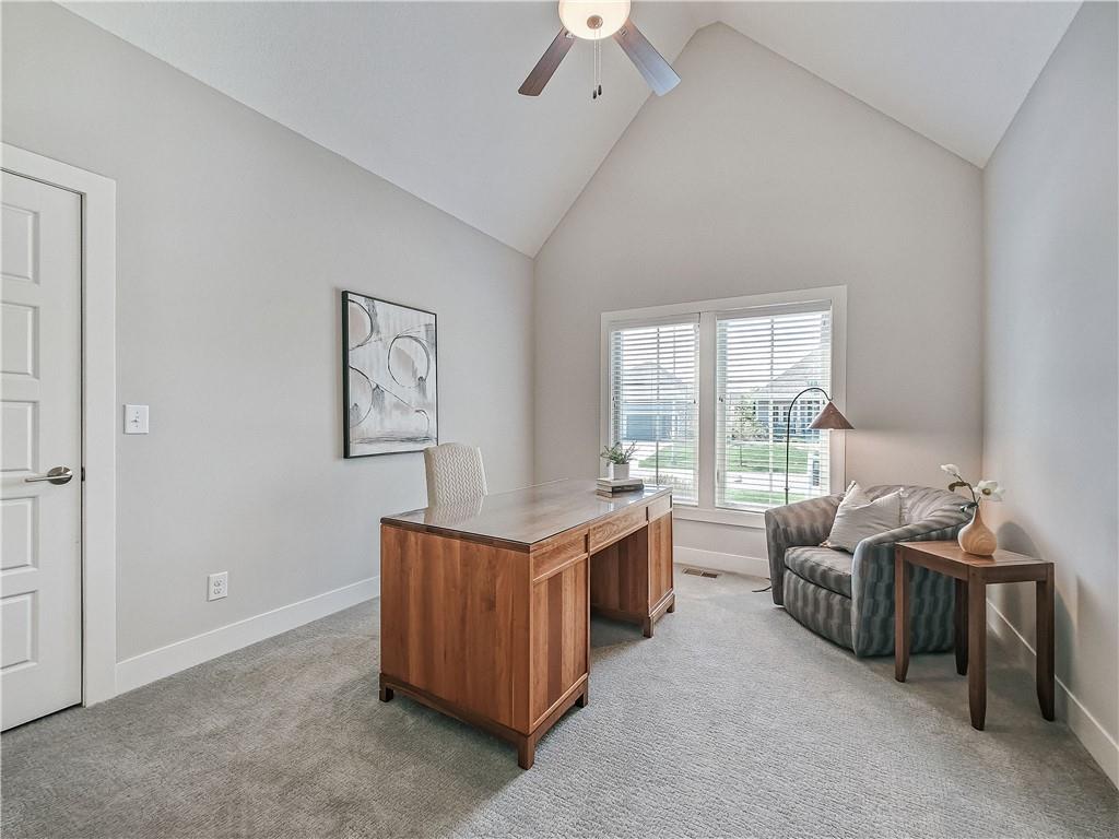 Luxury, low-maintenance villa living in the heart of Leawood, with easy access to premier shopping, dining, major highways and award-winning Blue Valley schools. Lightly lived-in and meticulously maintained, this home offers an exceptional blend of style, comfort and everyday ease. From the moment you enter, thoughtful architectural details set the tone — arched entryways, iron spindles, expansive windows, rich hardwood floors, and exposed beam ceilings in the great room and primary suite create a warm, airy feel. The main living space is both inviting and impressive, designed for effortless daily living and easy entertaining. The open-concept kitchen is as functional as it is beautiful, featuring granite countertops, a breakfast island, gas cooktop with vented hood, and a generous pantry. It flows seamlessly to the northeast-facing covered lanai with an outdoor fireplace — an ideal setting for year-round gatherings or quiet evenings at home. Granite countertops continue throughout all bathrooms. The main-level primary suite offers a peaceful retreat with backyard views, vaulted ceilings, a zero-entry shower, a spacious walk-in closet, and easy access to the laundry room. The daylight lower level expands the living space with a large recreation room, custom bar area, and fourth bedroom, offering flexibility for guests, entertaining or everyday use. Tasteful, timeless finishes include updated lighting and plumbing fixtures, granite countertops, and a neutral color palette throughout. Additional features include invisible pet fencing and a SimpliSafe security system. The HOA enhances the lifestyle even further, covering lawn maintenance, landscaping and snow removal, along with access to exceptional amenities including a swimming pool, clubhouse with exercise room, stocked pond, and sport courts for tennis and basketball. Enjoy true lock-and-leave living in one of Leawood’s most desirable communities, where elevated design meets effortless convenience.