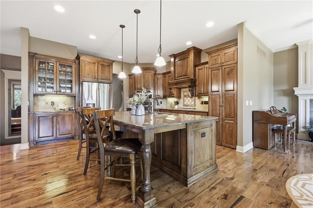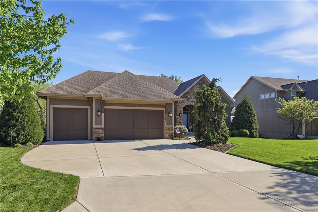 Don’t miss this beautifully maintained home designed for both everyday living and exceptional entertaining. Every bedroom features its own full bathroom, offering comfort and privacy for family and guests alike. The heart of the home is the stunning kitchen, complete with stained wood cabinetry, stone countertops, stainless steel appliances, a large island, and a walk-in pantry. The open layout flows seamlessly to the screened-in deck, where you’ll find a see-through fireplace with space for a TV—perfect for cozy evenings or hosting friends. The main level also offers a versatile second bedroom or office, along with an oversized laundry room for added convenience. The spacious primary suite is a true retreat, featuring a tray ceiling, private deck access, a large walk-in closet, and a luxurious en-suite bathroom with a soaking tub, separate shower, and double vanity with ample storage. Downstairs, the finished walkout basement is built for entertaining, complete with a fireplace, game room area, and a wet bar with stained cabinetry, sink, and dishwasher. Two additional bedrooms and two full bathrooms provide even more living space. Step outside to enjoy the extended patio, thoughtfully designed with an outdoor kitchen area, fire pit, and beautifully finished ceiling detail over the covered patio. The backyard also features professional landscaping and a tranquil water feature. The home is even prepped for a hot tub hookup. Car enthusiasts and hobbyists will appreciate the oversized three-car garage with a staircase leading directly to the basement. This home has been exceptionally cared for and is truly move-in ready—an incredible opportunity for its next owner.