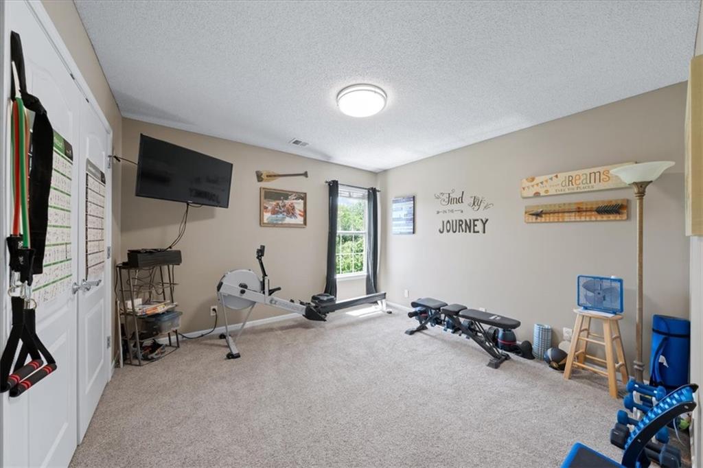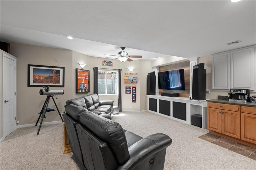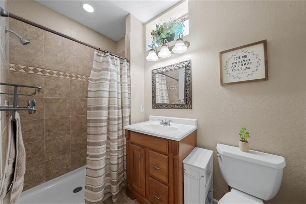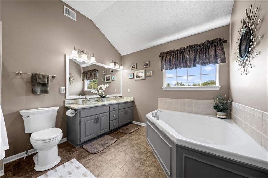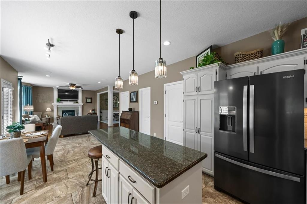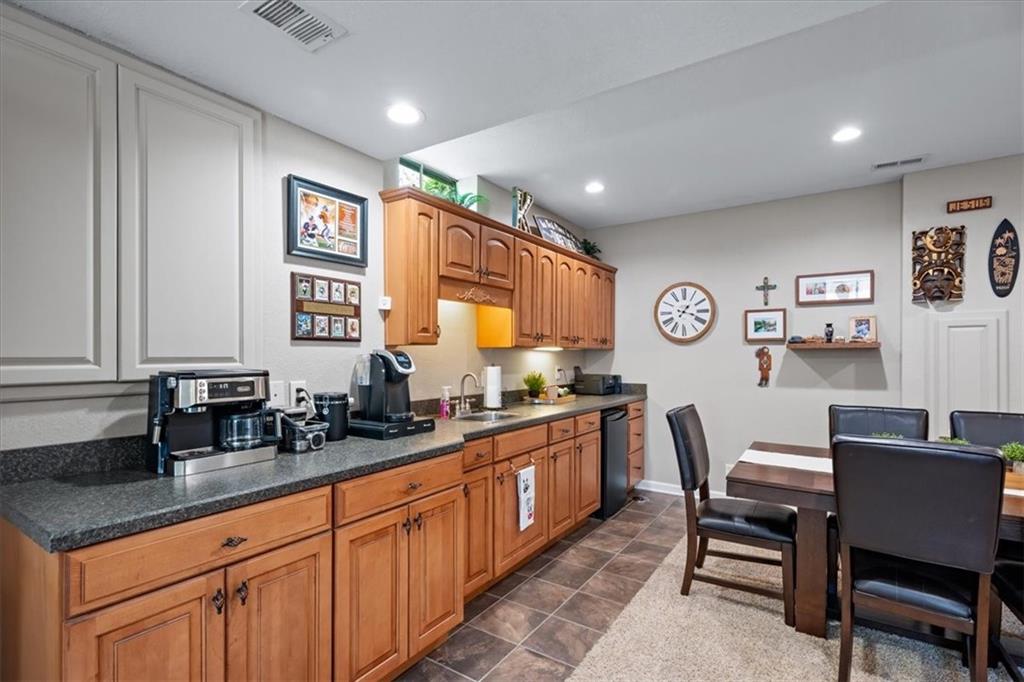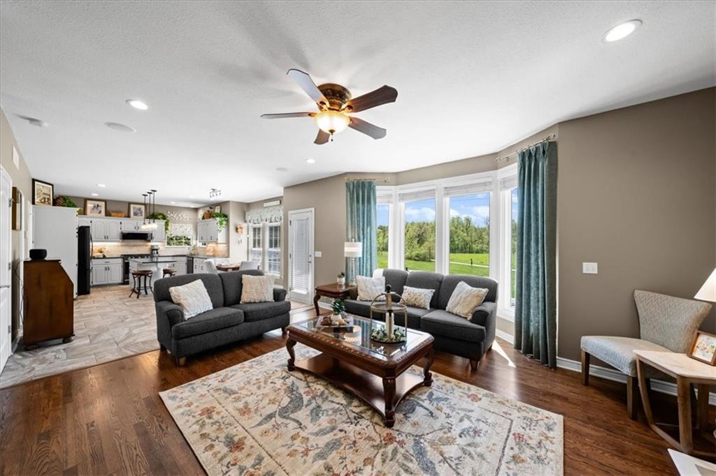 PRISTINE ONE OWNER HOME! This is a move-in ready home with 4–5 bedrooms, 4½-baths offers 3,160 square feet of refined living in the sought-after DeSoto School District. The main level features an open layout with hardwood floors in the family room and dining area. Kitchen includes updated cabinets, granite countertops, whirlpool appliances and extended island with a spacious eating area. Upstairs has four spacious bedrooms, two with 10-foot ceilings, large lighted closets, and three full baths all connected by hardwoods. The finished basement is ideal for entertaining, featuring extensive cabinetry, a large media center, whole-house and outdoor audio wiring, and a flexible bedroom or study. Ceilings are extra high for a spacious feeling. The two-car garage includes an 11-foot ceiling, built-in workbench, and ample overhead storage, plus a 12×8 Tuff Shed in the backyard. Recently replaced roof and newly painted house. Heating and Air Conditioner replaced around 6 years ago. Outdoor living is the perfect retreat on the 17×32-foot deck with built-in island, grill, granite countertops, firepit, accent lighting, and an electric awning. Enjoy watching the wildlife as the large yard opens to a meadow and tree lined creek with access to the Johnson County Trail system, offering direct access to local schools and exceptional everyday enjoyment.