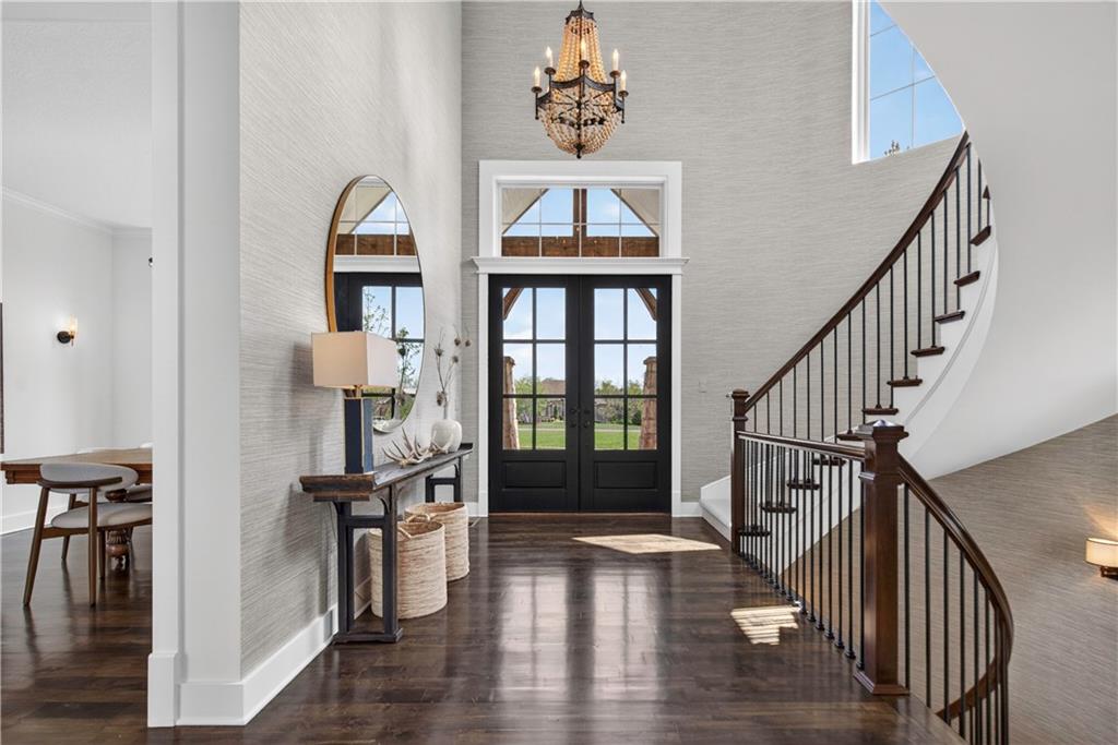 STUNNING POLO FIELDS 2-STORY—A TRUE ENTERTAINER’S DREAM IN BLUE VALLEY! Perfectly positioned in one of the area’s most sought-after communities, this exceptional residence blends refined finishes with a thoughtfully designed layout tailored for both everyday living and upscale entertaining. A striking see-thru fireplace anchors the formal living room and dramatic Great Room, where soaring ceilings and walls of windows flood the space with natural light. The chef’s kitchen is a showpiece—featuring a large center island, quartzite countertops, walk-in pantry and premium stainless steel appliances—all remaining. The adjoining breakfast area and private main floor office both open directly to the patio, creating seamless indoor-outdoor flow ideal for al fresco dining and gatherings. Retreat to the luxurious primary suite offering a spa-inspired bath with dual vanities, whirlpool tub, separate shower and an expansive walk-in closet with convenient access to the bedroom-level laundry. Three spacious secondary bedrooms each feature private en-suites and walk-in closets, delivering comfort and privacy for all. Finished lower level is designed to impress—complete with a media-ready family room with projection screen, an entertainer’s wet bar with oversized quartz topped island (hidden handles for tons of storage) and set up for ice machine and under counter mini-fridge, wine cellar (with cut-out ready for your chiller), fitness area, fifth bedroom and fifth full bath with walk-in shower and dry sauna. Step outside to your own private escape—featuring a stunning stone patio and firepit designed for evenings under the stars. Refined. Elevated. Unforgettable. This is luxury living—just minutes from everything--parks, premier shopping, dining and quick highway access. WELCOME TO YOUR DREAM HOME!