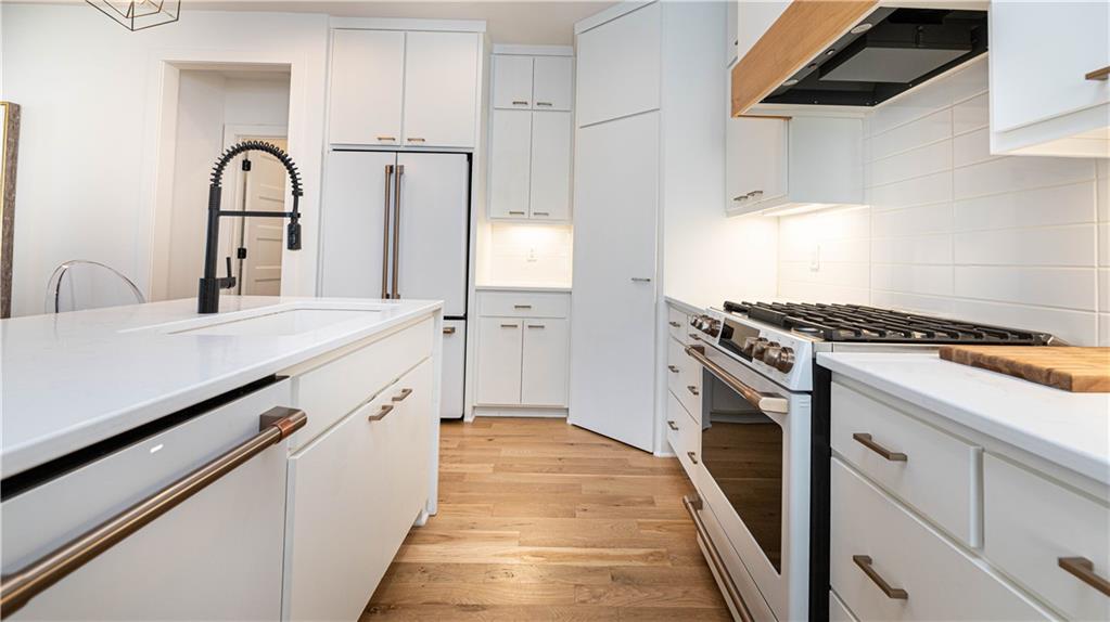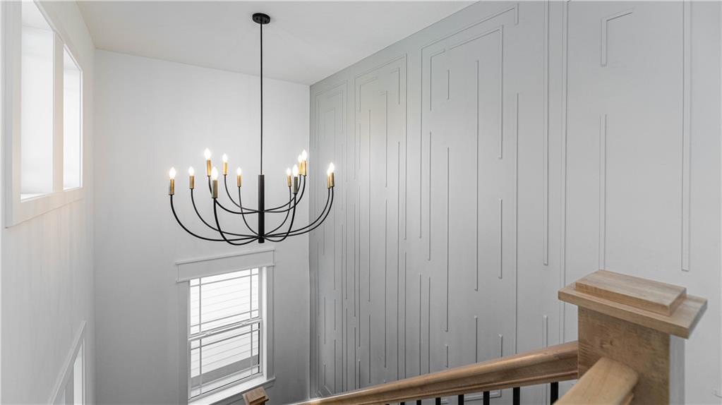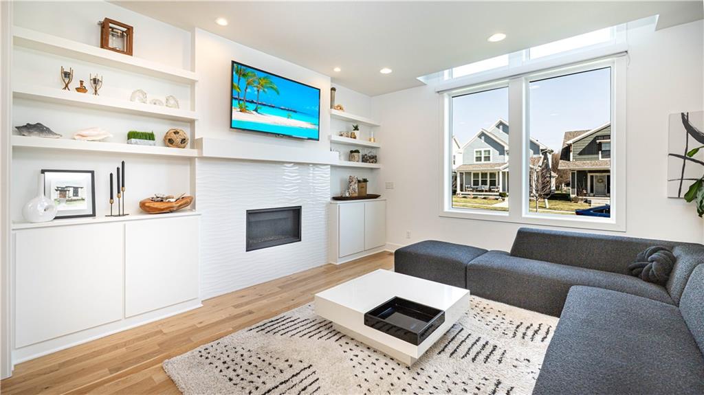 Step into this stunning, modern-chic residence offering 3 bedrooms, 2 full baths, and 1 half bath, thoughtfully designed with high-end upgrades throughout. At just five years young, this home truly stands out. From the moment you enter, you’re welcomed by an abundance of natural light streaming through dramatic two-story windows with motorized blinds. Wide-plank wood flooring flows seamlessly from the living room into the kitchen, creating a warm and inviting atmosphere. The living area features a striking fireplace flanked by custom built-in cabinetry, serving as a beautiful focal point. The kitchen is a chef’s dream, equipped with premium Café appliances, including a six-burner gas range, dishwasher, and a high-end refrigerator (originally valued at over $3,000), all included. Additional highlights include a gooseneck faucet, under-cabinet microwave, and upgraded soft-close cabinetry. You'll also find upgraded plantation blinds. Convenience meets functionality with a main-floor laundry room that also features a built-in desk. The main-level primary suite offers a true retreat, complete with a spa-inspired bathroom showcasing a spacious tiled shower with dual showerheads and double vanities. Upstairs, you’ll find a versatile second living area along with two generously sized bedrooms, each with ample closet space. The full, daylight unfinished basement provides endless possibilities and is already stubbed for a future full bathroom and also boasts a water softener. Completing the home is an attached two-car garage and a fenced side yard, adding both practicality and charm. This exceptional property combines modern style, comfort, and thoughtful upgrades. This neighborhood is home to a lake, swimming pool, playground and walking trails.