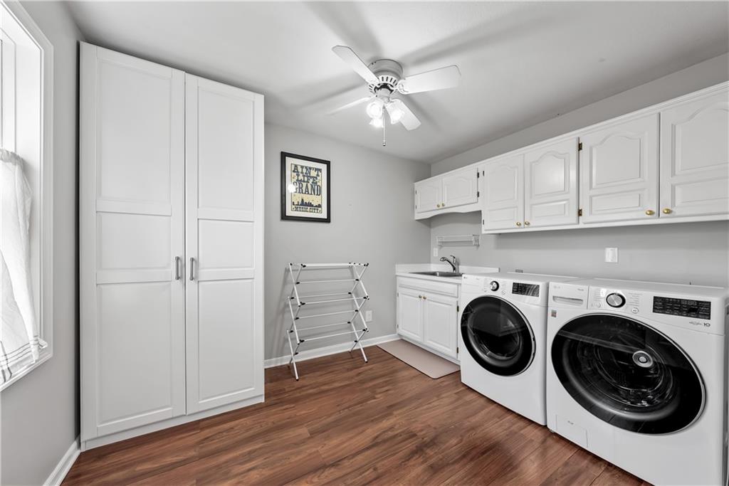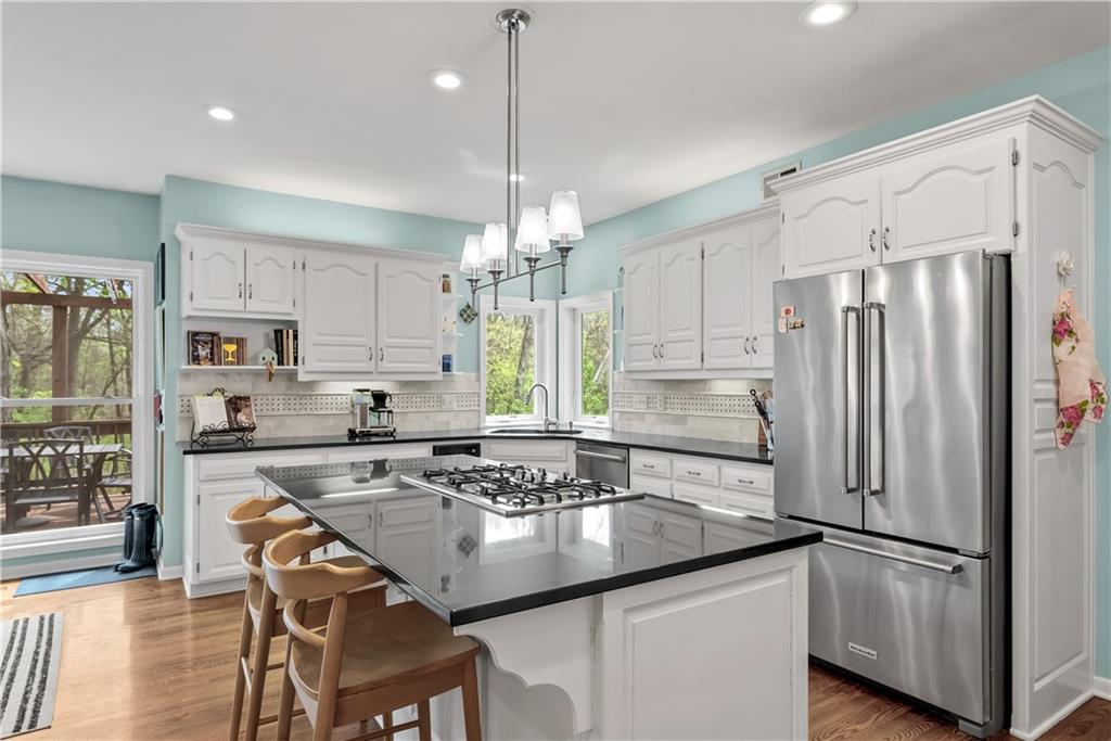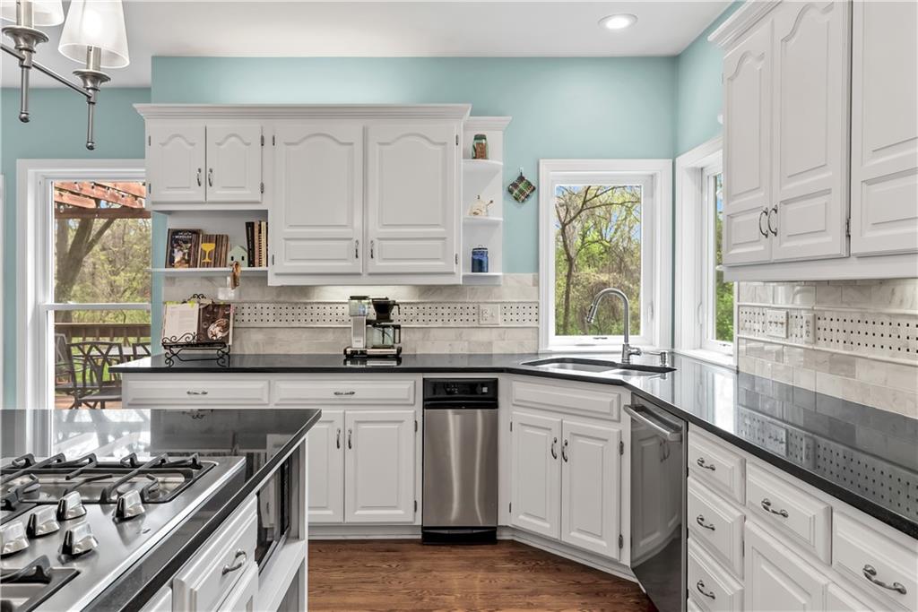 Nestled in the serene and sought-after Tremont Manor community, this stunning custom two-story home is a true gem. With over 4,800 square feet of living space, it offers 4 spacious bedrooms, 3 full bathrooms, and 2 half bathrooms—balancing comfort and luxury. Set on a picturesque half-acre lot, the fenced yard is a private retreat backing to lush woods. Enjoy your morning coffee or summer gatherings on the raised deck while soaking in the tranquil views. Spend your afternoons unwinding in the sunroom. The cul-de-sac location ensures peace and privacy, while the professionally landscaped yard enhances curb appeal. Inside, the layout is functional and inviting. The walk-out basement offers endless possibilities for recreation, gaming, or storage, while the large office is perfect for working from home. A massive laundry room simplifies daily living, and the 3-car garage provides plenty of room for vehicles and gear. Conveniently located, you’ll have easy access to Kansas City International Airport and the city’s vibrant restaurants, entertainment, and sports venues. This is more than a home—it’s a lifestyle. Welcome to Tremont Manor.