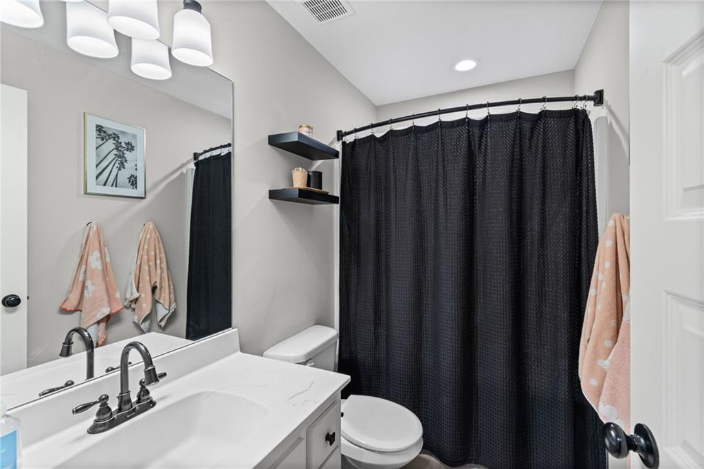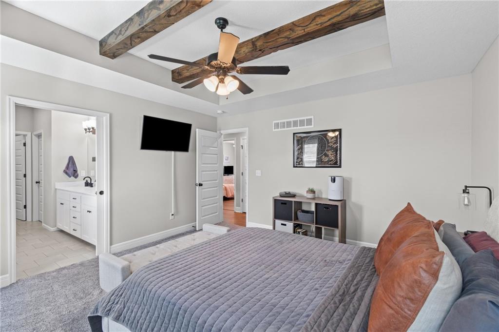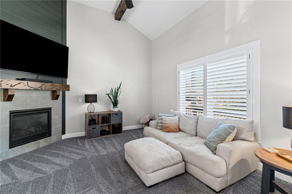 This beautifully updated home is truly move-in ready, featuring fresh interior paint, new flooring and carpet throughout, a newly epoxied garage floor, upgraded landscaping, lawn irrigation system, and a wrought iron fence—plus so much more! From the moment you arrive, you’ll be charmed by the inviting front sitting porch, cedar shutters, and striking architectural beams. Step inside to discover vaulted ceilings, rich hardwood floors, and a warm, welcoming living room complete with a gas fireplace, decorative shiplap, and a wood mantle. The staircase showcases sculptured carpet and elegant white spindles, leading you into a breathtaking kitchen and dining area. The kitchen is a true showstopper with custom white cabinetry (including glass-front accents), a custom stained hood, granite countertops, stainless steel appliances, wood shelving, a spacious pantry, and a brand-new stove highlighting the tiled backsplash. The dining area is generously sized—perfect for hosting large gatherings—and flows seamlessly with the hardwood flooring that extends throughout the kitchen, dining space, and hallway. Stylish light fixtures add a modern touch throughout the home. The spacious primary bedroom features decorative beams and leads into a luxurious ensuite bath complete with double sinks, cultured marble countertops, tiled backsplash, custom shelving, a relaxing soaking tub, walk-in closet, and tiled shower—all enhanced with charming shiplap details. Two additional bedrooms and a conveniently located laundry room complete the main level. Downstairs, enjoy a huge recreation room along with an additional half bath—ideal for entertaining or relaxing. The oversized, extra-deep garage offers exceptional storage space. Located in a fantastic neighborhood, this home truly has it all. Don’t miss your chance—schedule your showing today!