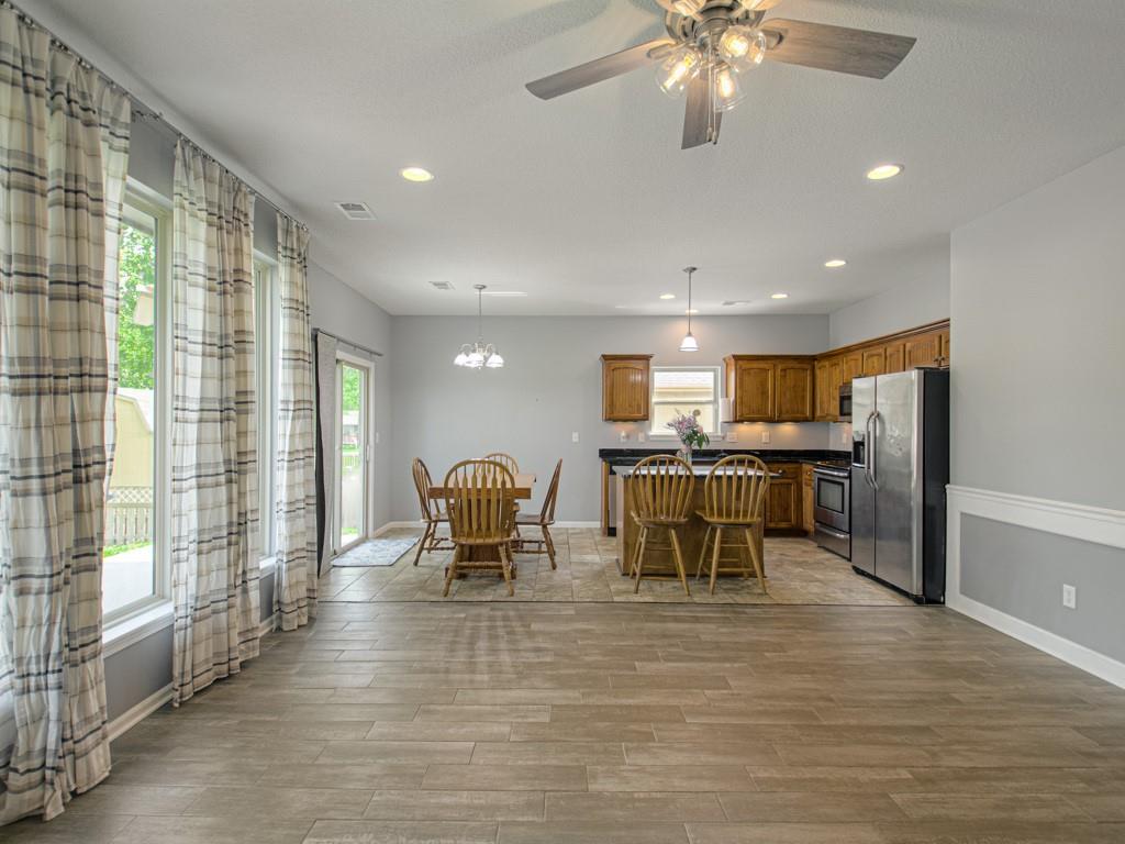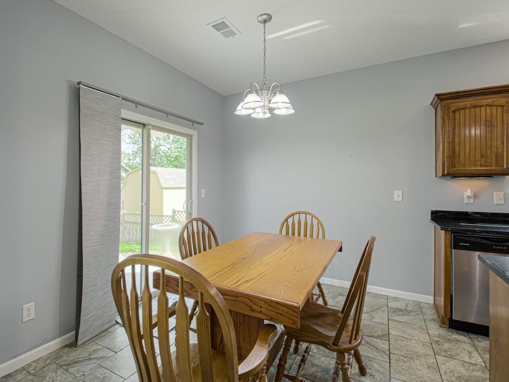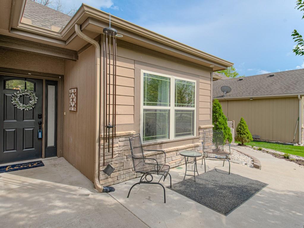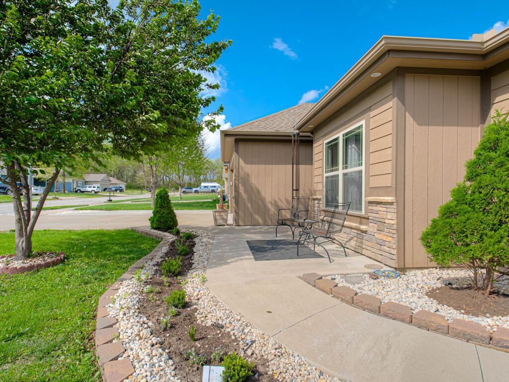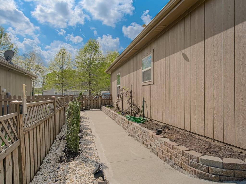 Beautiful true ranch home with an open, inviting layout. The spacious great room features a fireplace, ceiling fan, and abundant natural light. Ceramic tile flooring extends from the entry through the hallways, great room, kitchen, and both bathrooms. The kitchen offers granite countertops, a center island with breakfast bar, stainless steel appliances, and ceramic tile floors. Convenient main-floor laundry. The bedroom layout provides added privacy, with two secondary bedrooms on one side of the home and the primary suite on the other. The primary bedroom features a double-vault ceiling, ceiling fan, and a large walk-in closet. The primary bath includes a double vanity, jetted tub, and separate shower. Enjoy outdoor living with both a front patio and a large backyard patio. The backyard is fully enclosed with a wood privacy fence and includes a storage shed for extra space. Nicely landscaped yard in the front, back, and sides. Two-car attached garage with a three-car driveway.
