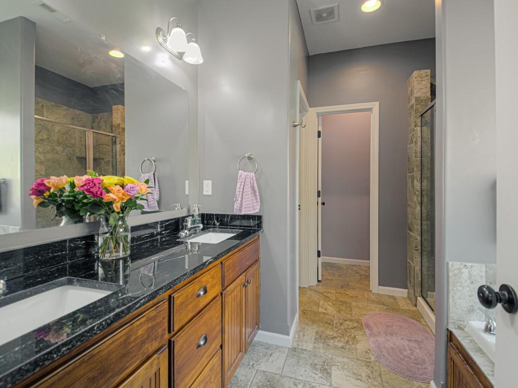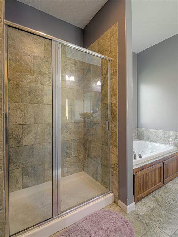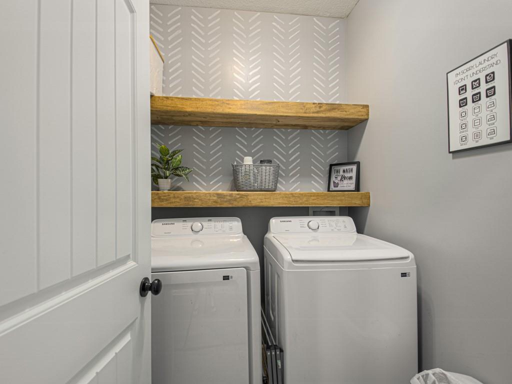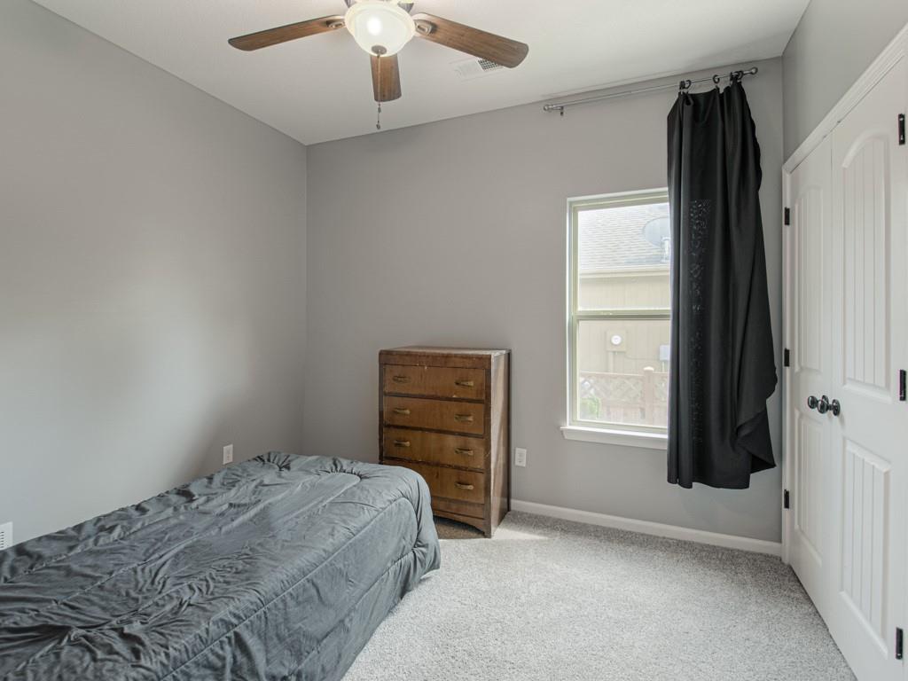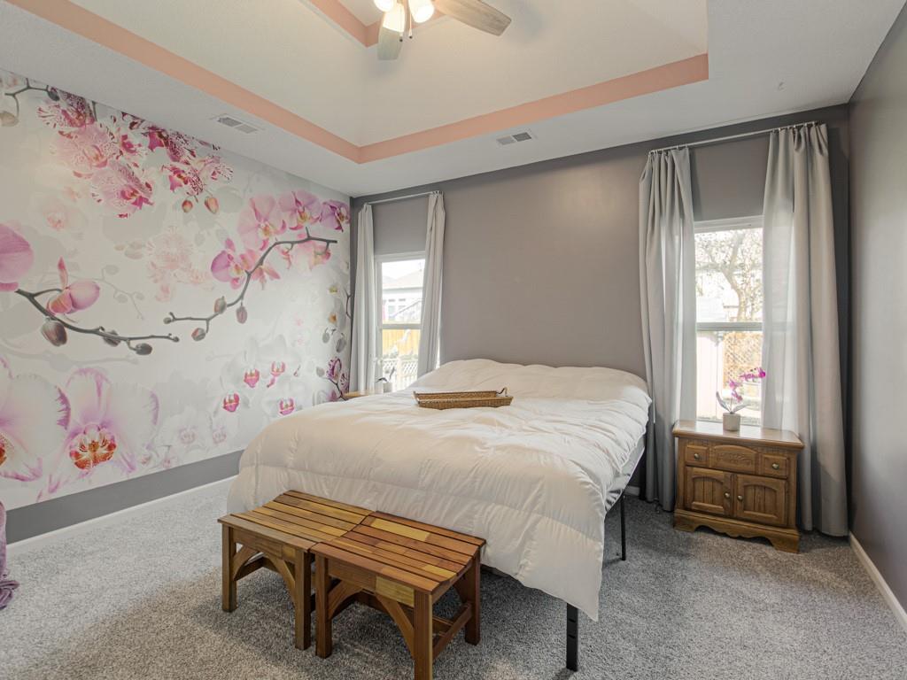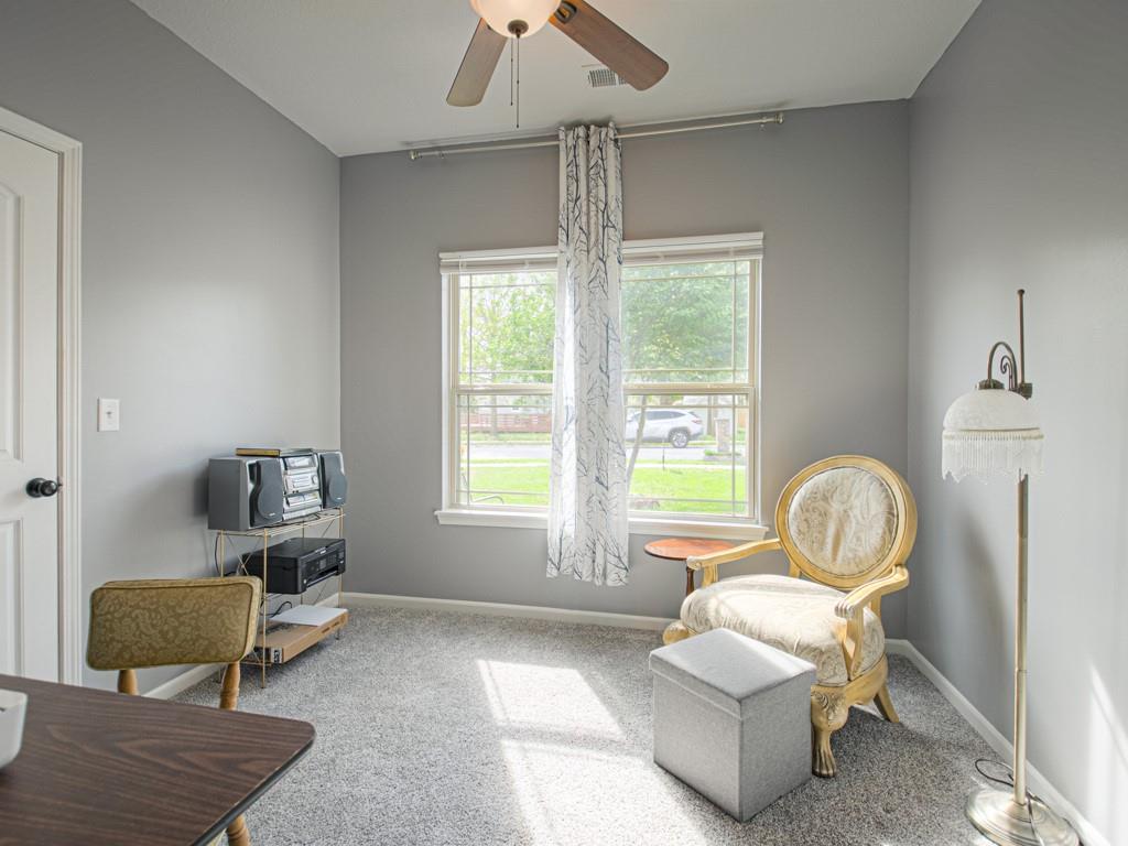 Beautiful true ranch home with an open, inviting layout. The spacious great room features a fireplace, ceiling fan, and abundant natural light. Ceramic tile flooring extends from the entry through the hallways, great room, kitchen, and both bathrooms. The kitchen offers granite countertops, a center island with breakfast bar, stainless steel appliances, and ceramic tile floors. Convenient main-floor laundry. The bedroom layout provides added privacy, with two secondary bedrooms on one side of the home and the primary suite on the other. The primary bedroom features a double-vault ceiling, ceiling fan, and a large walk-in closet. The primary bath includes a double vanity, jetted tub, and separate shower. Enjoy outdoor living with both a front patio and a large backyard patio. The backyard is fully enclosed with a wood privacy fence and includes a storage shed for extra space. Nicely landscaped yard in the front, back, and sides. Two-car attached garage with a three-car driveway.