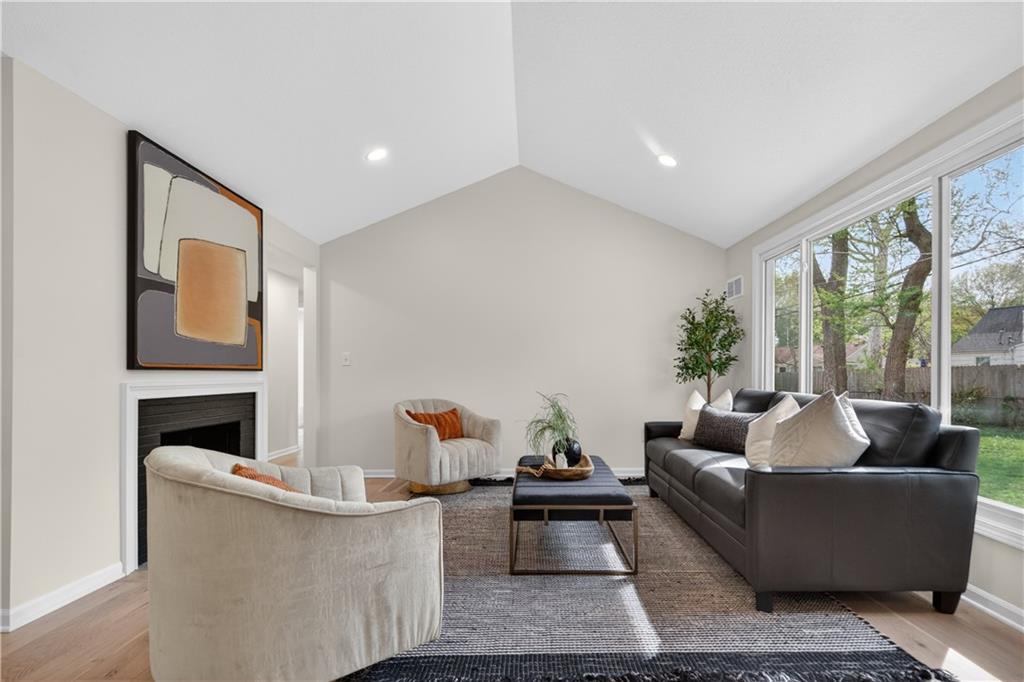 READY FOR NEW OWNERS! Completely reimagined ranch tucked on a quiet cul-de-sac in Prairie Village! Thoughtfully redesigned with an open-concept layout, this home features luxury vinyl flooring throughout the main level, seamlessly connecting the living spaces. The inviting vaulted living room showcases a cozy fireplace and abundant natural light. Stunning kitchen is the heart of the home, offering a large center island with seating, quartz countertops, and stainless steel appliances—perfect for everyday living and entertaining. The primary suite includes a private en-suite bath, while two additional bedrooms and a second full bath complete the main level. A major bonus: convenient main-level laundry. The finished basement expands your living space with a spacious family room, fourth bedroom, and third full bath—ideal for guests or a private retreat. Extra-long and wide driveway provides abundant off-street parking—perfect for multiple vehicles, guests, or recreational parking needs. Fantastic central location close to parks, shopping and dining at the Village and Corinth Square! WELCOME HOME!
