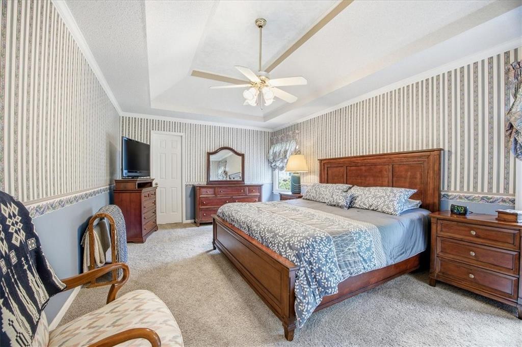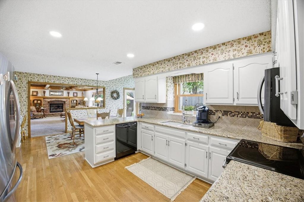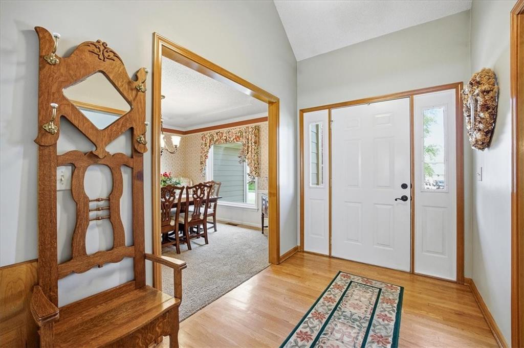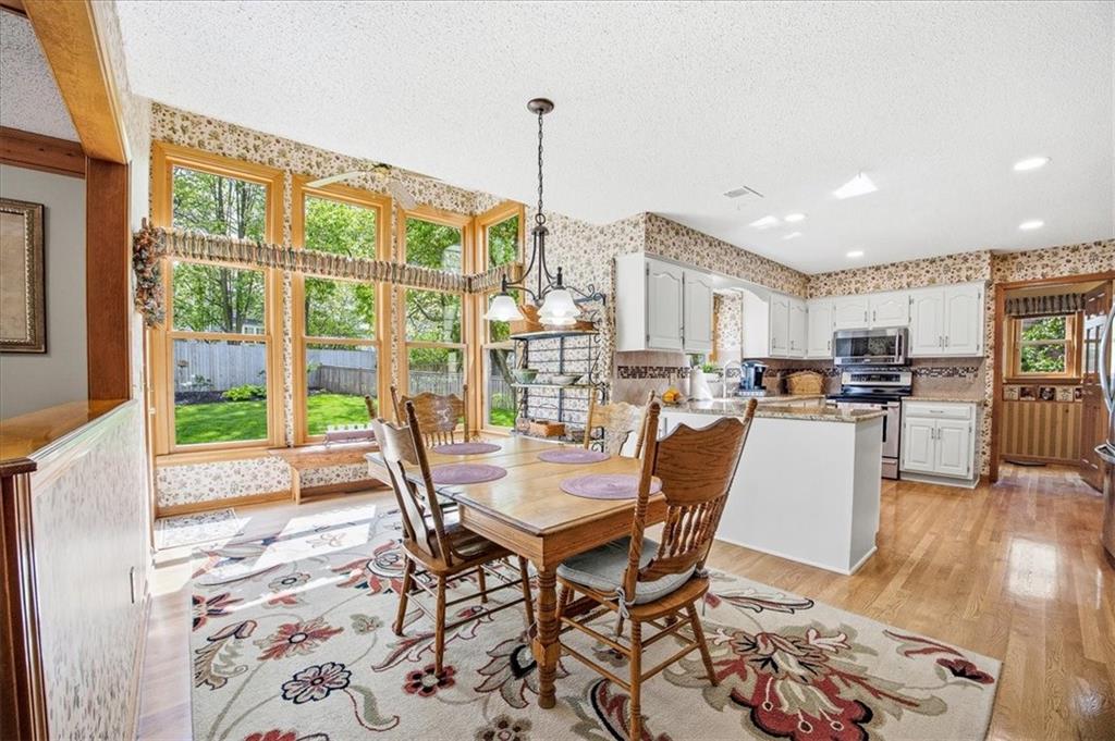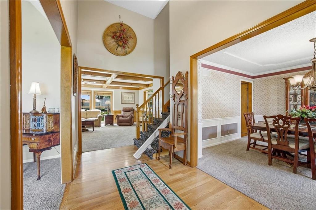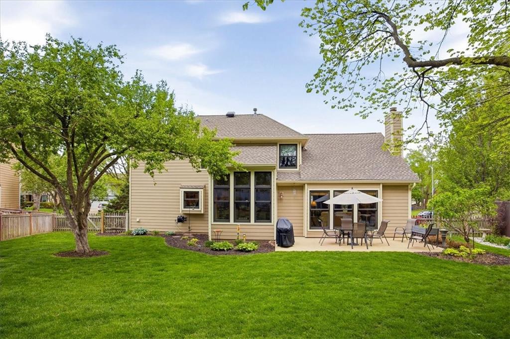 Welcome to your peaceful retreat at 11332 S Rene St in Olathe’s desirable Homestead Creek! This meticulously maintained 4-bedroom, 2.5-bathroom home blends traditional elegance with incredible peace of mind, featuring a new 50-yr Timberline composite roof (2023), upgraded 6" gutters (2023), and James Hardie Plank siding (2016). Step into a sun-drenched foyer with soaring vaulted ceilings, warm oak hardwoods, and upgraded decorative lighting that continues into the dining and breakfast rooms. The sophisticated layout features a formal dining room with a large picture window, custom wainscoting, and a tray ceiling. A versatile front den behind classic French doors offers a quiet retreat, while the great room impresses with a brick fireplace, coffered wood ceiling, and new LED pot lights. All windows have been upgraded to Marvin-made-to-order windows for maximum efficiency. The chef’s kitchen is a standout, offering vast cabinet and counter space. It features granite countertops, a decorative tile backsplash, a built-in desk, and a charming plant ledge over the sink. Just off the kitchen is a main-floor laundry and half bath. Retreat upstairs to the primary suite featuring tray ceilings, a spa-like ensuite with a tub, and his-and-her closets, three additional bedrooms—two with true walk-in closets, all offering plenty of storage space. Outside, the 0.26-acre lot boasts professional-grade landscaping (2017) with advanced drainage and pop-up downspouts. Enjoy the private, fenced-in backyard from the large concrete patio surrounded by low-maintenance plantings. A massive 1,355 sq. ft. full basement offers endless potential for a home gym, theater, or play area. This home is perfectly positioned in the heart of Olathe with easy access to interstates and offering a blend of suburban peace and urban convenience.