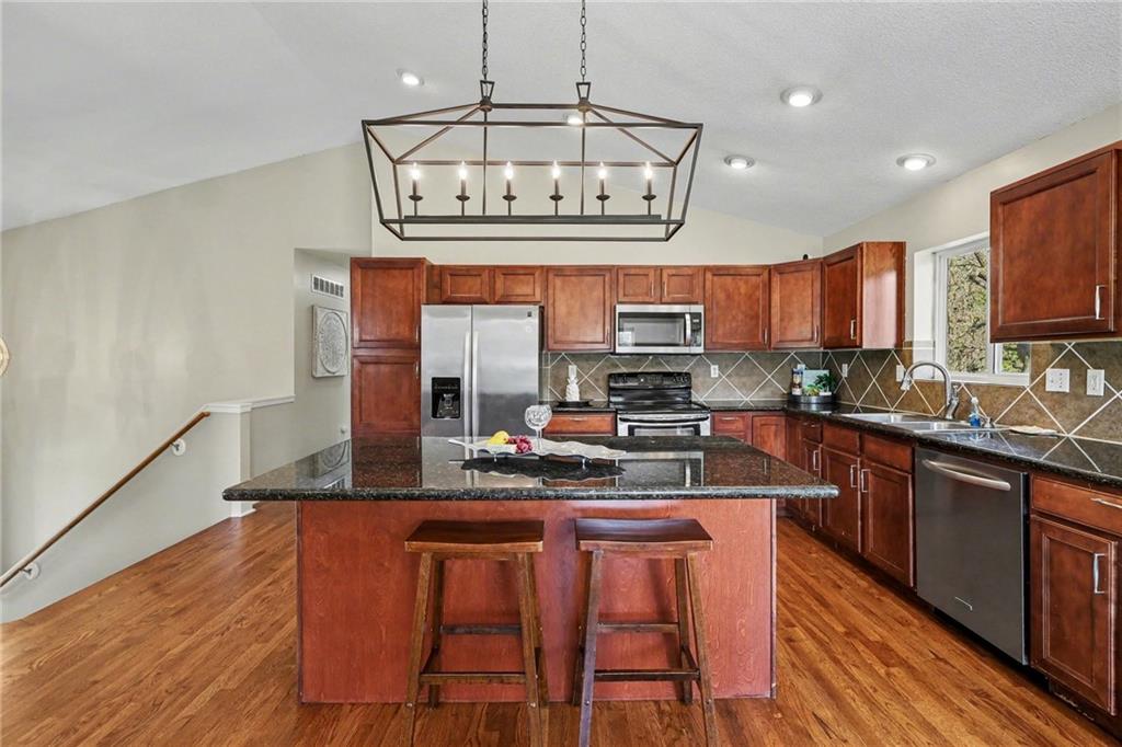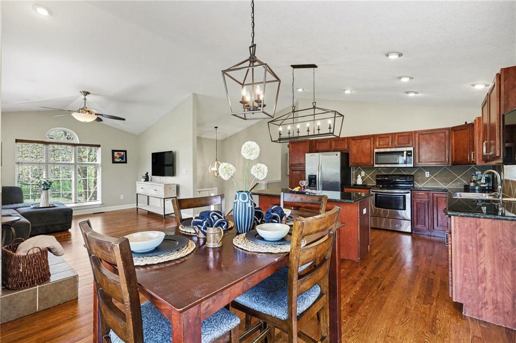 This appealing split-level home sits on an incredible 35,895.91 sq. ft. homesite — approximately .82 acre — right in the heart of Lenexa. Inside, you’ll love the light, open feel with vaulted ceilings, a great room fireplace as the focal point, and a spacious island kitchen with granite countertops and freshly refinished hardwood floors. Step out from the dining area onto the deck and enjoy private views of your expansive homesite. Built in 2005, this home offers an easy-maintenance exterior with vinyl siding and stone trim, plus a level, extra-deep driveway the width of the home, ideal for larger vehicles, sports gear, lawn equipment, and extra parking. With no HOA dues, buyers will appreciate added flexibility for outdoor living, gardens, storage, or possible future outbuilding options, subject to city requirements. The extra-long driveway off 83rd Street even includes an additional parking area. Nature lovers will appreciate the wildlife, the room to roam, and the endless possibilities for creating a private retreat right at home. Another standout feature is the nearby access to the paved Little Mill Creek Trail, leading to dog-friendly Heritage Park, north toward Mill Creek Elementary and Mill Creek Park, and on to Sar-Ko-Par Park and the Aquatic Center for even more outdoor fun.