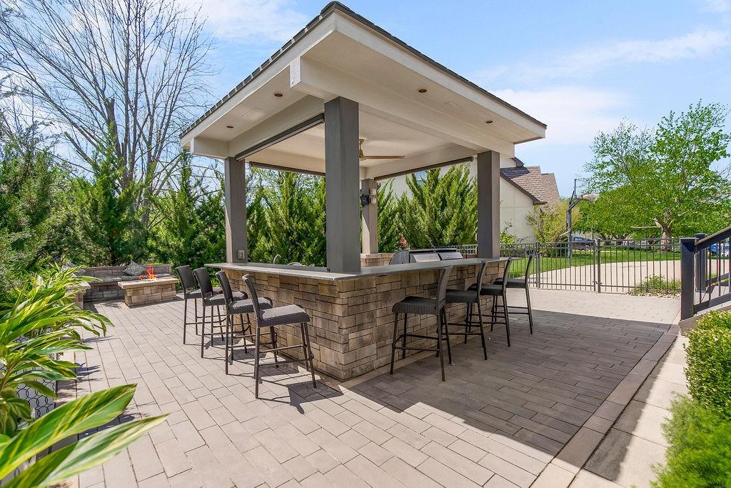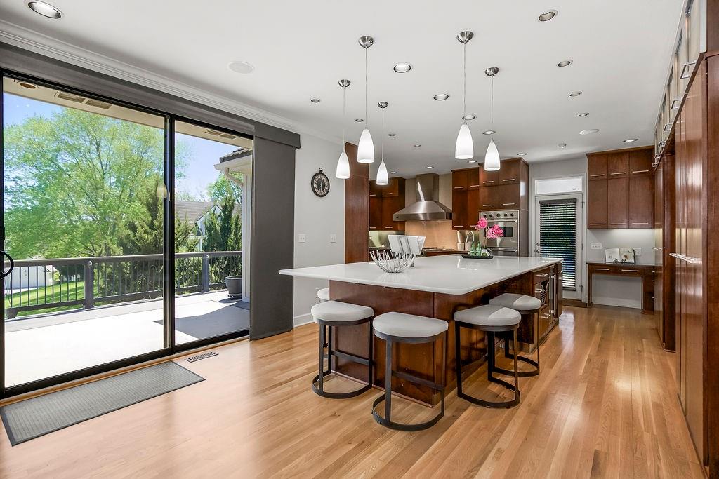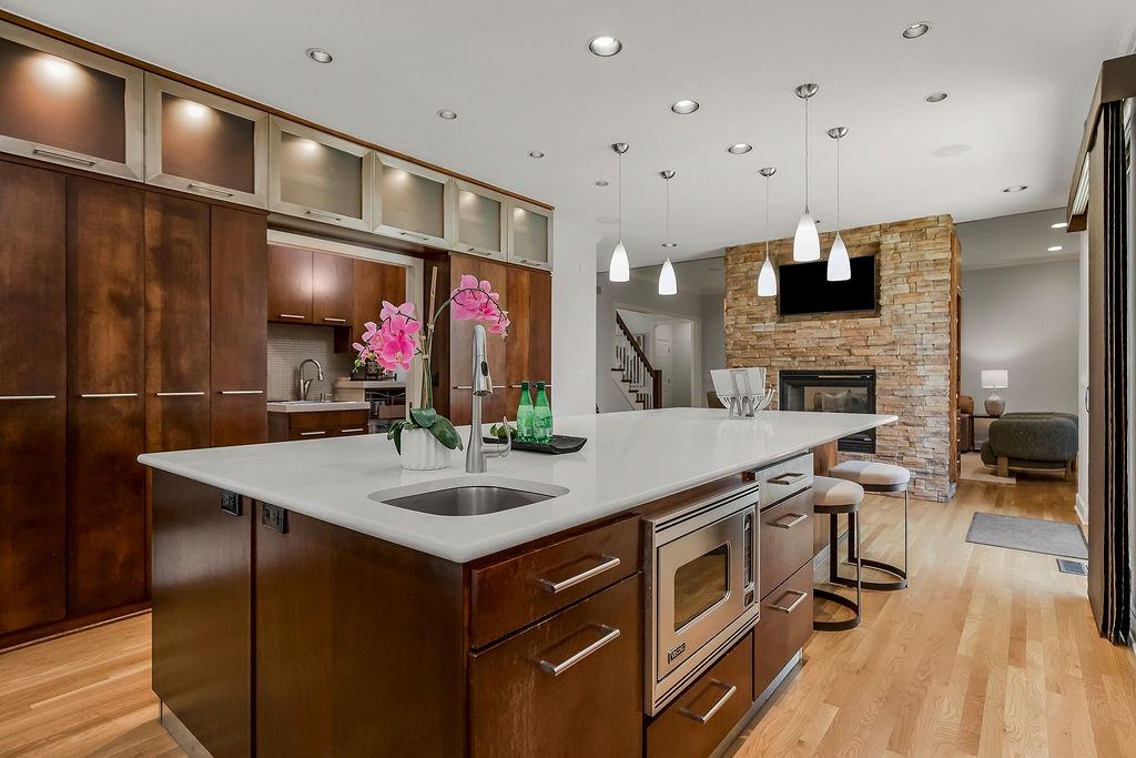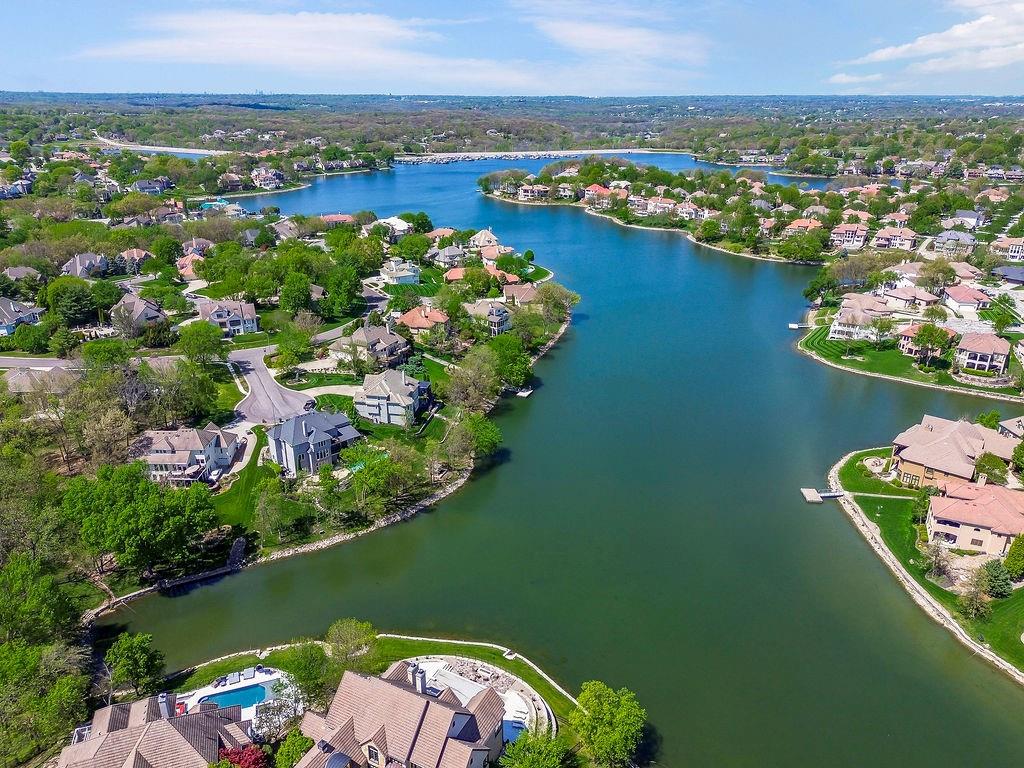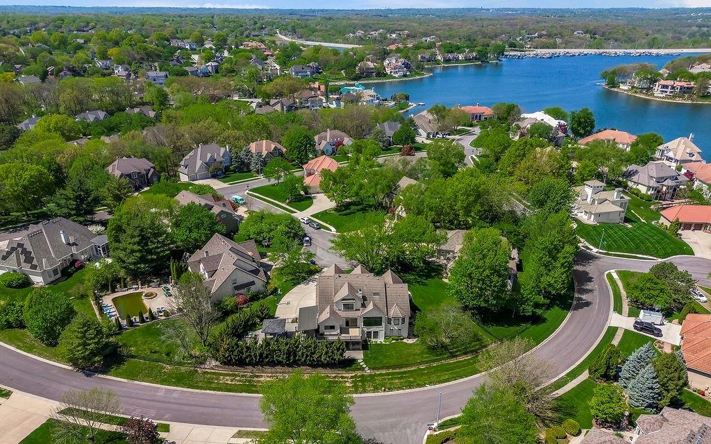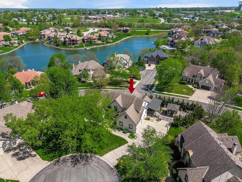 Welcome to this stunning and spacious 1.5-story home designed for both comfort and entertaining! The custom gourmet kitchen is a chef’s delight, boasting top-of-the-line Viking appliances, a gas range, and a generous island perfect for meal prep and casual gatherings. Step outside to your private retreat featuring an outdoor kitchen and a cozy fire pit—ideal for relaxing or entertaining year-round. Inside, the main level impresses with a formal dining room, a bright great room with expansive windows and a see-through fireplace, a private office, and a luxurious primary suite. Upstairs, you’ll find three spacious bedrooms and a versatile loft area—perfect for a playroom, reading nook, or extra workspace. The finished walkout lower level offers even more room to enjoy, including a family room, wet bar, rec area, and an exercise room. Nestled on a quiet cul-de-sac with a fenced yard and easy lake access, this home combines privacy, elegance, and convenience. A backyard gate leads directly to the sidewalk and dock, just steps away. This home truly has it all—style, space, and a perfect setting for everyday living or entertaining!