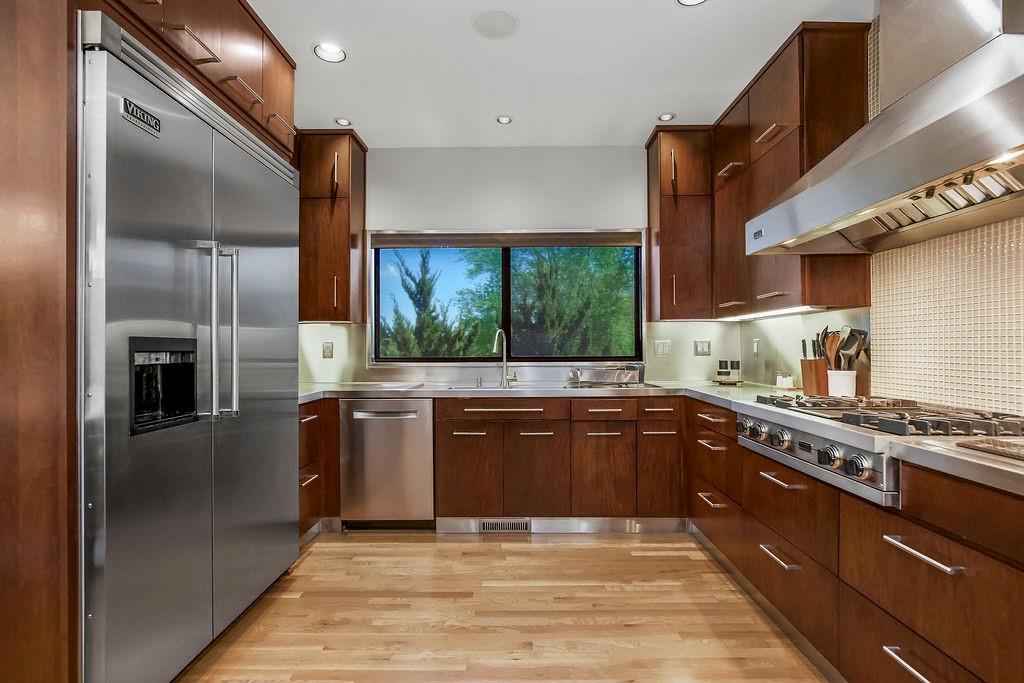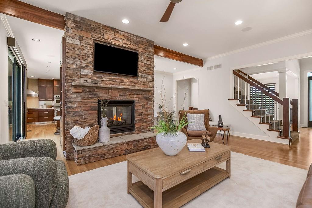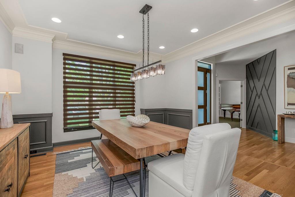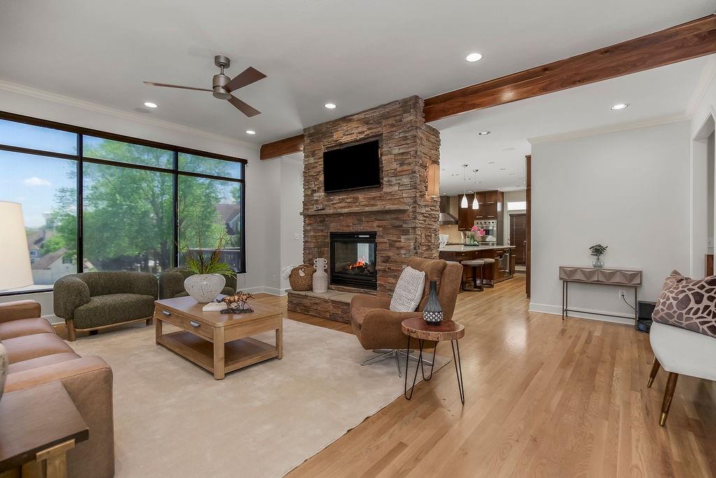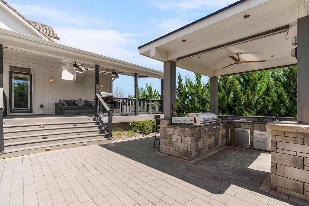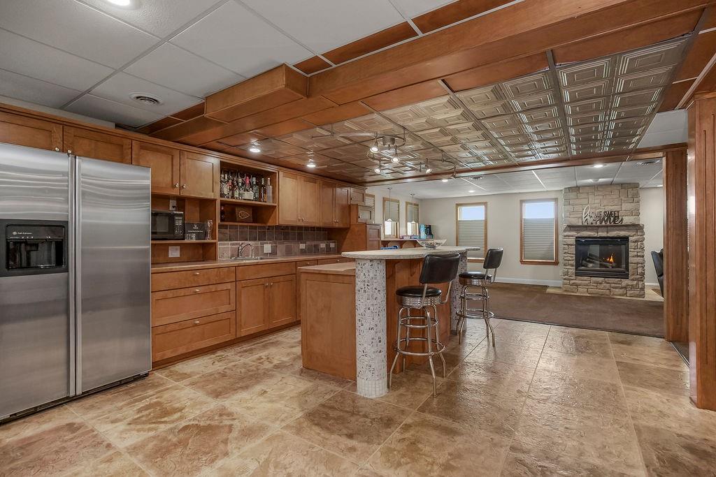 Welcome to this stunning and spacious 1.5-story home designed for both comfort and entertaining! The custom gourmet kitchen is a chef’s delight, boasting top-of-the-line Viking appliances, a gas range, and a generous island perfect for meal prep and casual gatherings. Step outside to your private retreat featuring an outdoor kitchen and a cozy fire pit—ideal for relaxing or entertaining year-round. Inside, the main level impresses with a formal dining room, a bright great room with expansive windows and a see-through fireplace, a private office, and a luxurious primary suite. Upstairs, you’ll find three spacious bedrooms and a versatile loft area—perfect for a playroom, reading nook, or extra workspace. The finished walkout lower level offers even more room to enjoy, including a family room, wet bar, rec area, and an exercise room. Nestled on a quiet cul-de-sac with a fenced yard and easy lake access, this home combines privacy, elegance, and convenience. A backyard gate leads directly to the sidewalk and dock, just steps away. This home truly has it all—style, space, and a perfect setting for everyday living or entertaining!